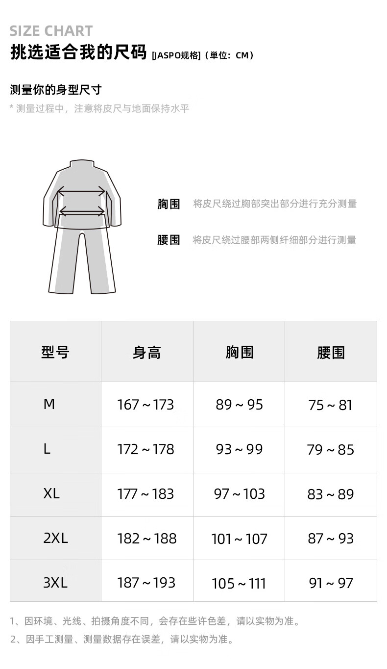 China (cm) 165 / 88-90 170 / 96-98 175 / 108-110 180 / 118-122 185 / 126-130