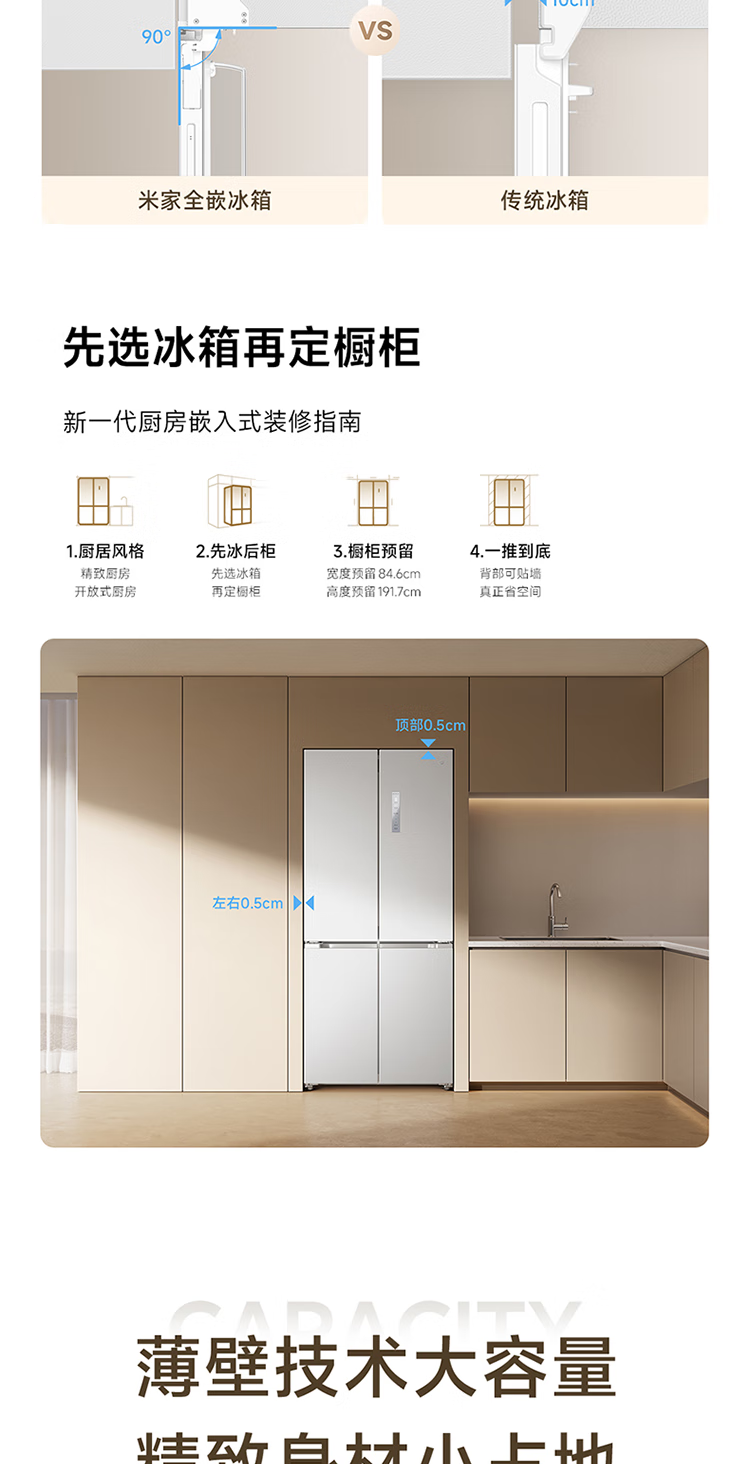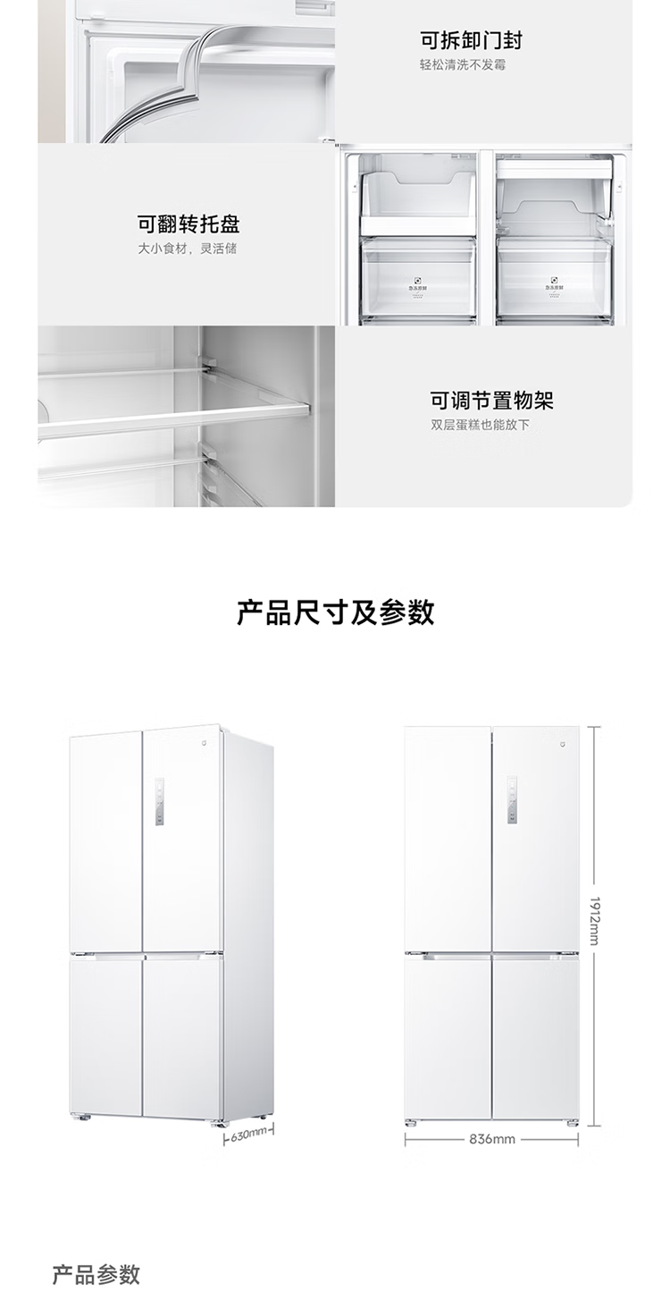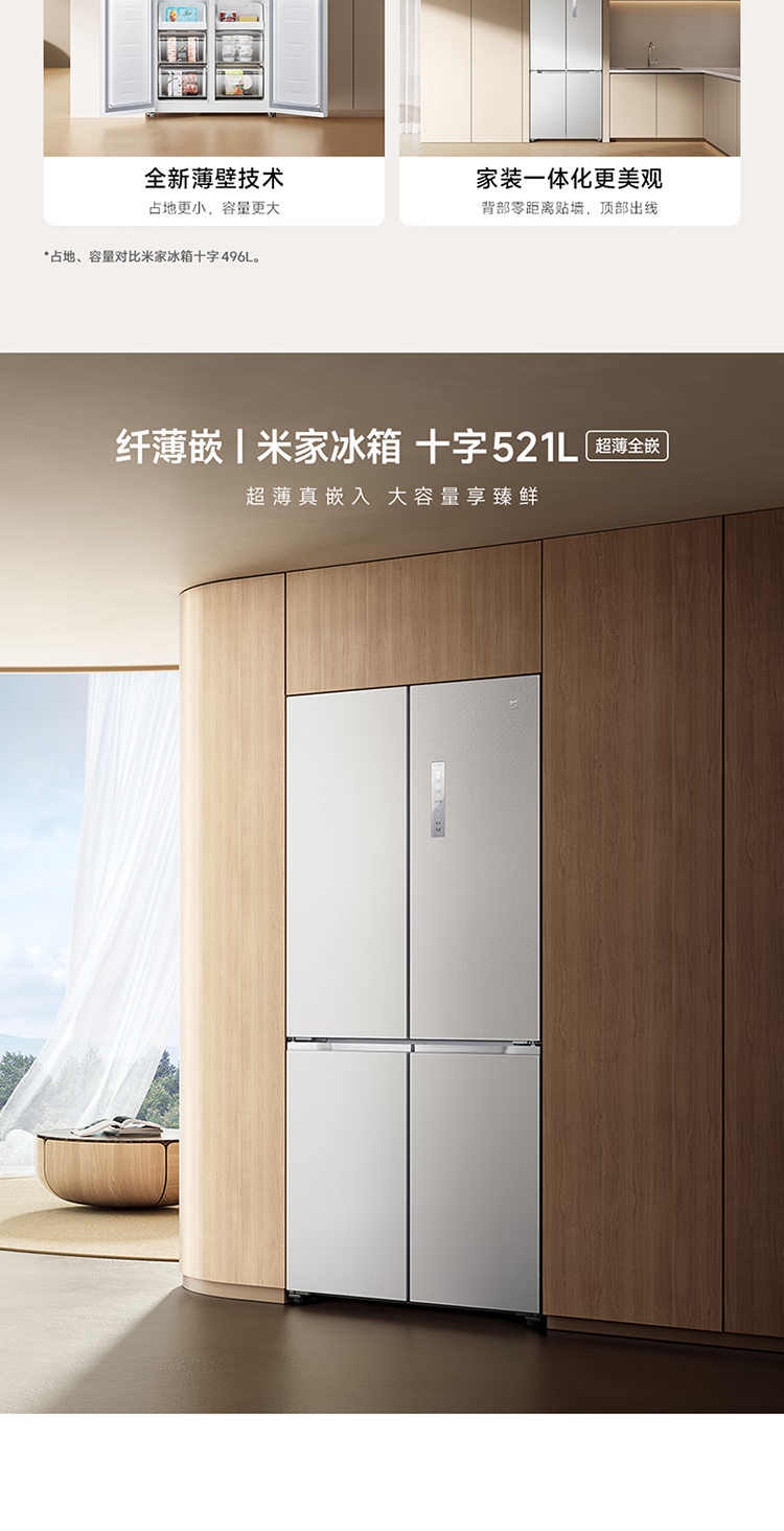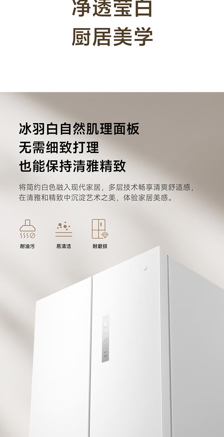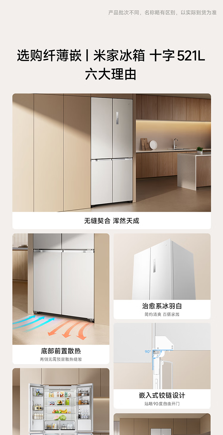 Mijia Xiaomi 521L cross-door refrigerator white, ultra-thin zero-embedded bottom heat dissipation, silver ion sterilization, Zhenpin mother and baby space BCD-521WMBI Mijia refrigerator cross 521L seamless fully embedded