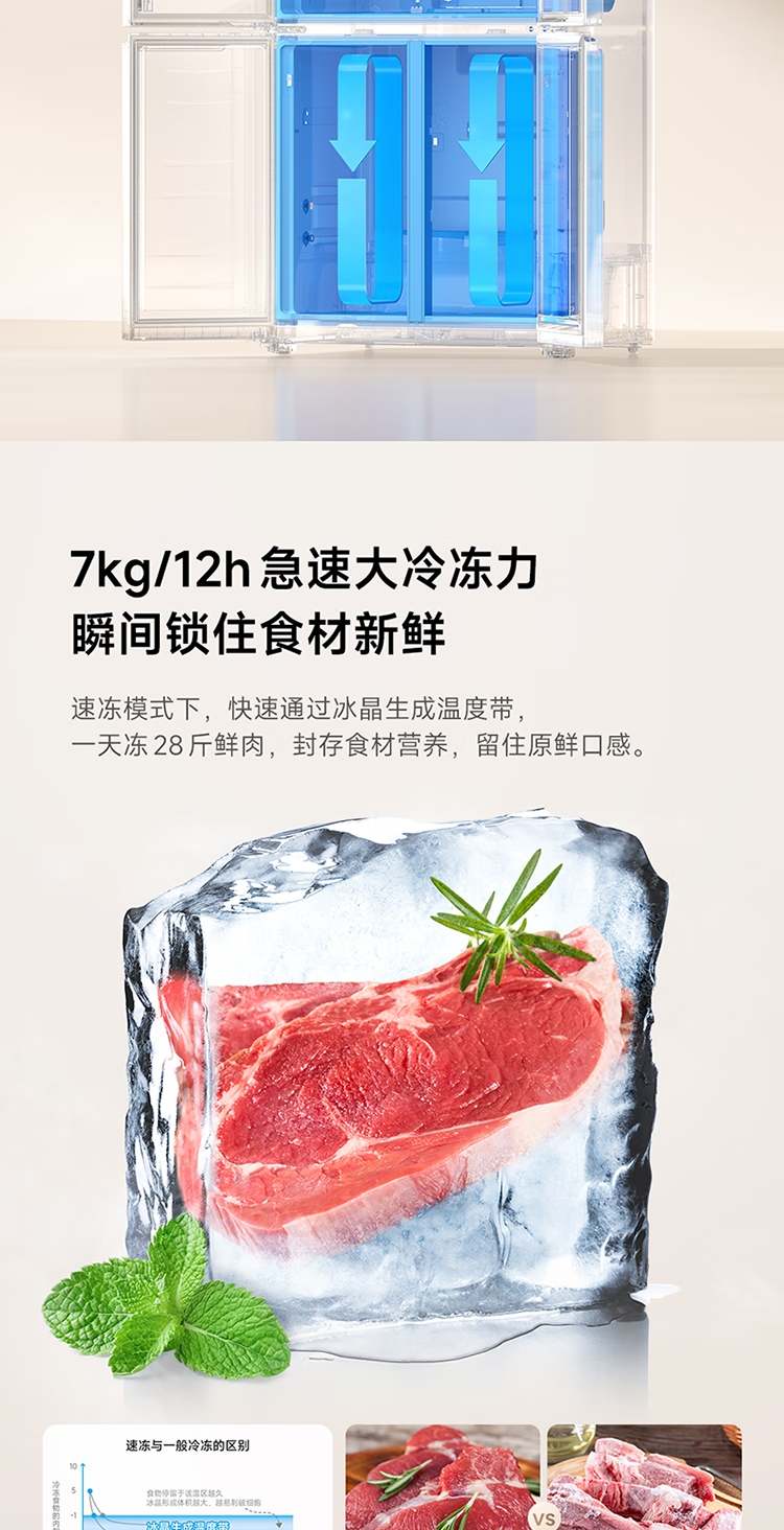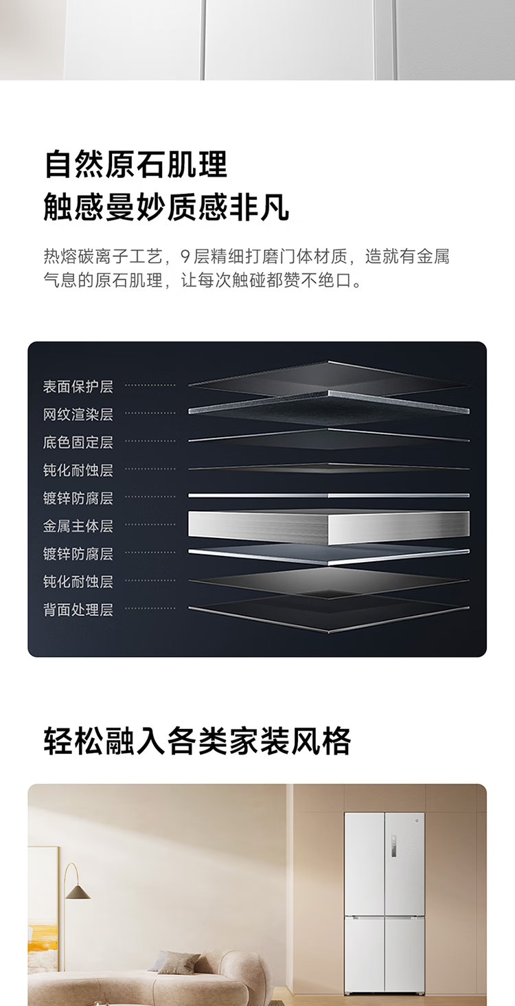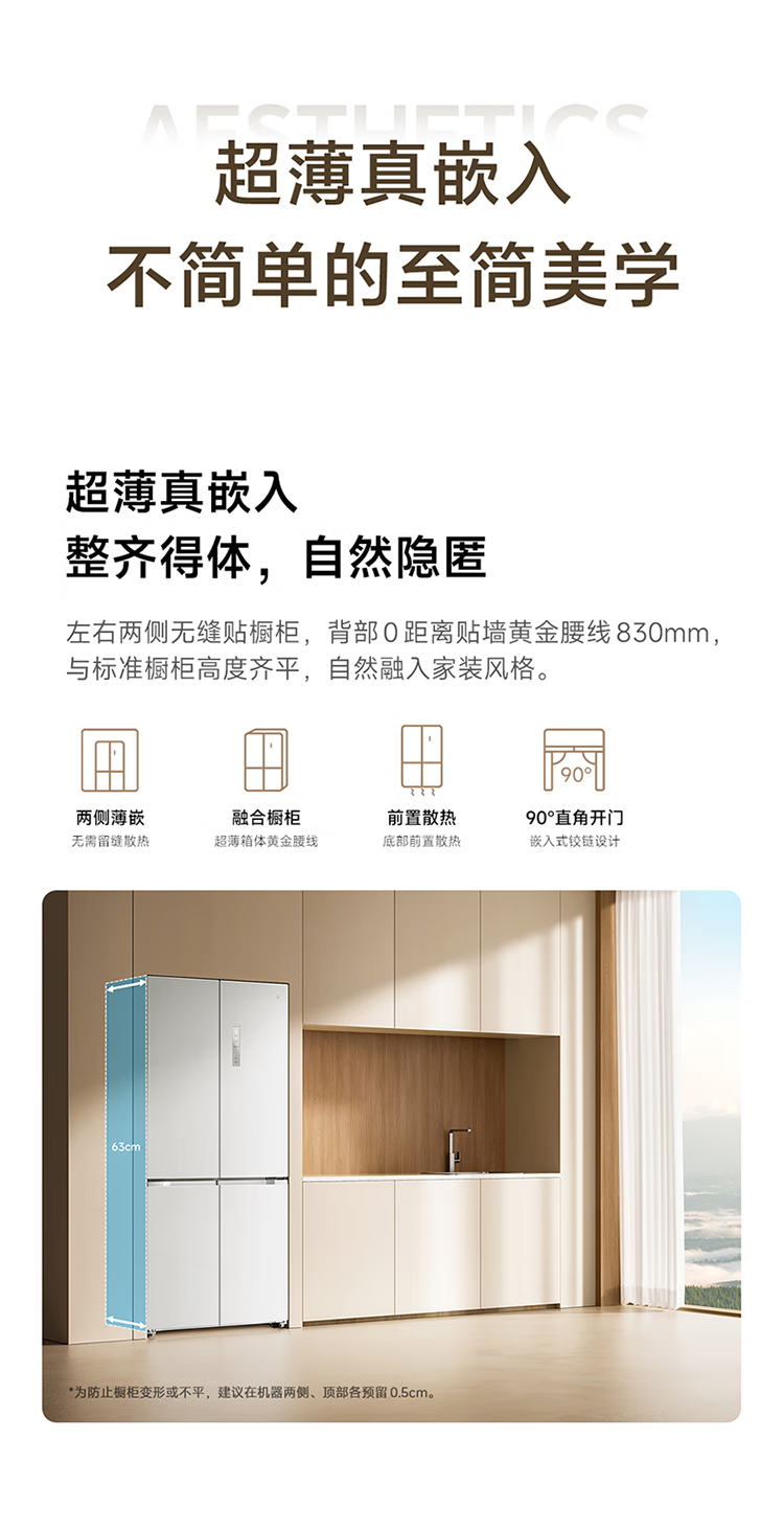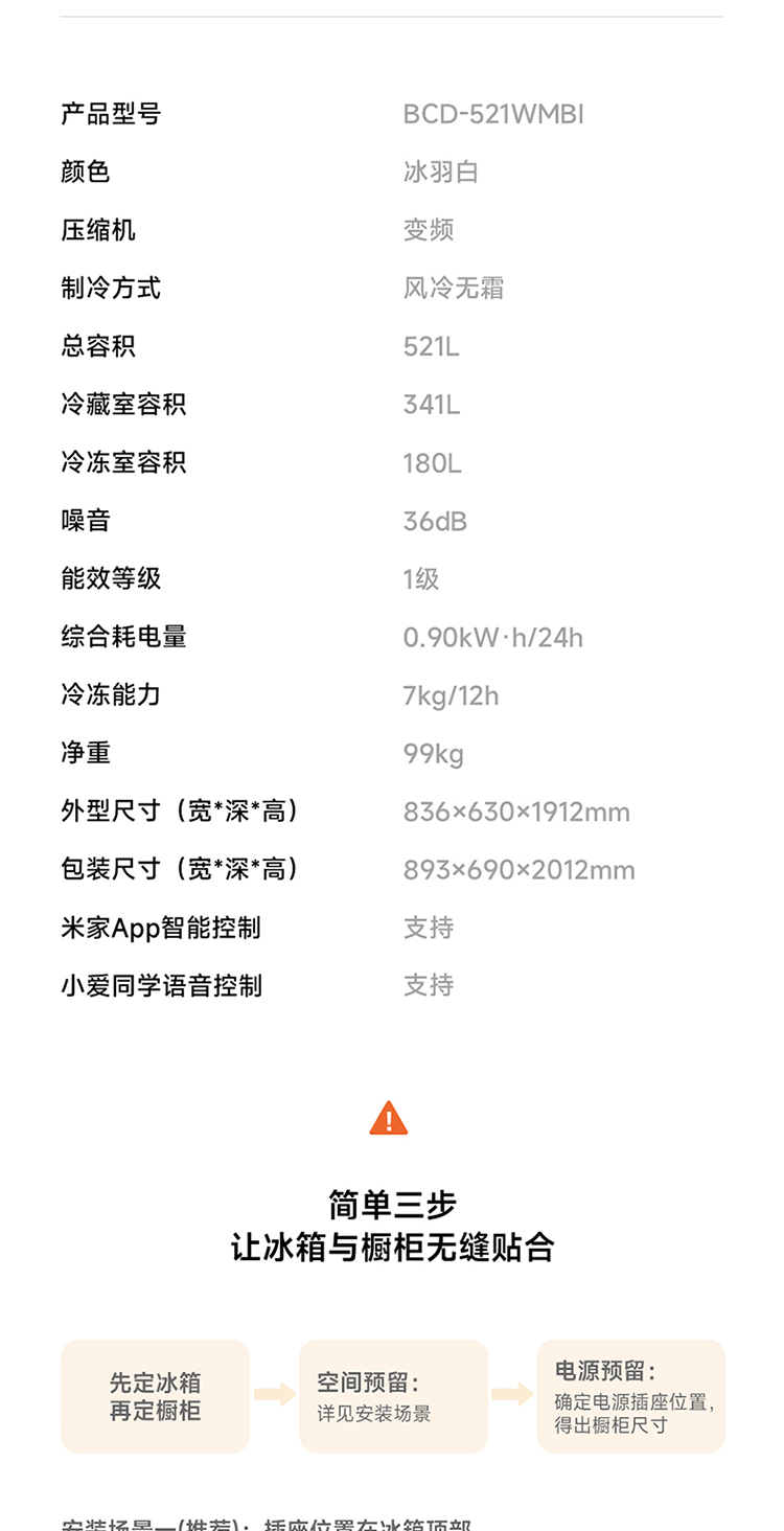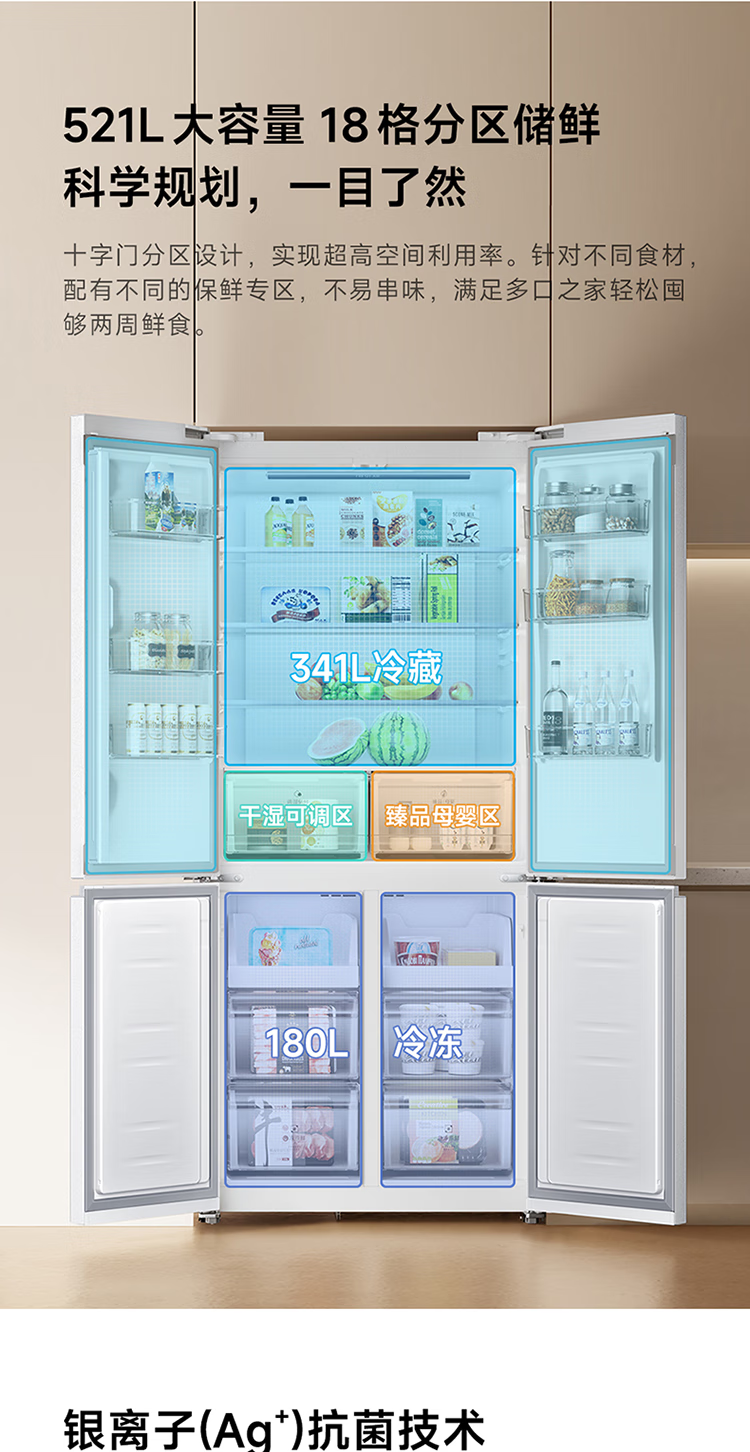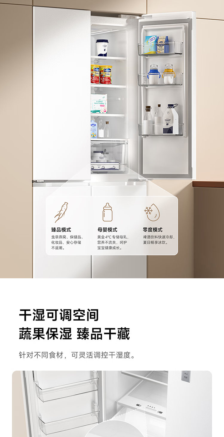Mijia Xiaomi 521L cross-door refrigerator white, ultra-thin zero-embedded bottom heat dissipation, silver ion sterilization, Zhenpin mother and baby space BCD-521WMBI Mijia refrigerator cross 521L seamless fully embedded