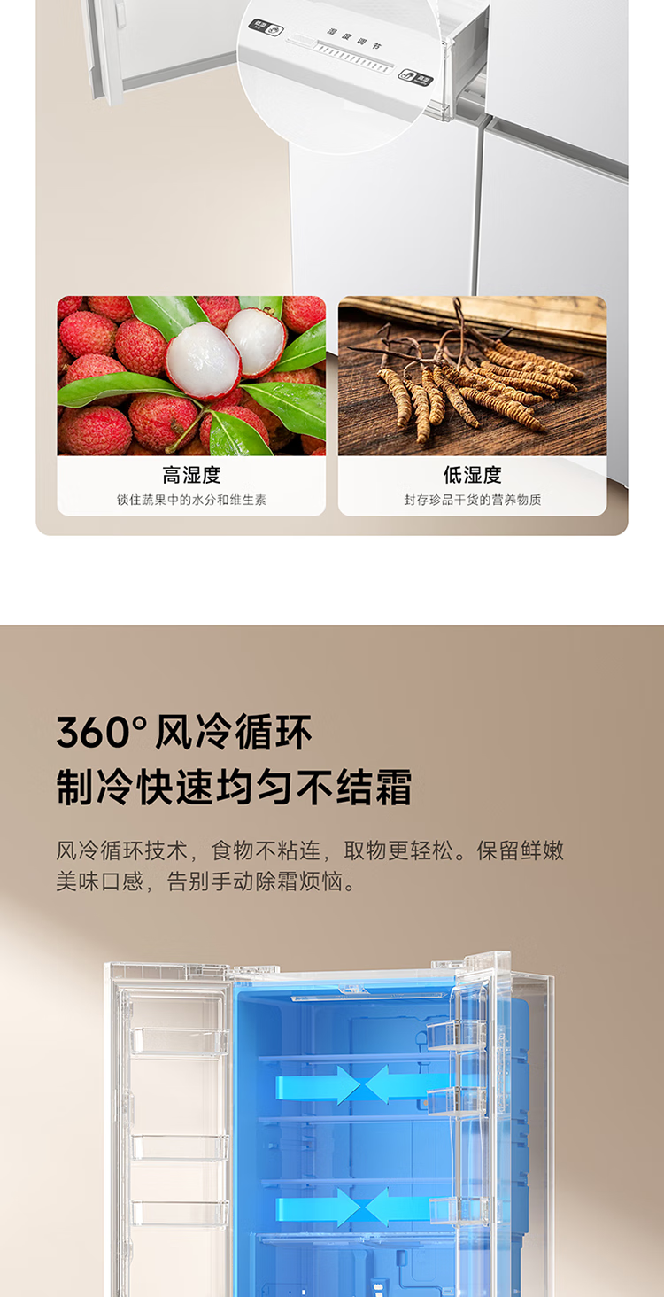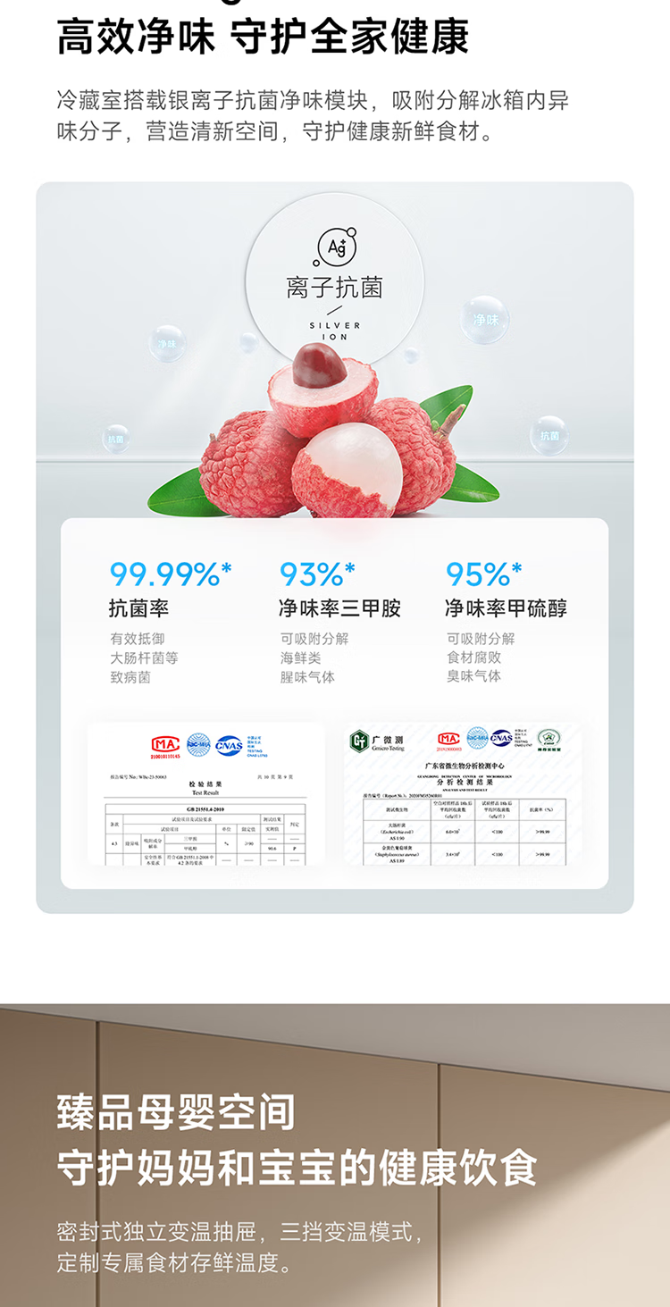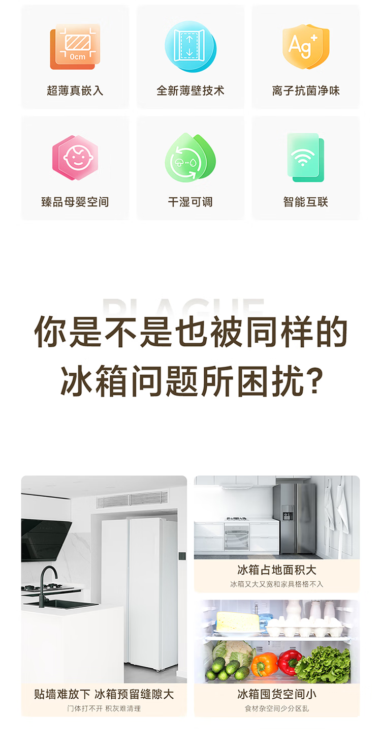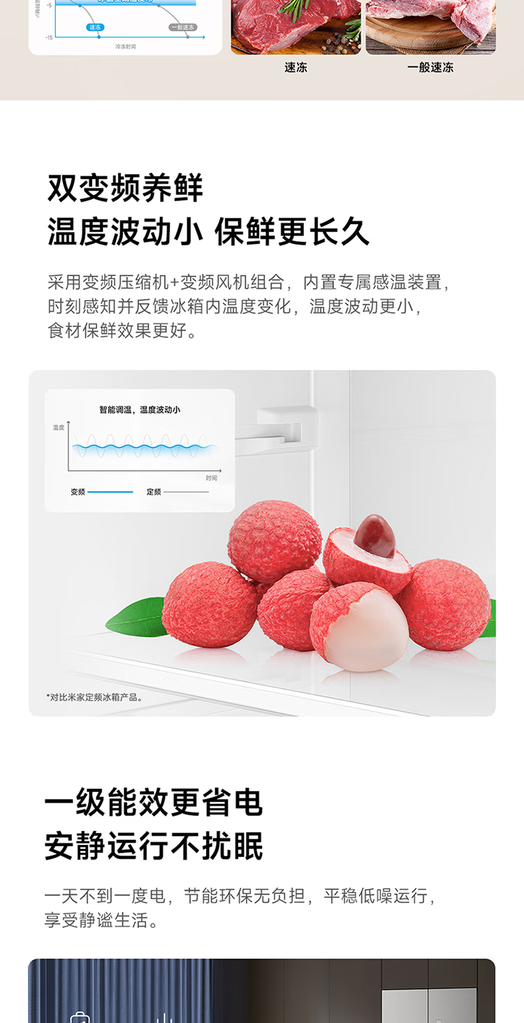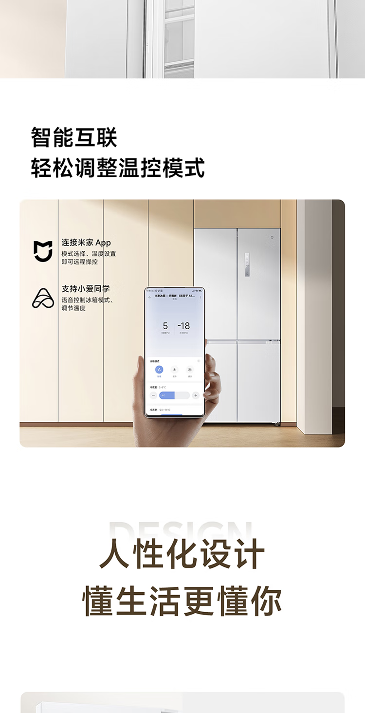Mijia Xiaomi 521L cross-door refrigerator white, ultra-thin zero-embedded bottom heat dissipation, silver ion sterilization, Zhenpin mother and baby space BCD-521WMBI Mijia refrigerator cross 521L seamless fully embedded