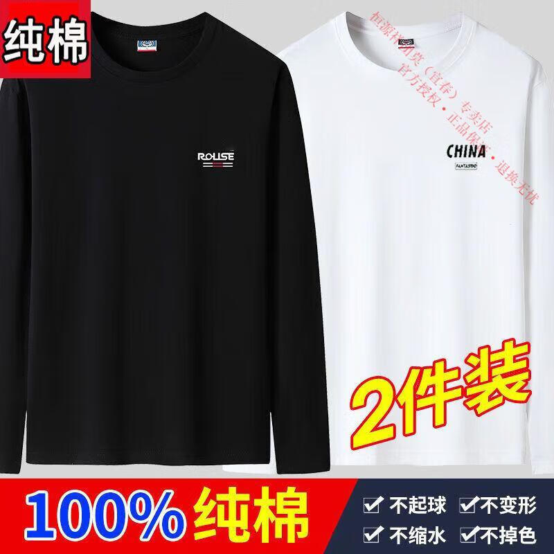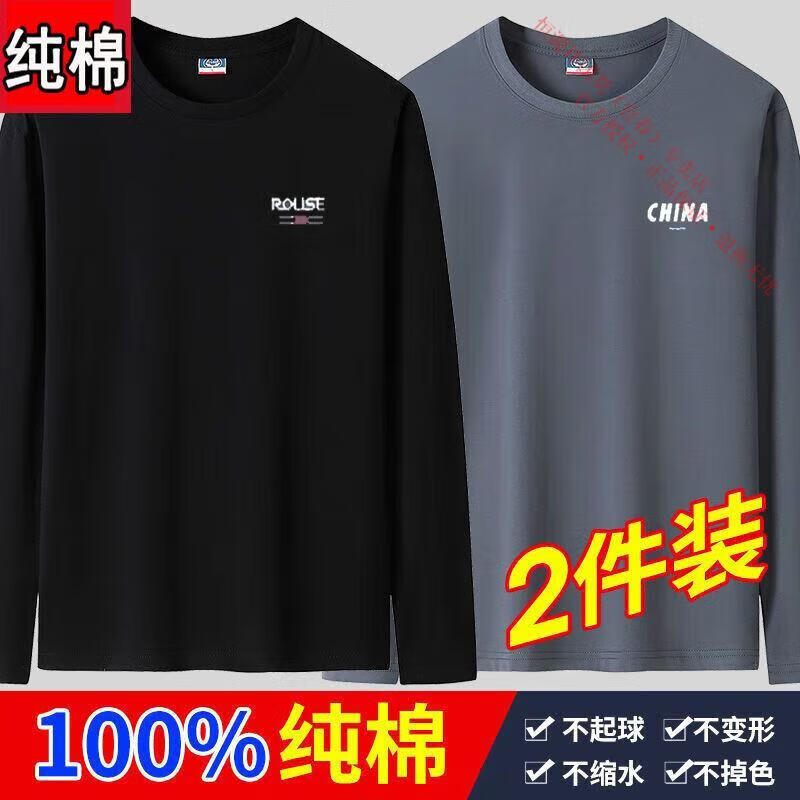 Hengyuanxiang 100 Xinjiang Cotton Long Sleeve T-Shirt Men's 100% Cotton Spring and Autumn Men's Loose Autumn Clothes Large Size Top T Blood Shirt 2 Pack 1 (Long Sleeve SE Dark Gray + CH Khaki) 3XL Recommended 155-170 Jin Jin equals 0.5 kg