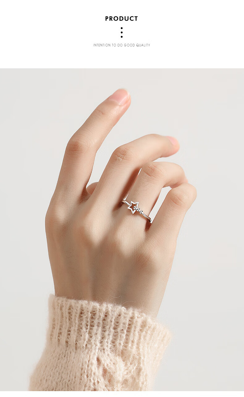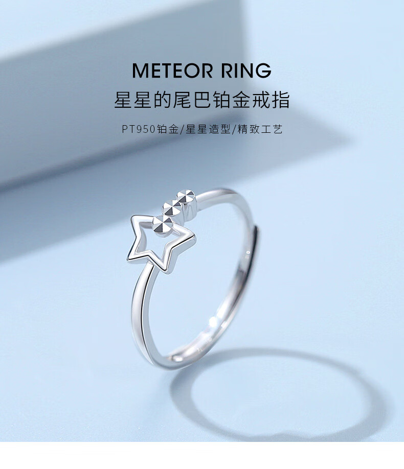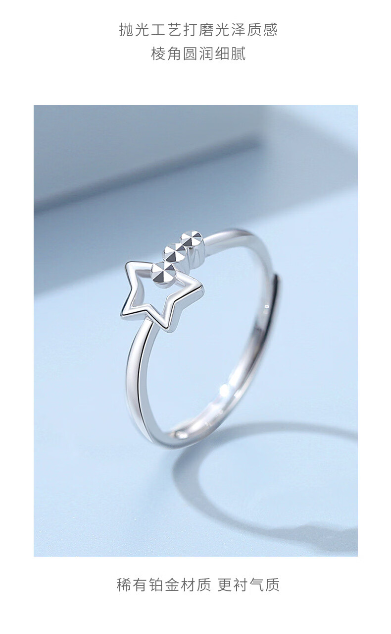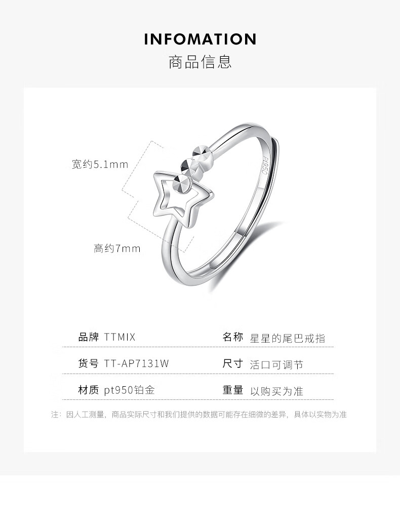 TTMIX women's living platinum ring pt950 simple star platinum ring adjustable gift for girlfriend 2.3-2.5g