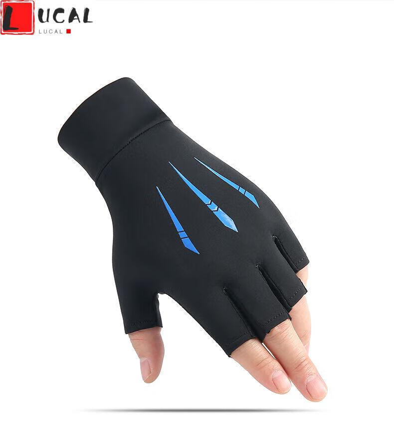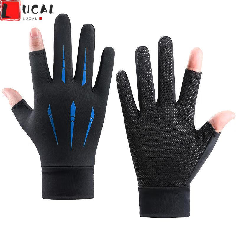 LUCALY fingerless gloves men's ice silk sunscreen gloves five-finger summer half-finger men and women driving, riding, fishing