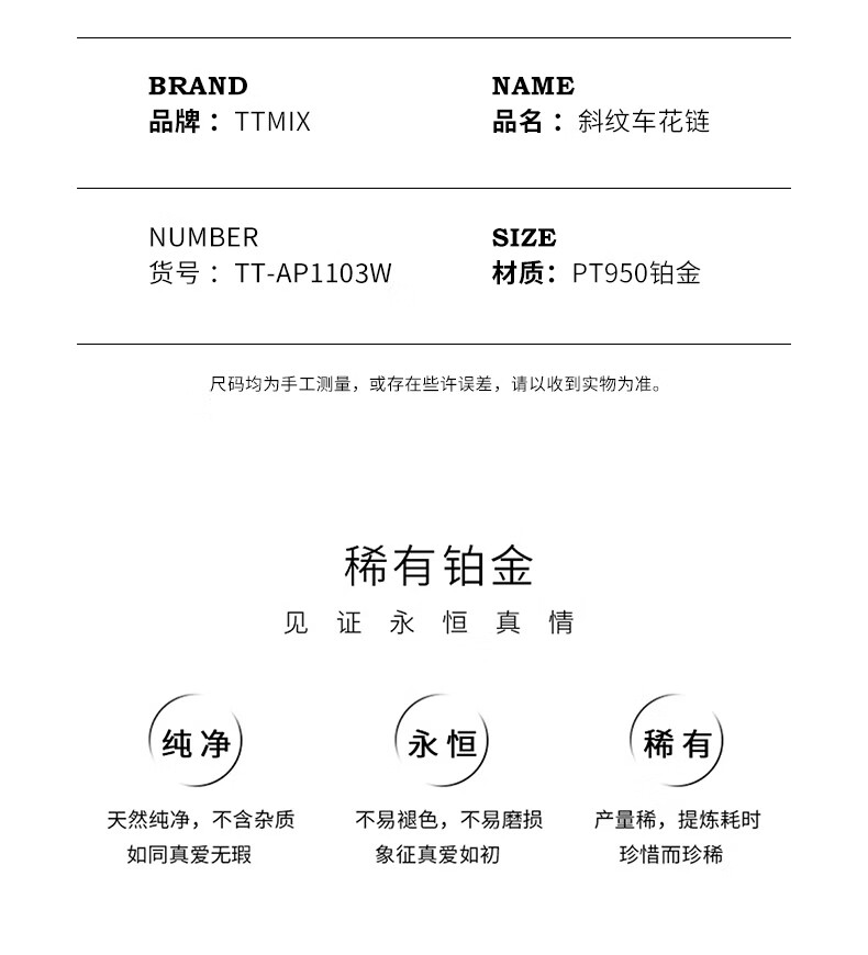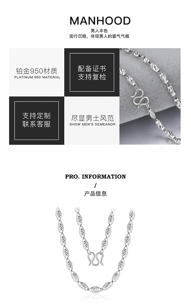 TTMIX men's platinum necklace olive beads pt950 temperament platinum necklace domineering boss chain 50cm weight 9.44g thick 2.4mm