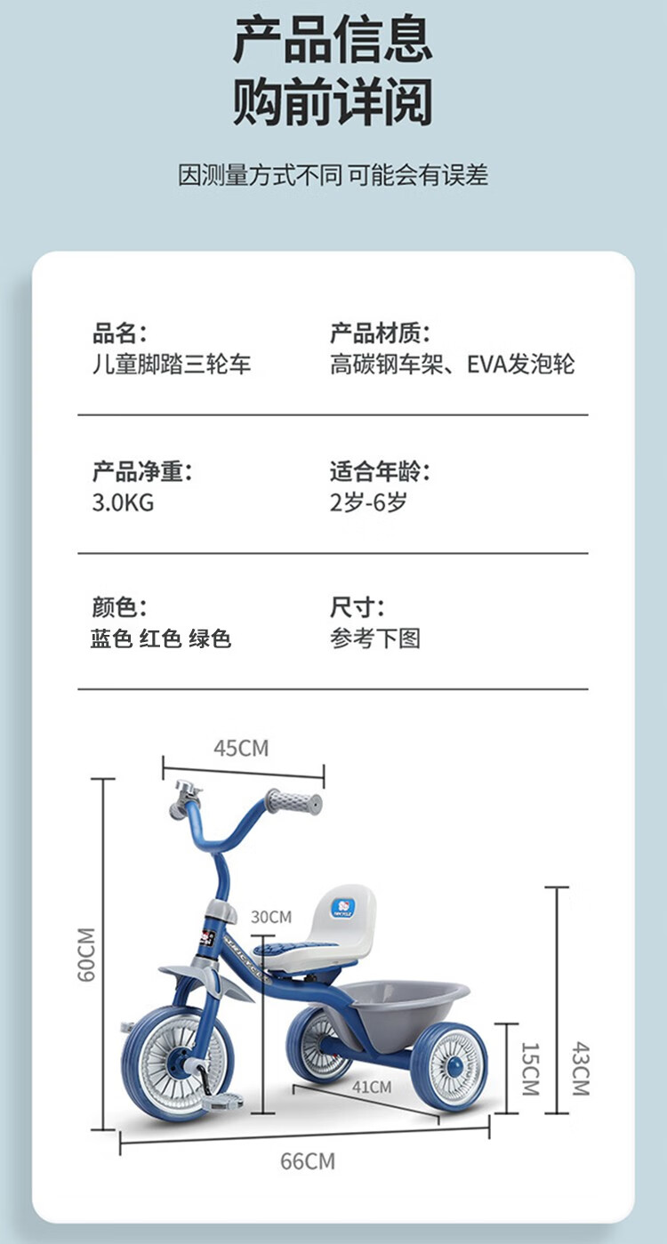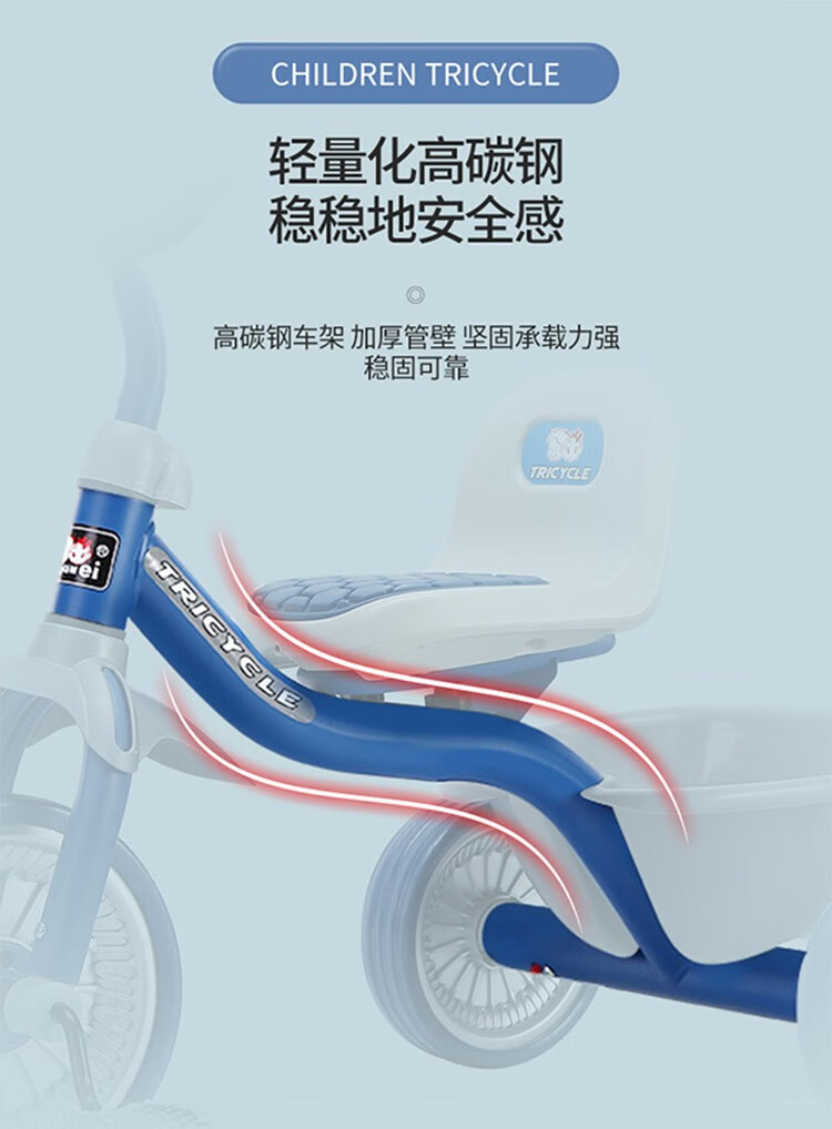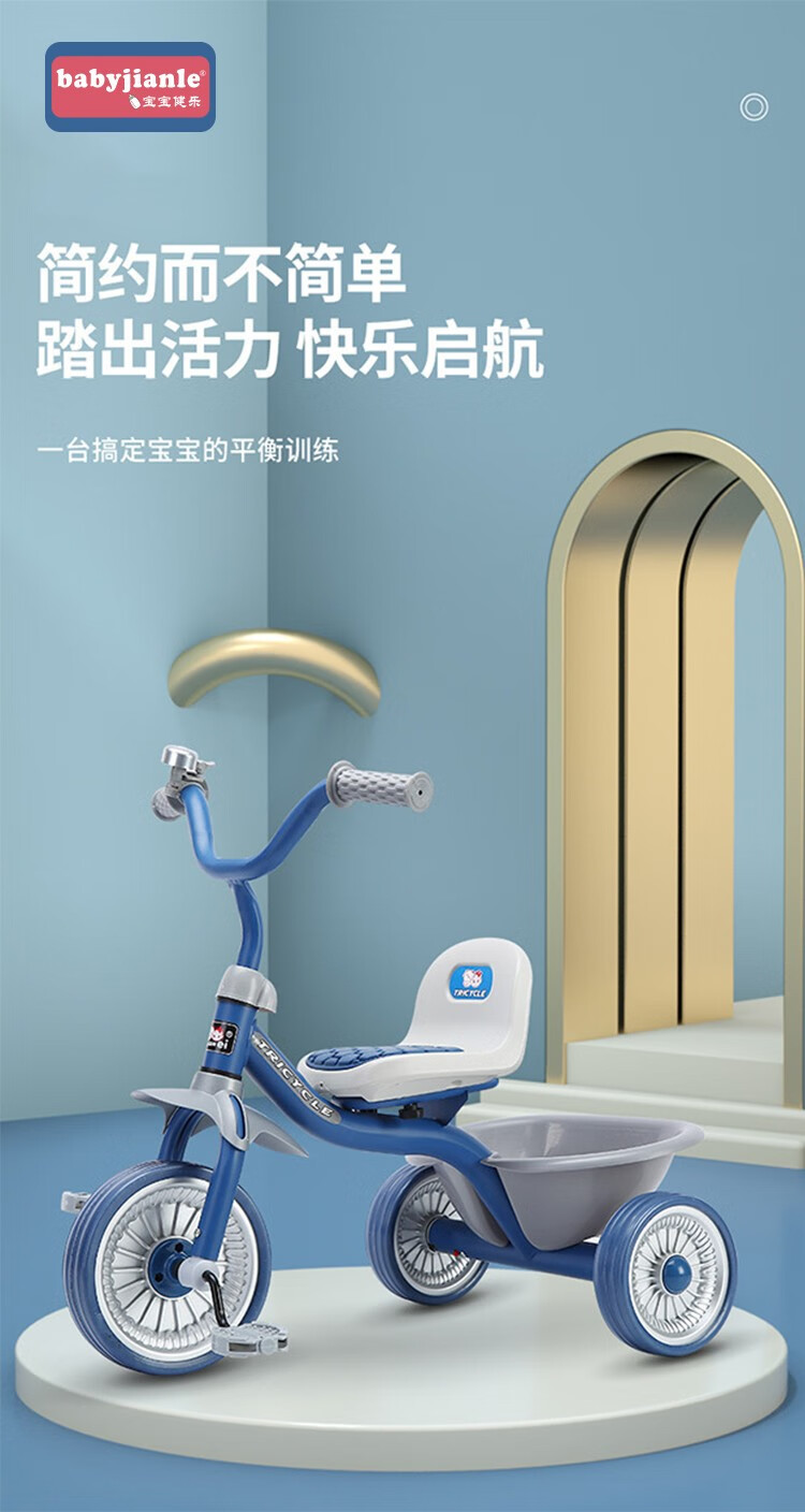 Babyjianle children's tricycle 2-6 years old baby tricycle bicycle anti-rollover children's bicycle with bucket red