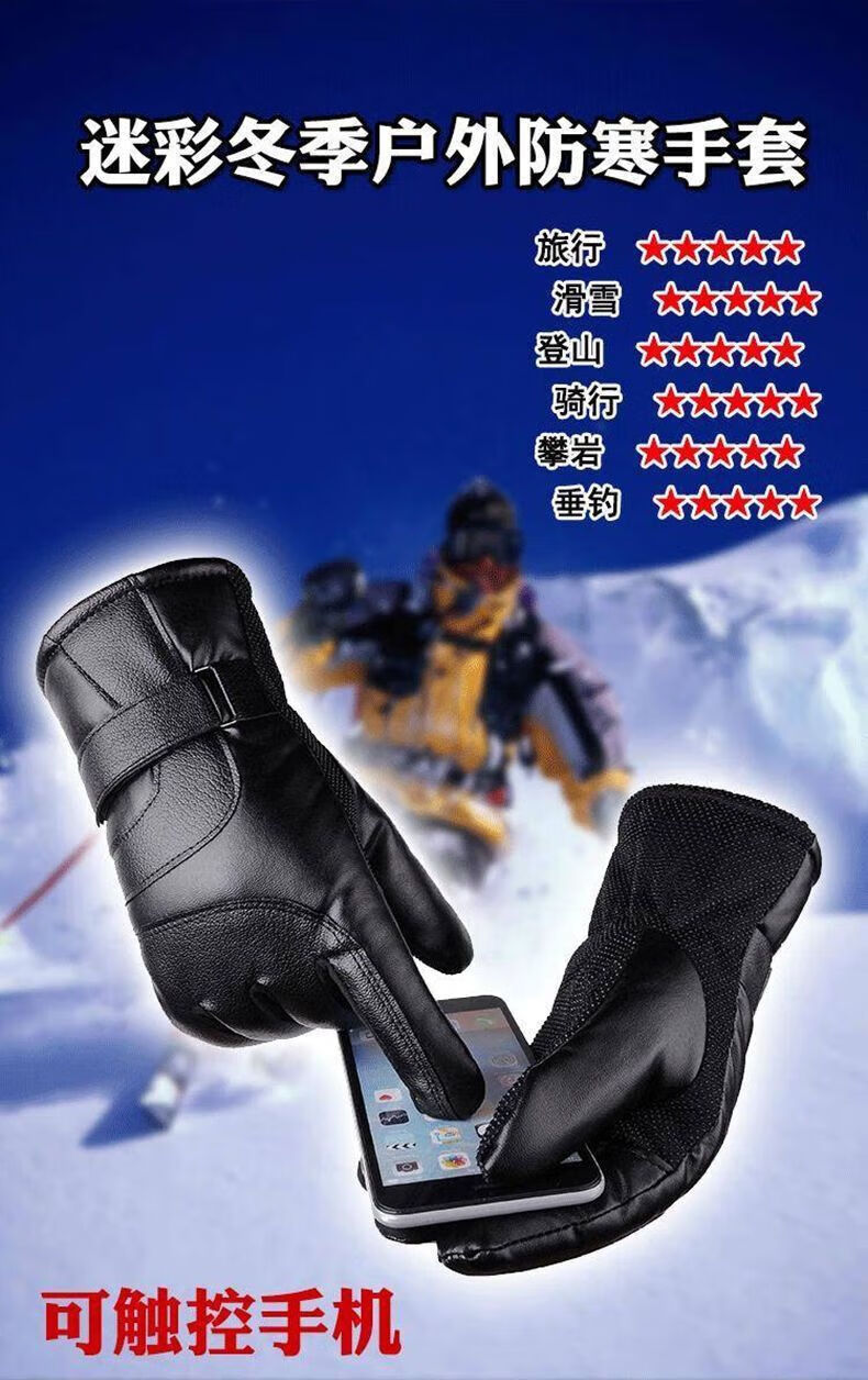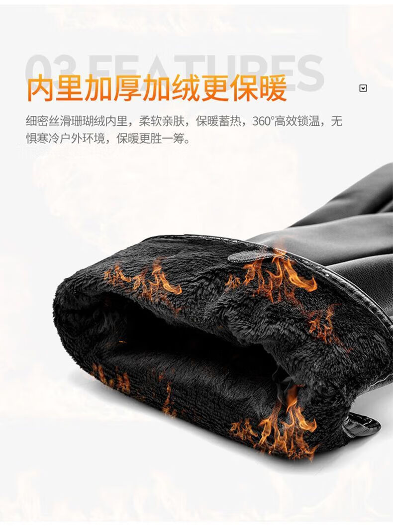 Anyimo gloves men's winter warm plus velvet thickened travel cycling motorcycle leather gloves men's and women's touch screen windproof and waterproof men's cold-resistant king full leather thickened black
