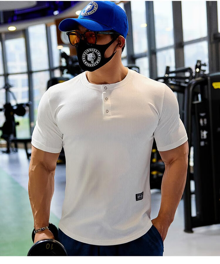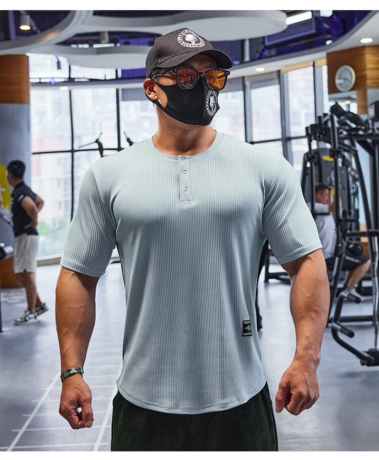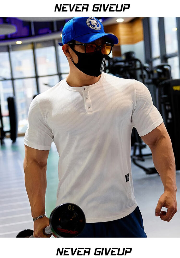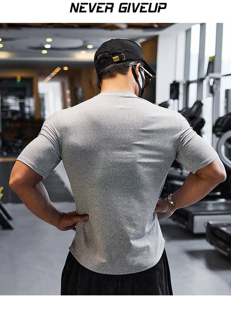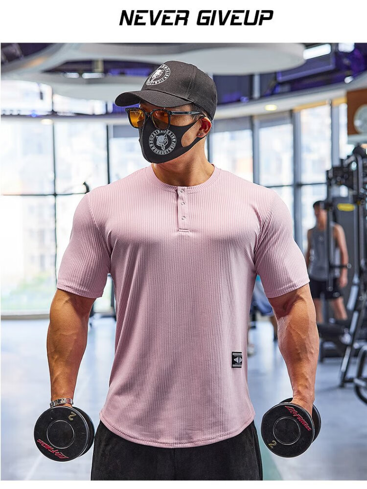 Lutielang Sports Top Short Sleeve T-Shirt Round Neck Slim Fit Quick-Drying Clothing Muscle Training Stretch Breathable Fitness Clothing Summer Pink M