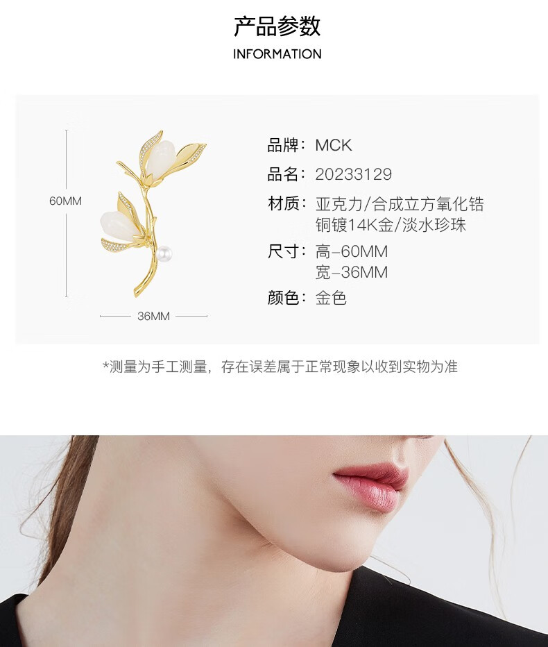 Mck golden magnolia brooch high-end women's corsage suit accessories Chinese Valentine's Day gift