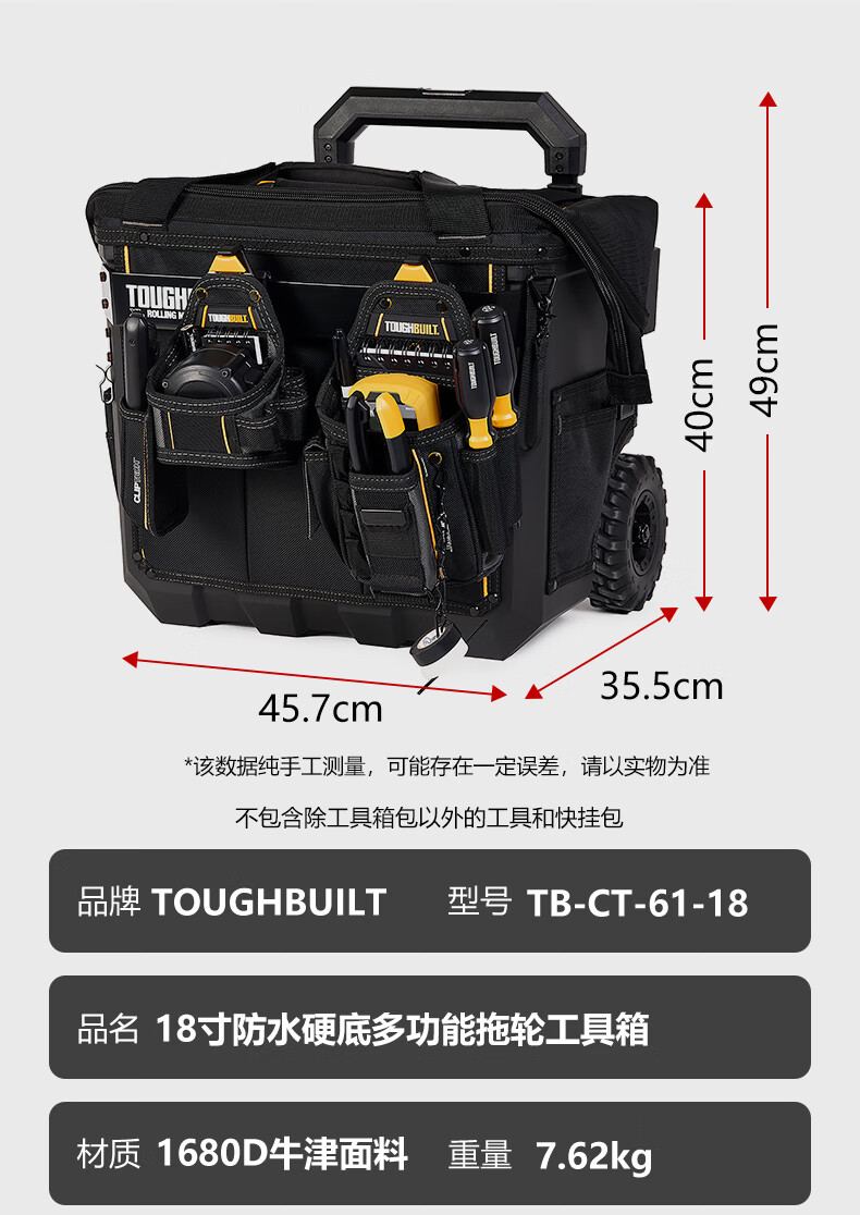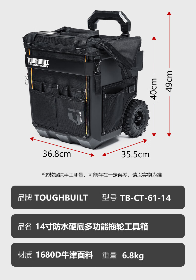 TOUGHBUILT Tuobi Tool Bag Multifunctional Weak Electrician Waterproof Hard Bottom Strong and Durable Push-pull Tug Tool Box TB-CT-61-14 Inch Tug Tool Bag Tool Bag