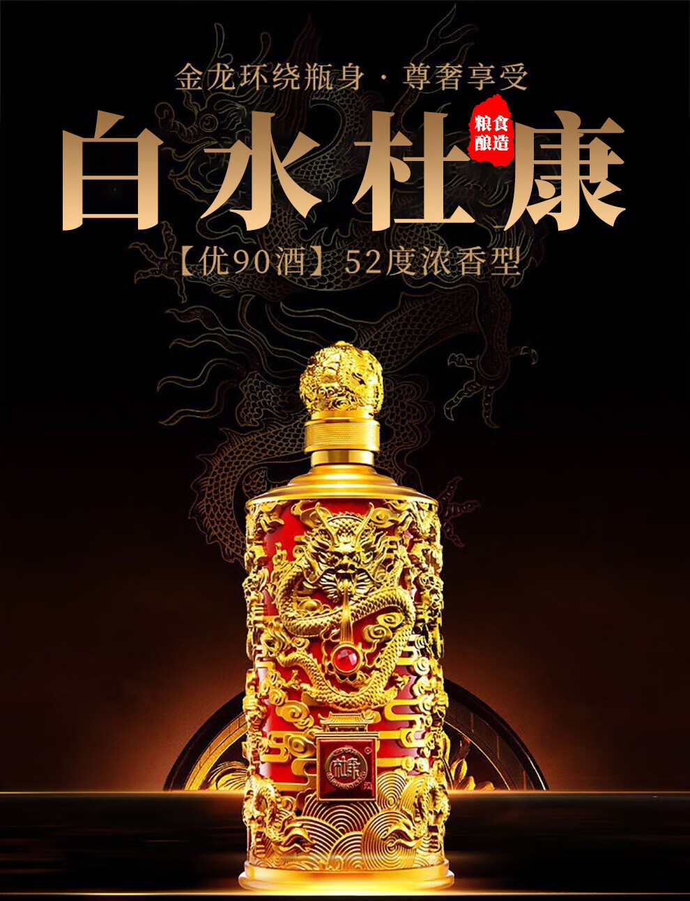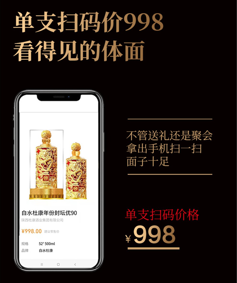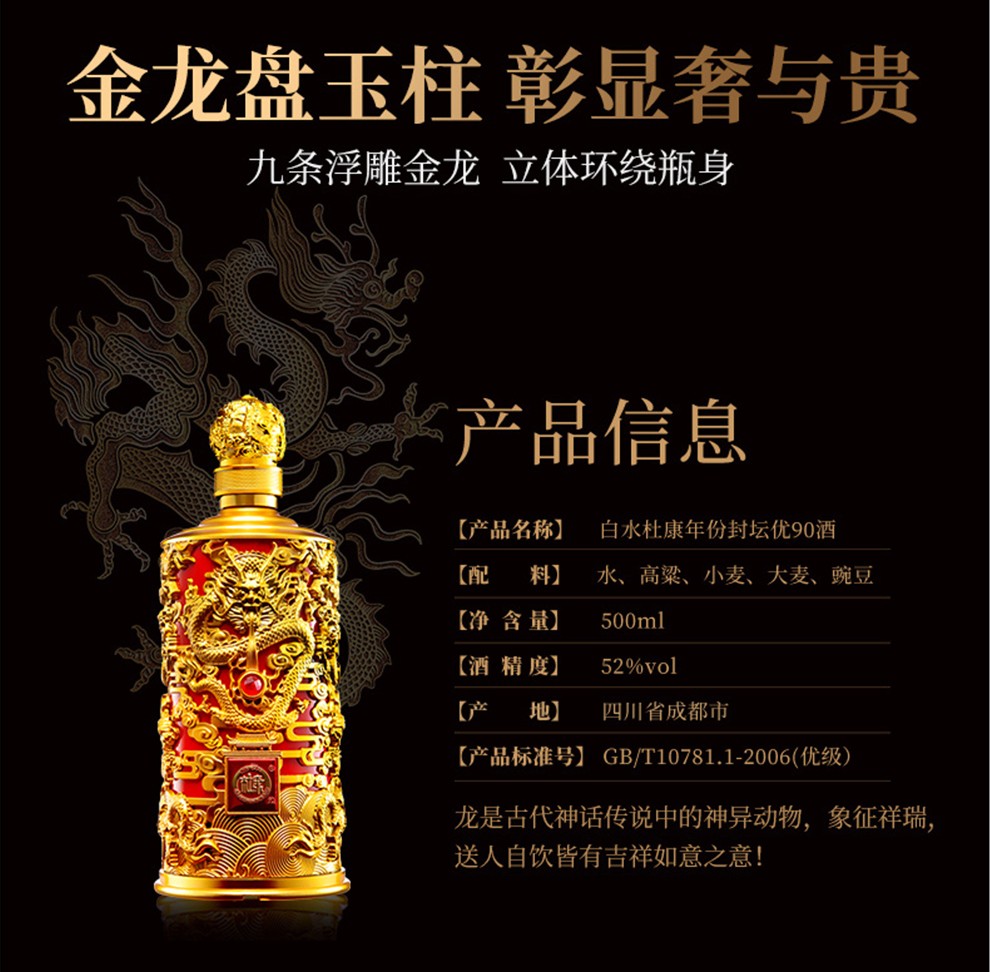 Baishui Dukang strong-flavor liquor, vintage Fengtan Longzun solid-state fermented grain wine, self-drinking wedding banquet gift wine, 52 degrees, 500mL, 2 bottles, You90