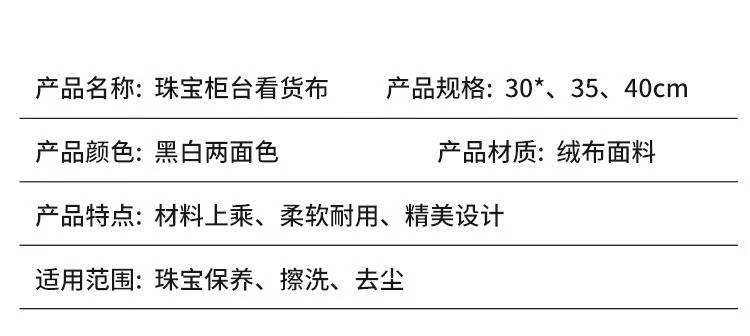 Pei Linkai black and white double-sided jewelry display cloth double-sided velvet counter jewelry jade jade viewing cloth cultural play display doily 35cm*35cm