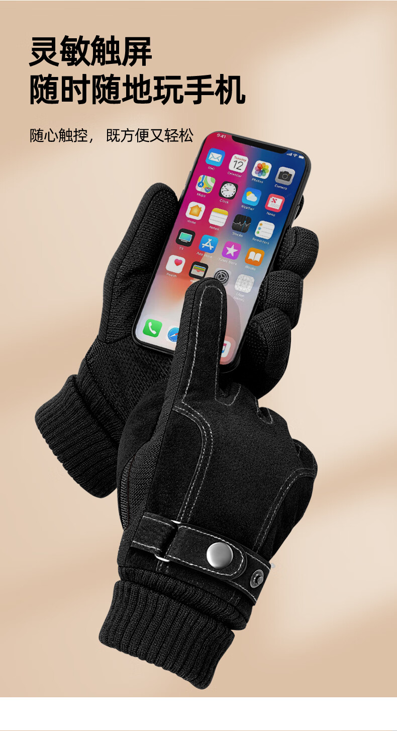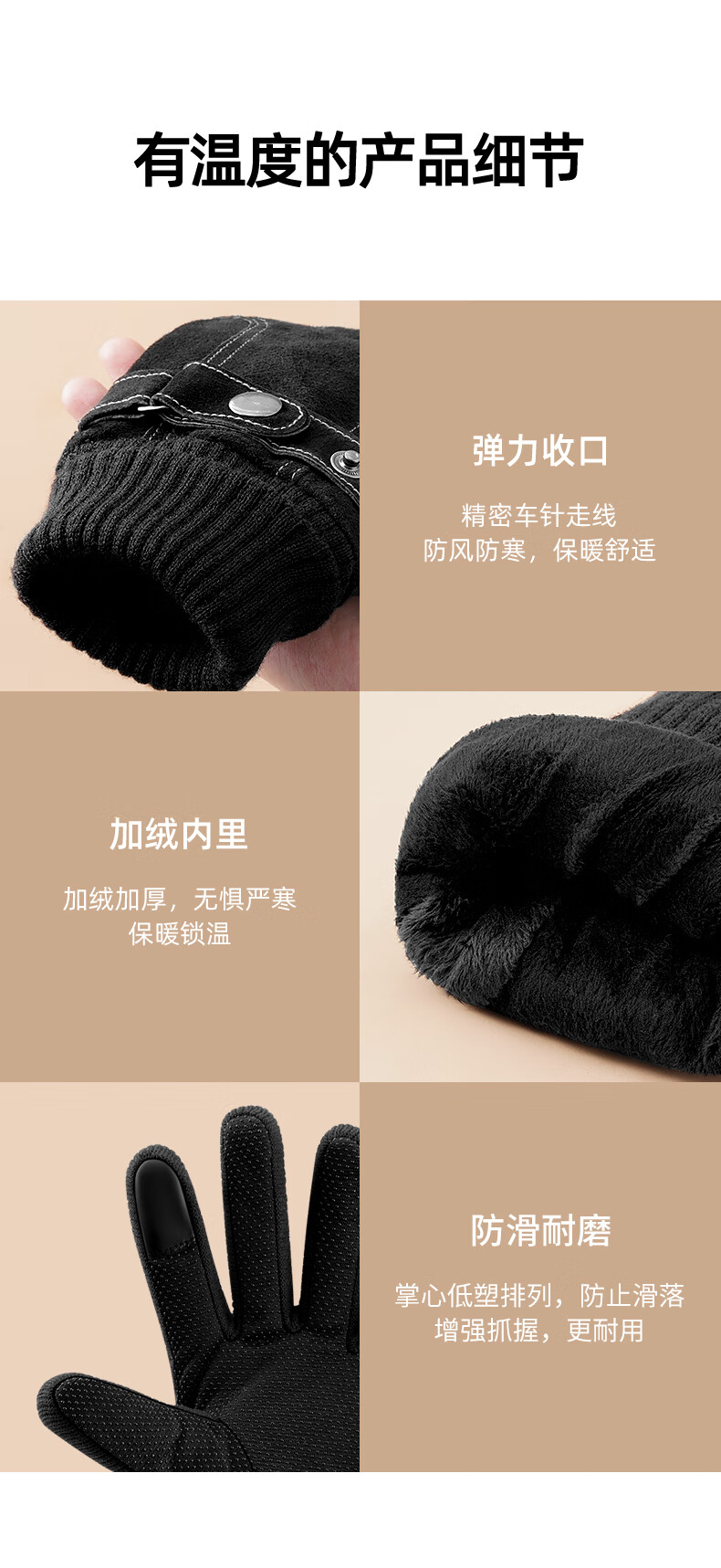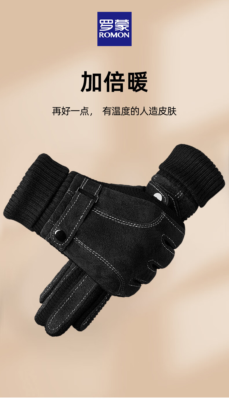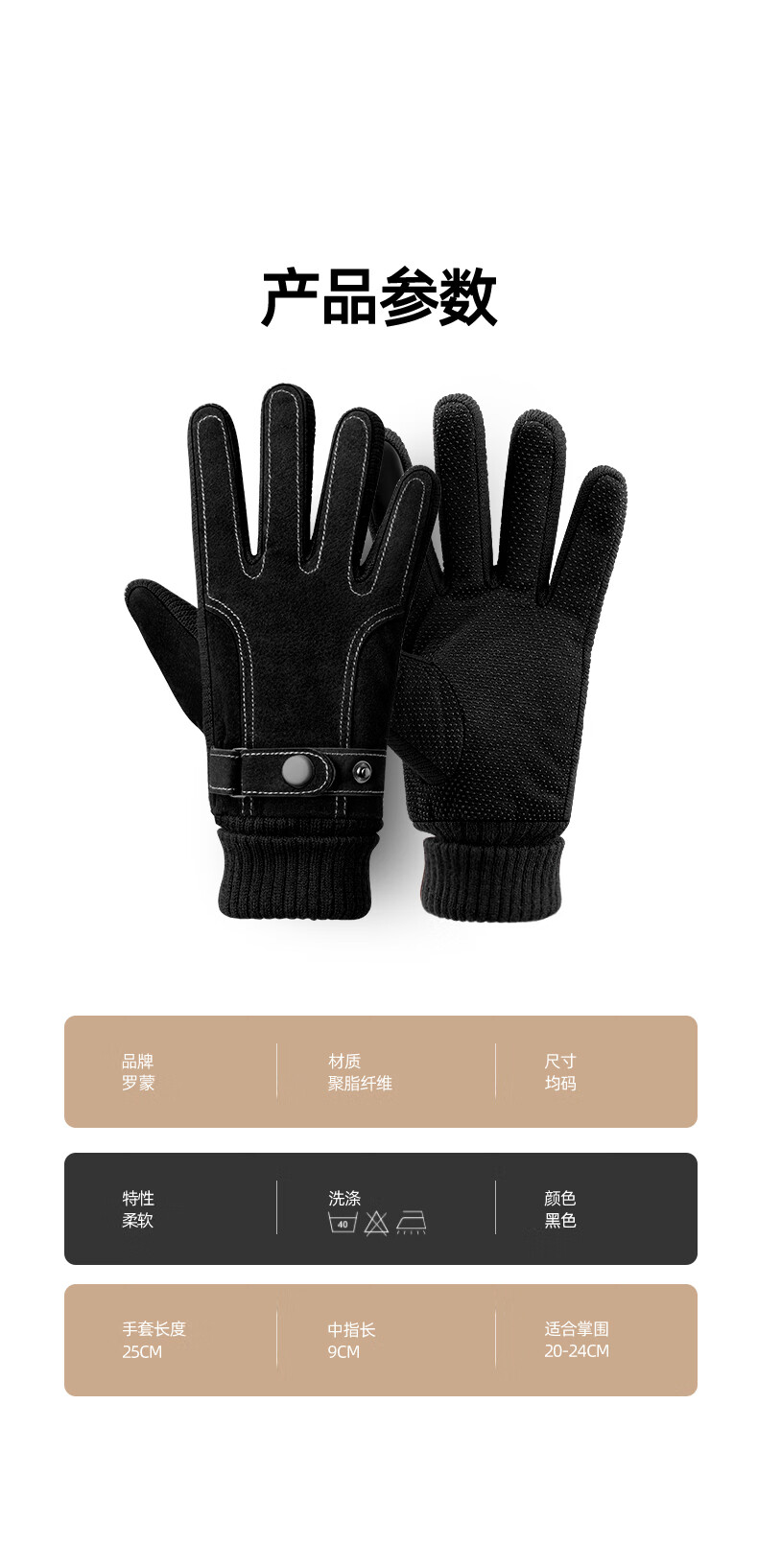 Romon gloves men's winter velvet riding motorcycle thickened touch screen outdoor sports fishing warm leather gloves brown one size