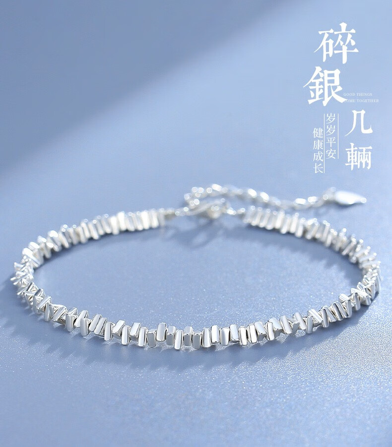 Chinese Gold Broken Silver Bracelet for Women Broken Silver Fashion Bracelet Girl Birthday Gift for Girlfriend Wife Wedding Anniversary Broken Silver Bracelet Jingsuda