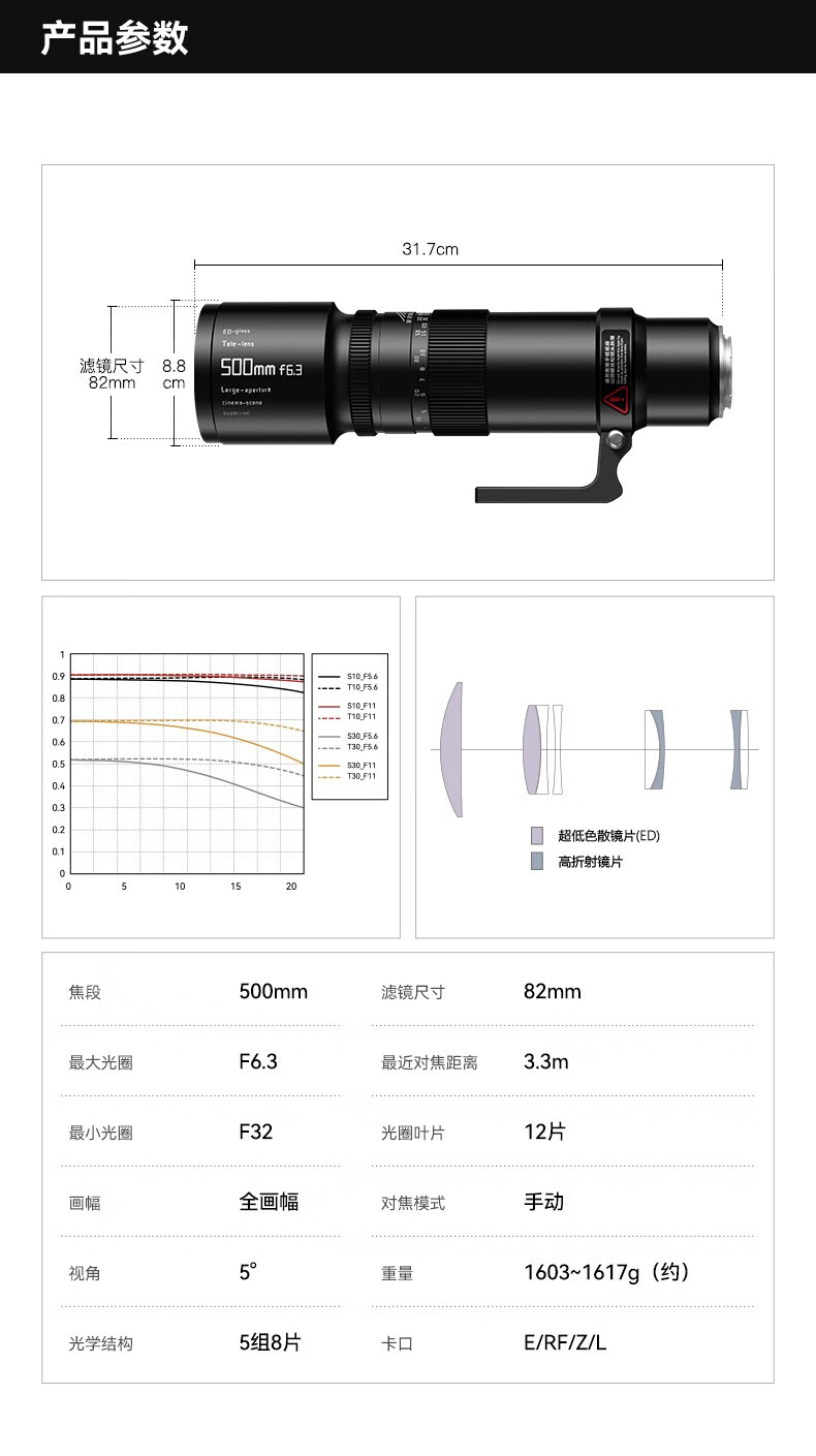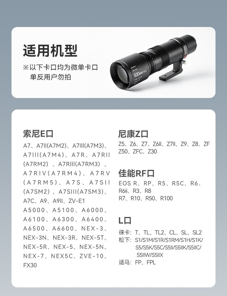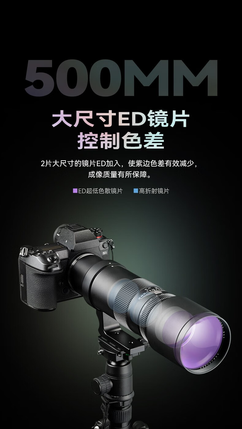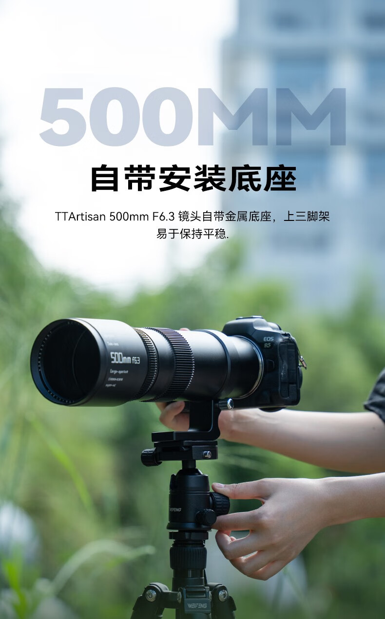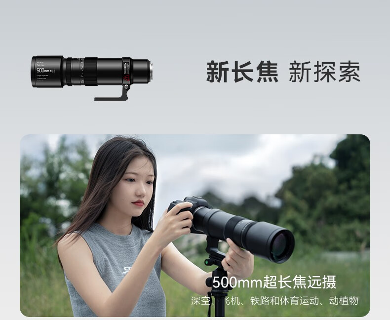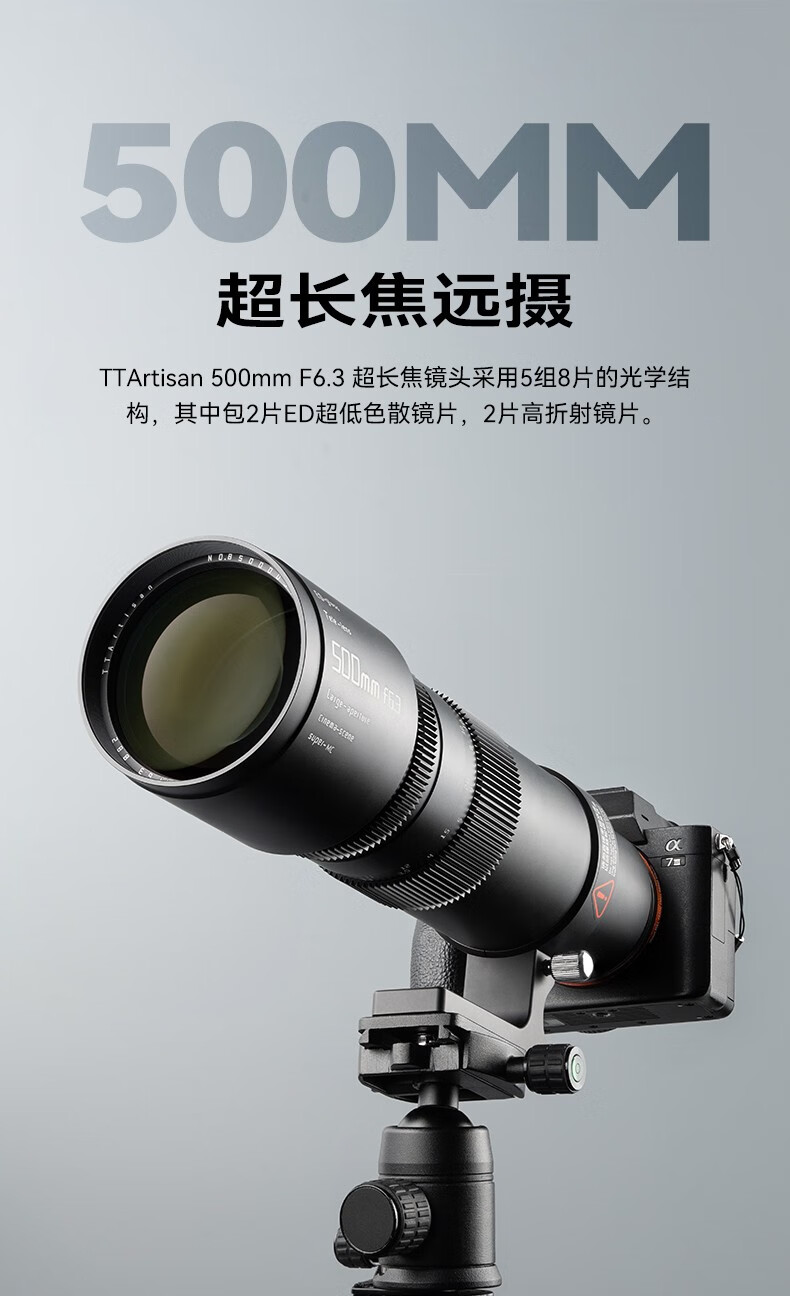 Mingjiang 500mm F6.3 full-frame super telephoto lens for mirrorless cameras with manual focus, black, Leica/Sigma/Panasonic-L mount