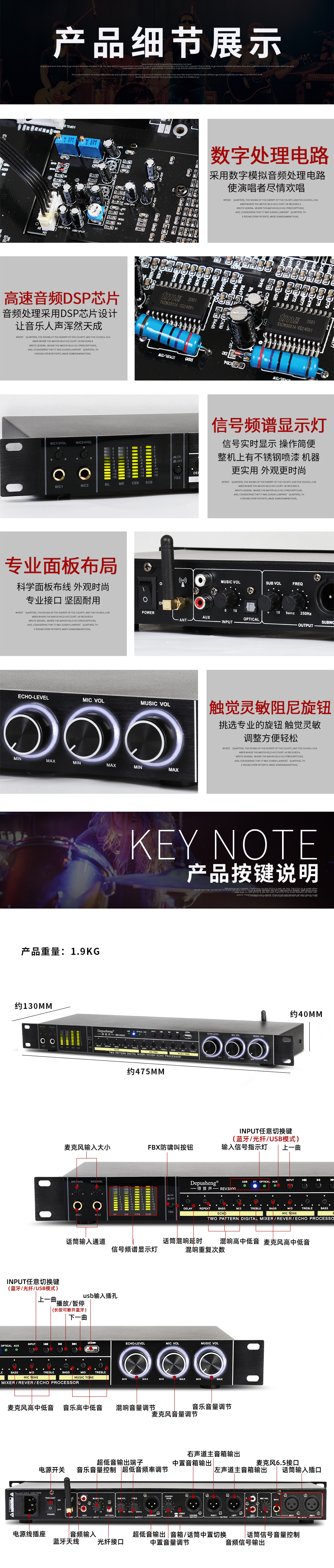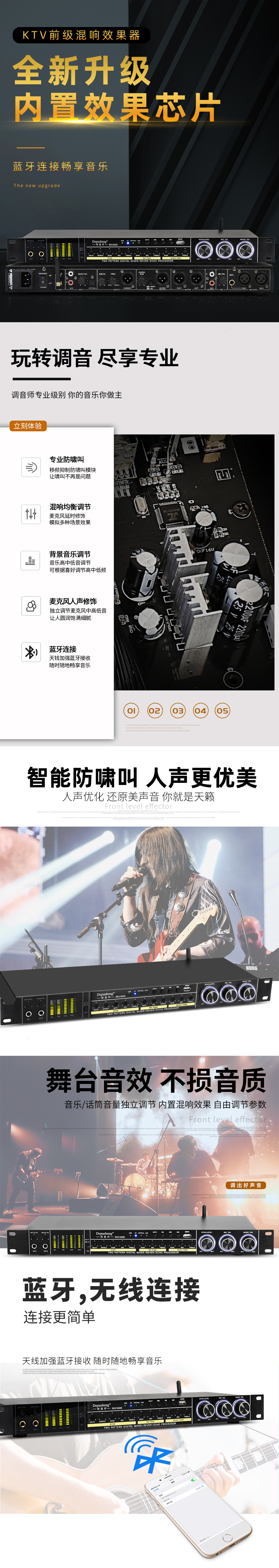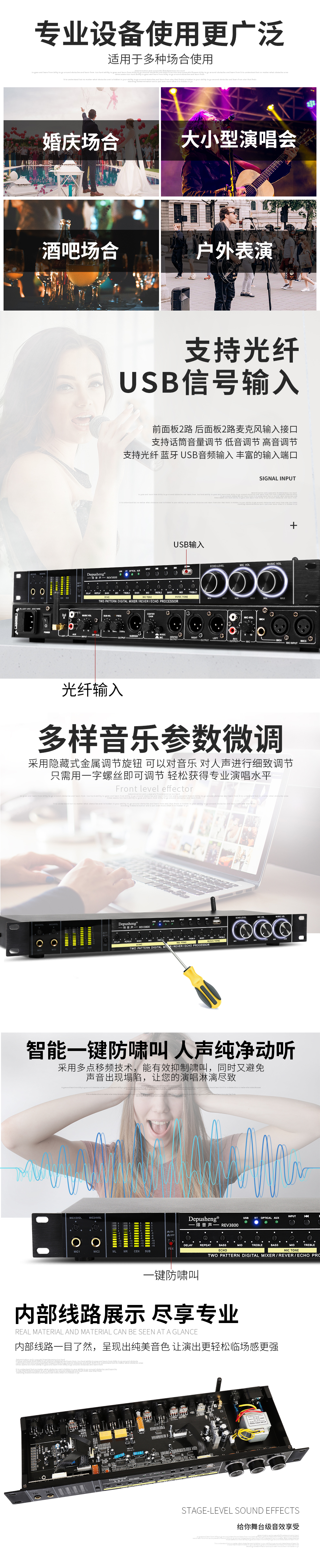 Depusheng REV3800 front-end effector one-click anti-howling KTV stage home double reverberation audio processing analog equalization karaoke smart REV3800 front-end effector