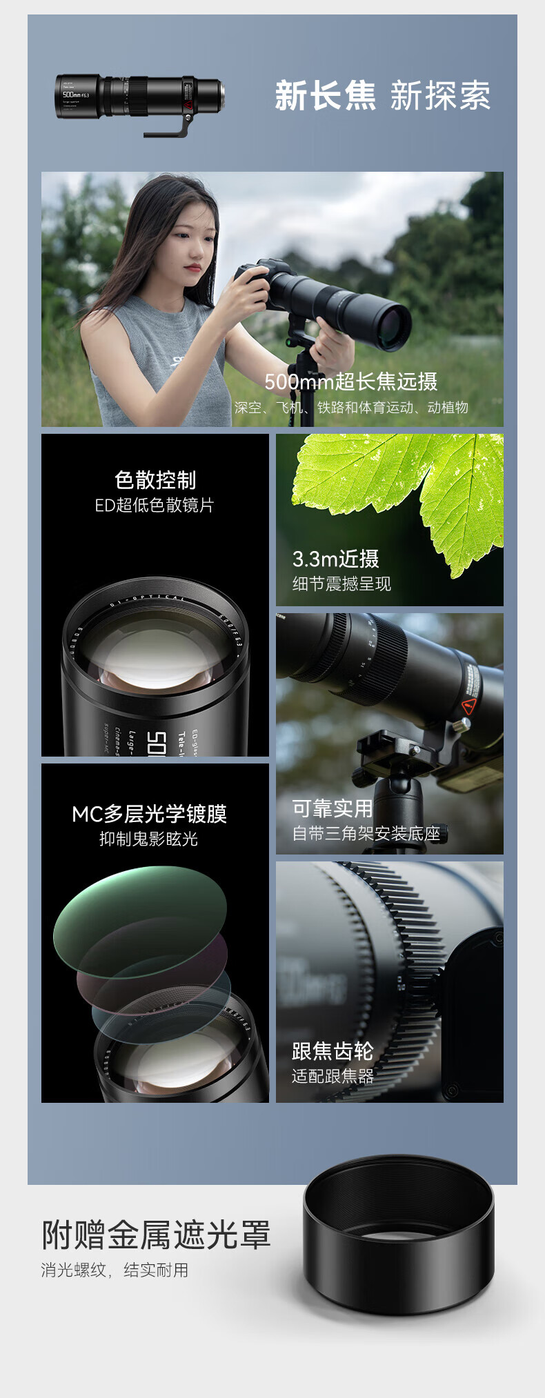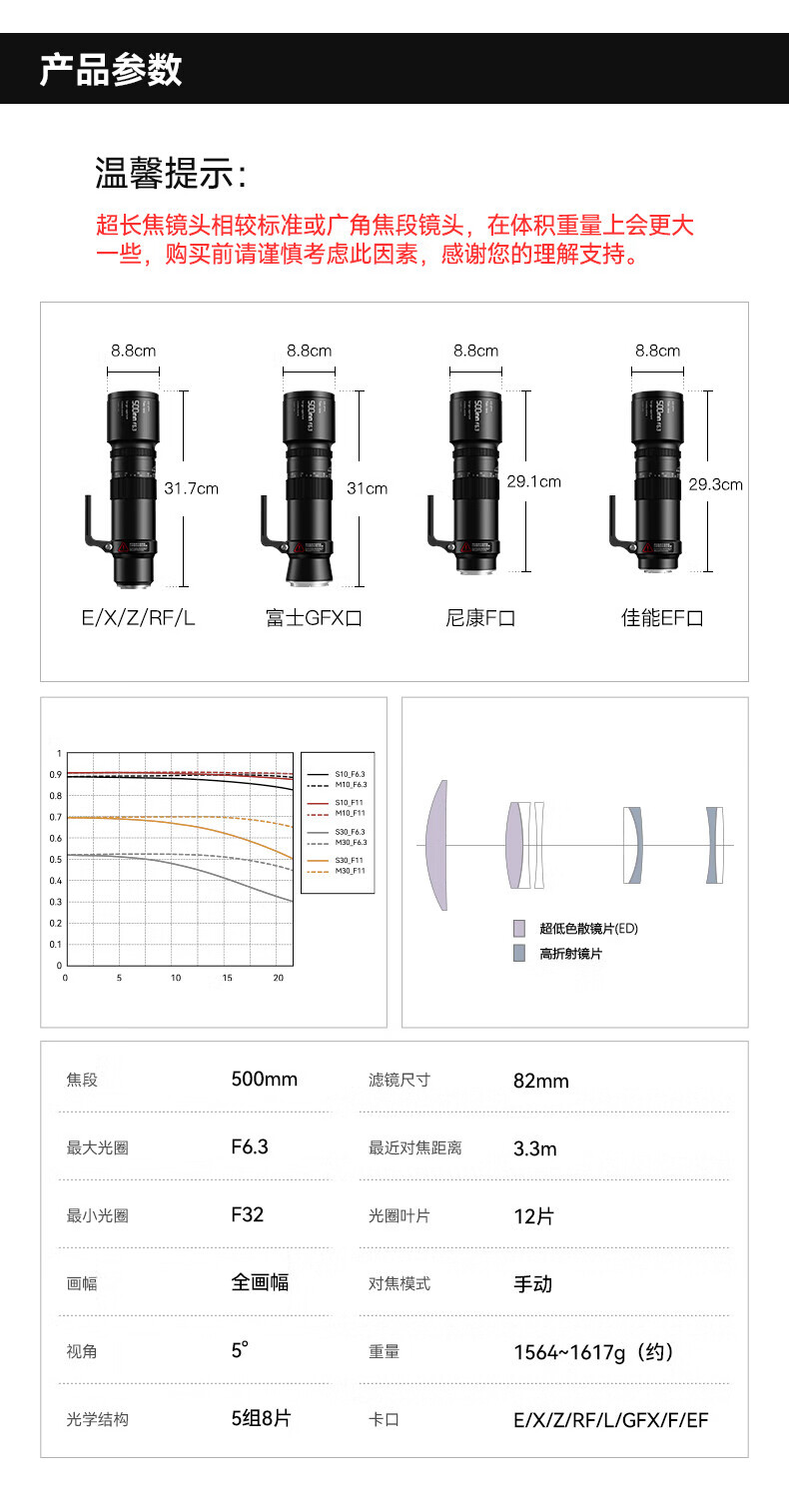 Mingjiang 500mm F6.3 full-frame super telephoto telephoto lens suitable for X mount E mount Z mount RF mount L mount camera Mingjiang 500f6.3 fixed focus lens Sony FE mount official standard package free UV+ND