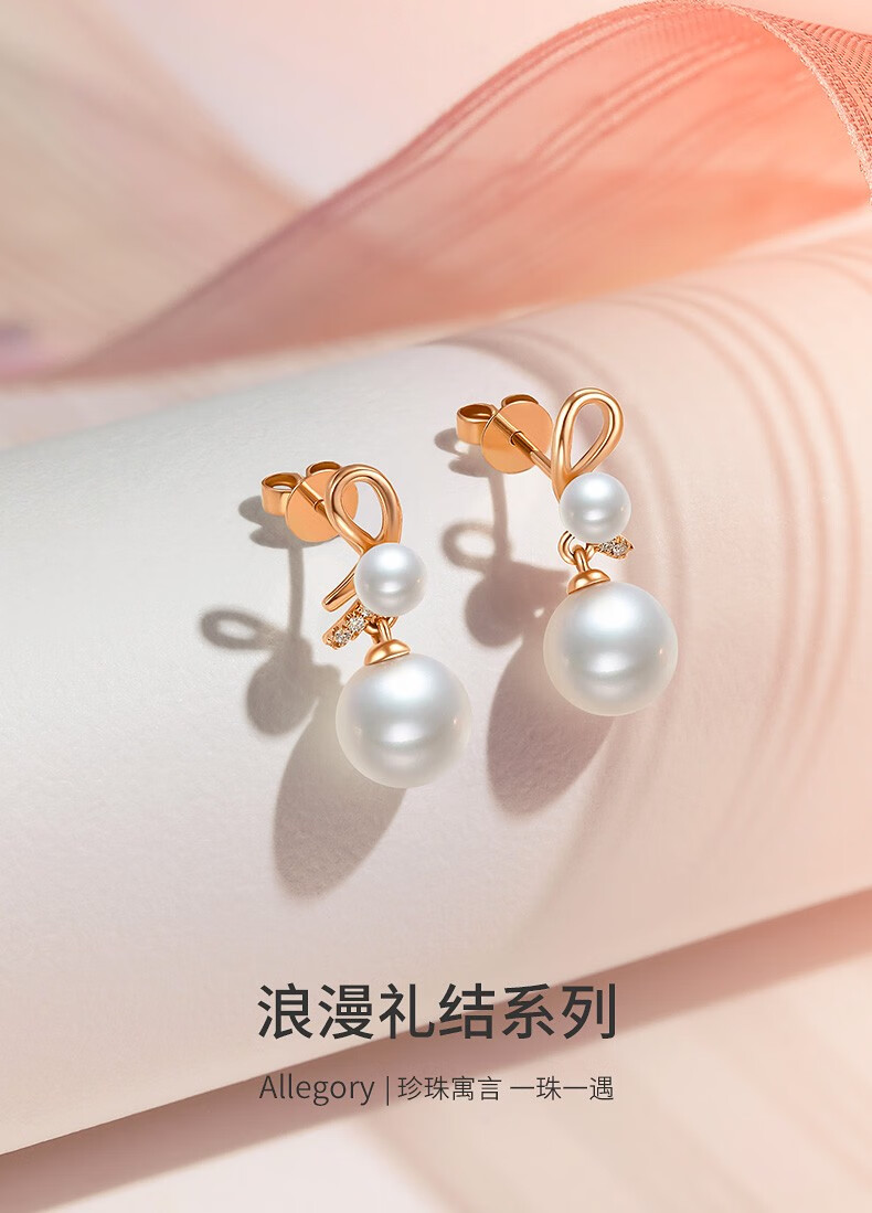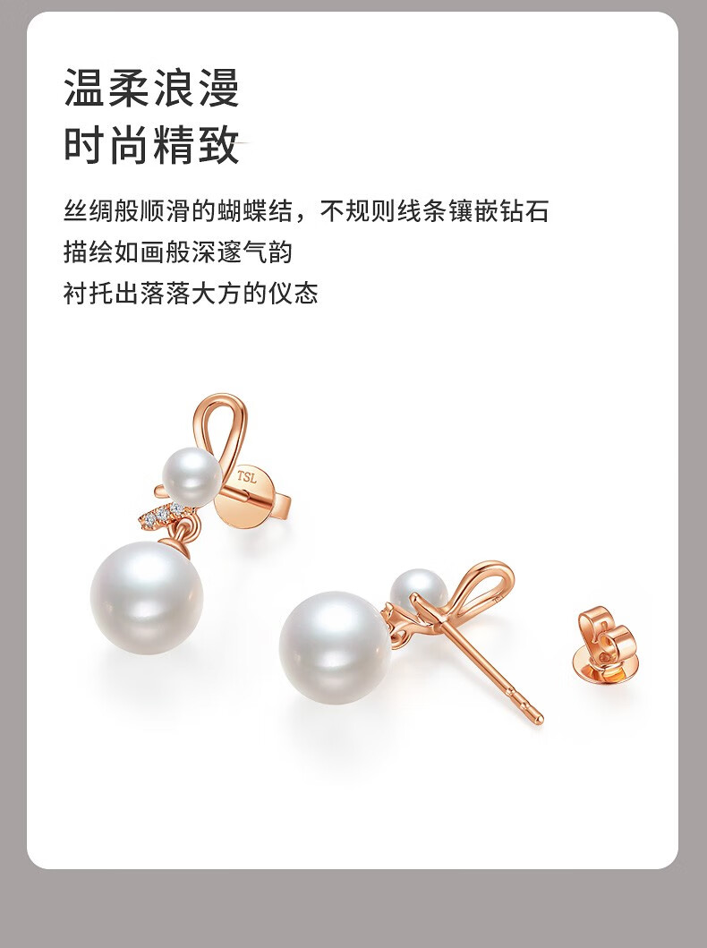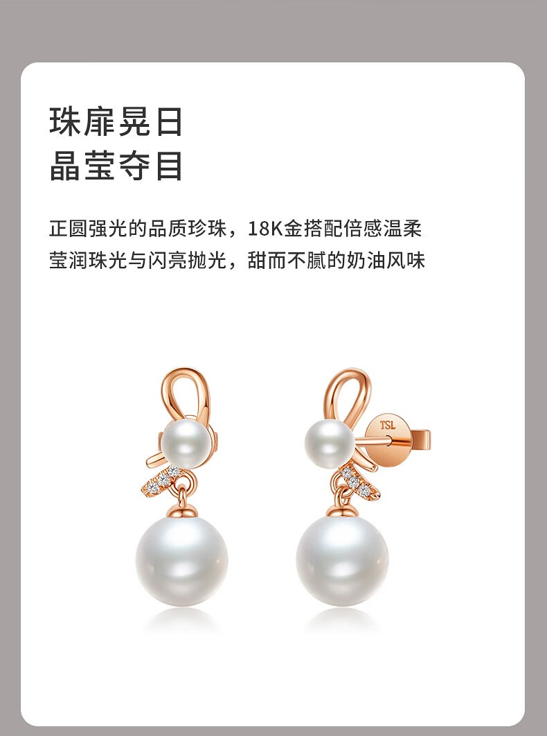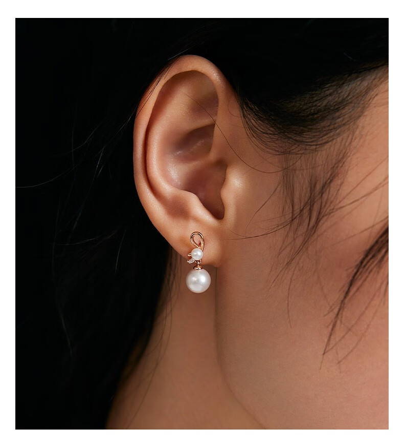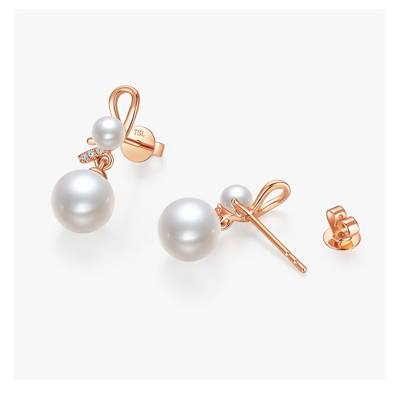 Xie Ruilin (TSL) 18K Gold Pearl Earrings Romantic Gift Knot Series Geometric Knot Rope Earrings Women's Gift BE429 Earrings
