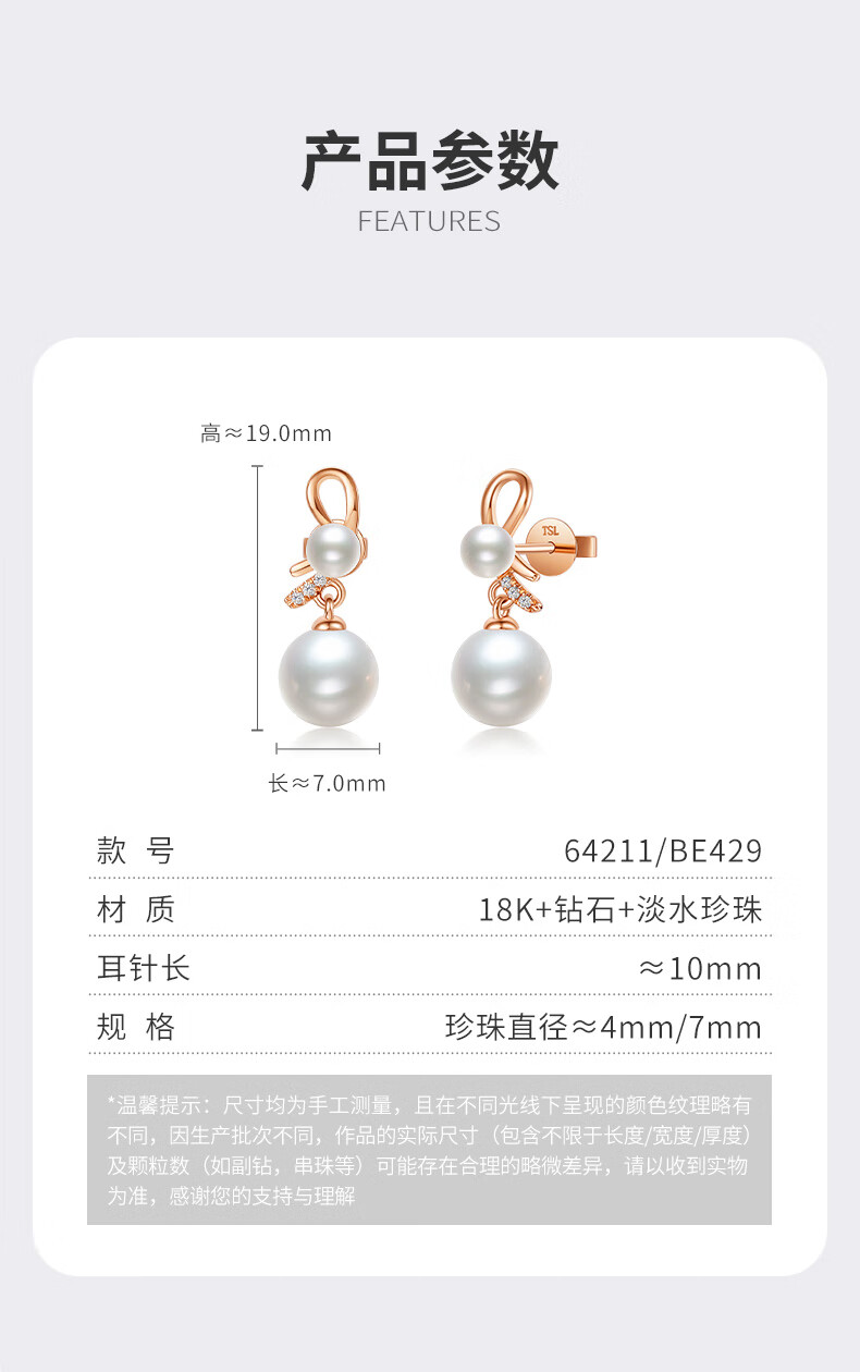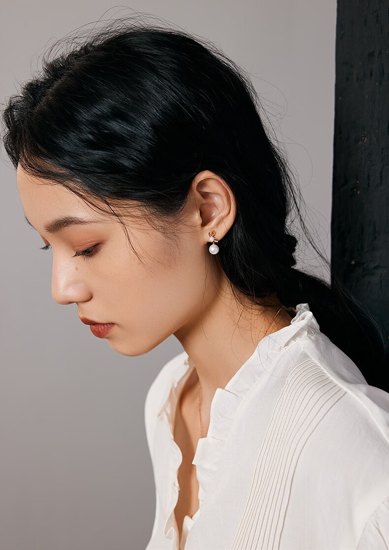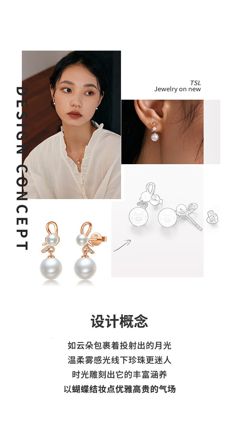 Xie Ruilin (TSL) 18K Gold Pearl Earrings Romantic Gift Knot Series Geometric Knot Rope Earrings Women's Gift BE429 Earrings