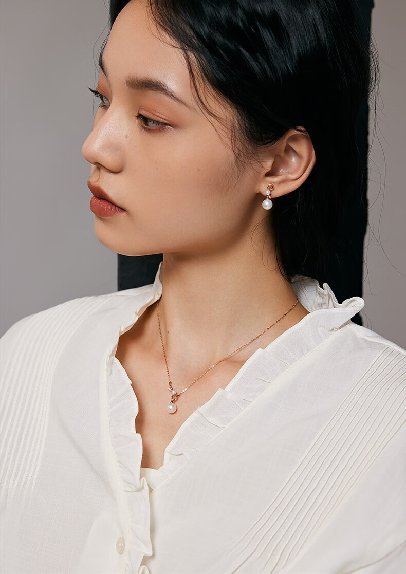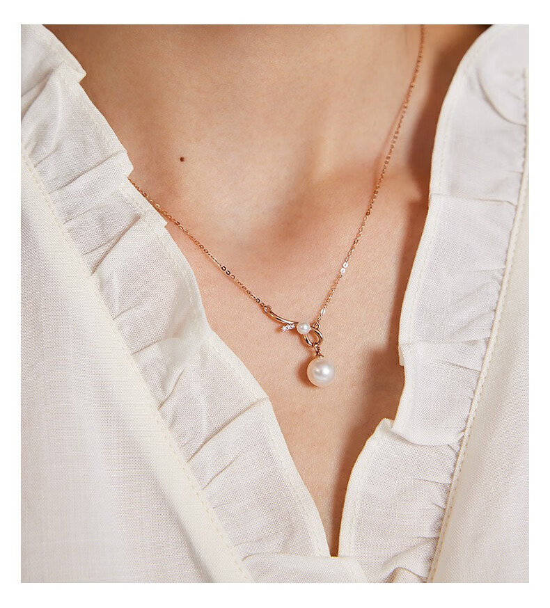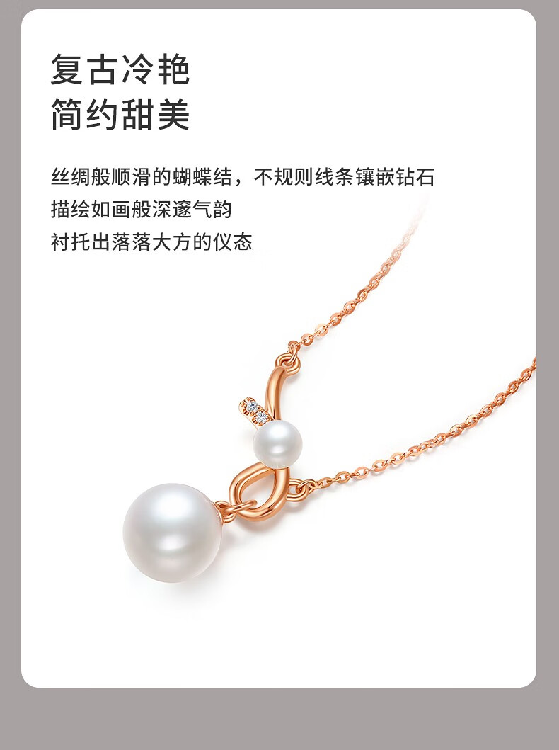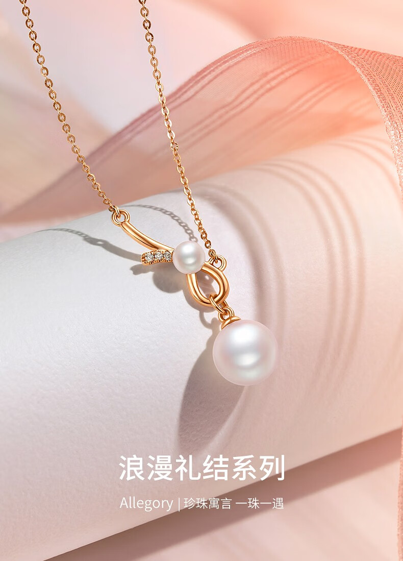 Xie Ruilin (TSL) 18K gold diamond pearl necklace romantic gift knot series geometric knot clavicle chain 64210 5 diamonds in total, about 1 minute