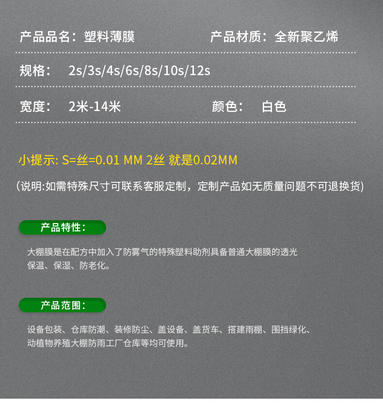Nongyumeng greenhouse film agricultural white plastic sheet thickened thermal insulation waterproof anti-aging transparent non-drip film 2 meters wide (6S) 1 meter long