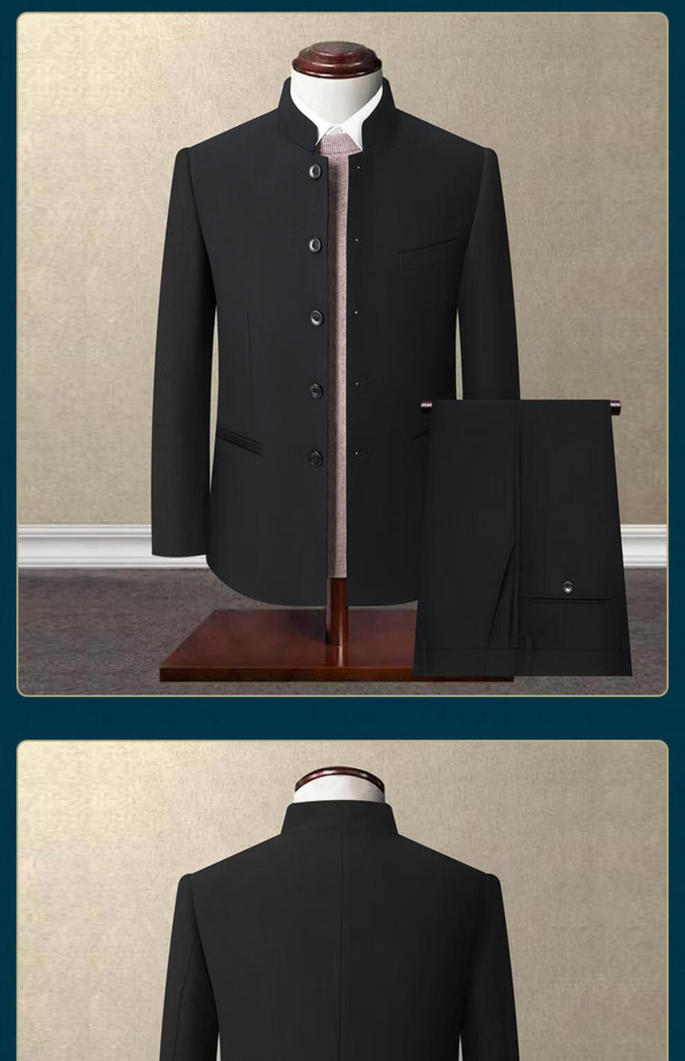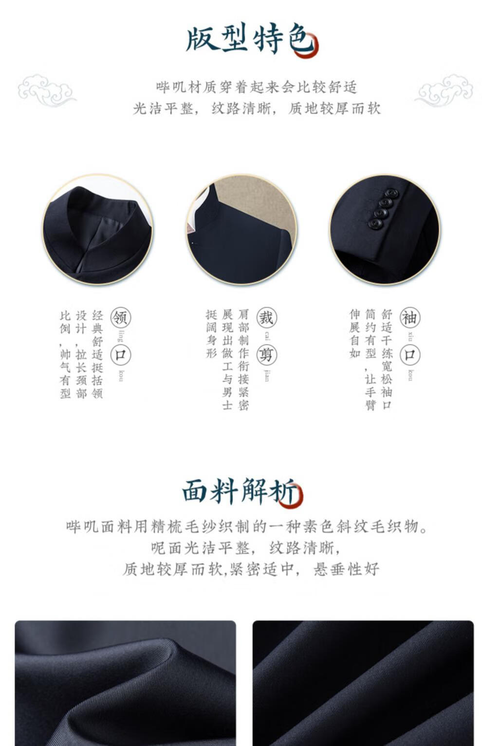 Hengyuanxiang Spring and Autumn Chinese Style Chinese Stand Collar Suit Mao Suit Men's Middle-aged Slim Tang Suit Men's Middle-aged Dad's Suit Pure Navy Blue Style 175B 156-166Jin Jin is equal to 0.5 kg