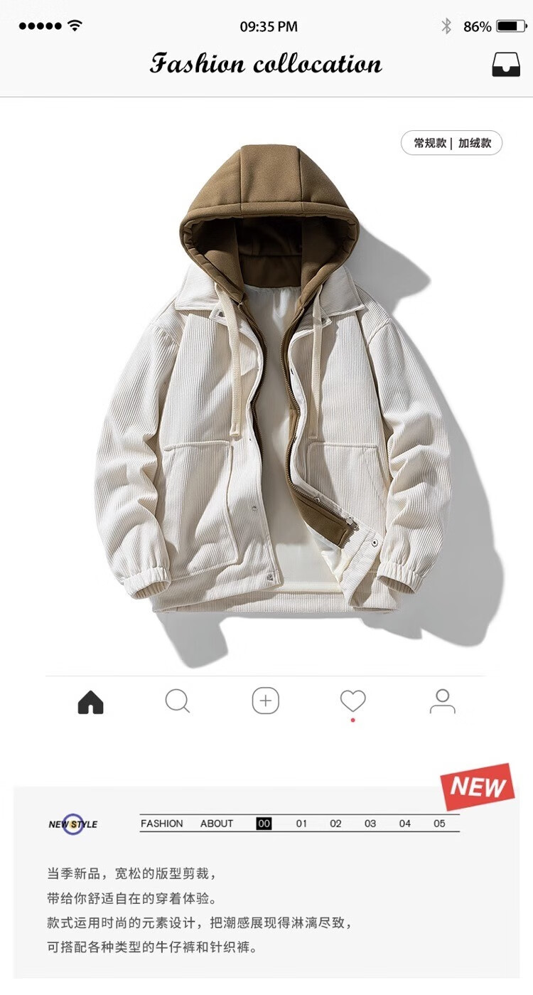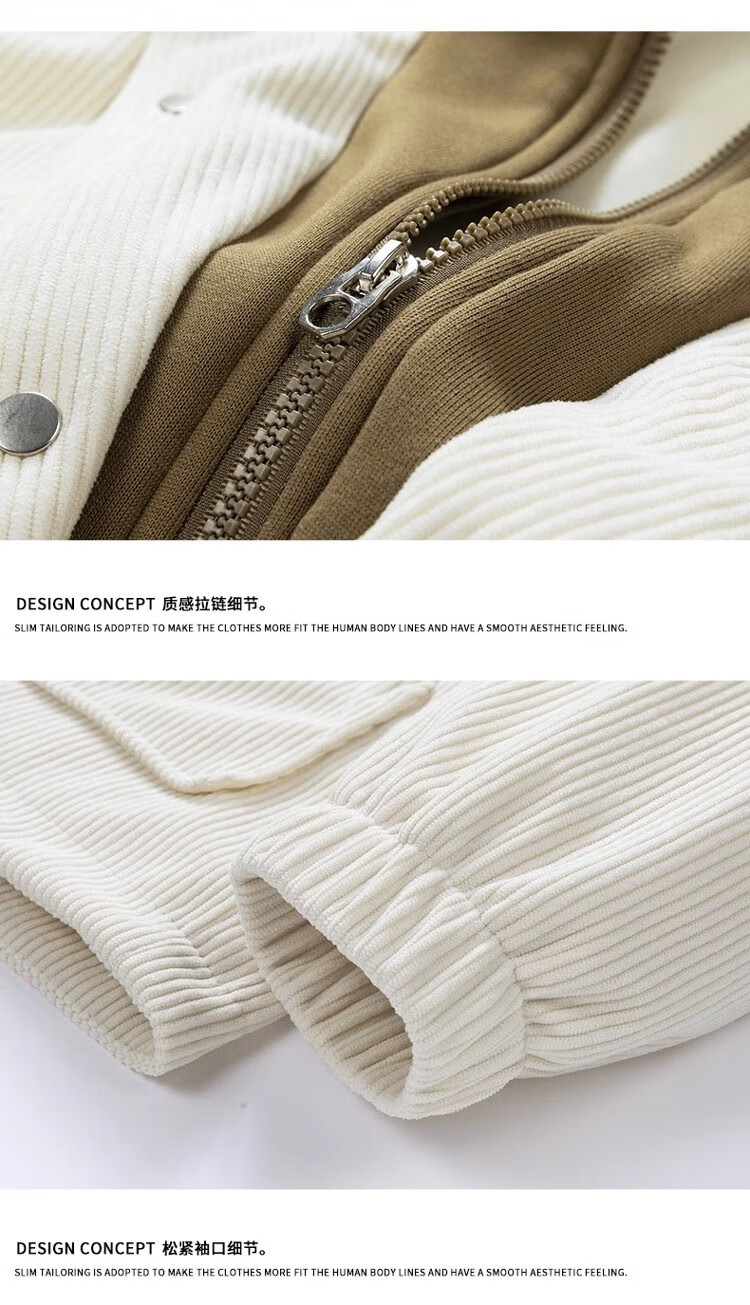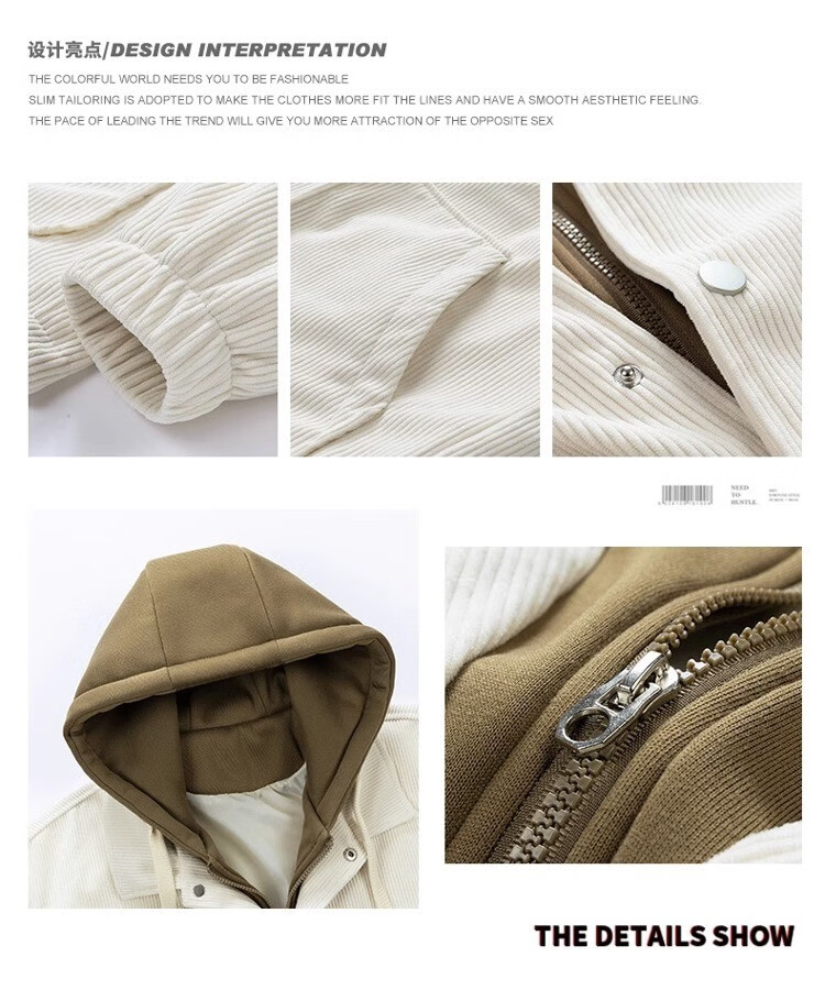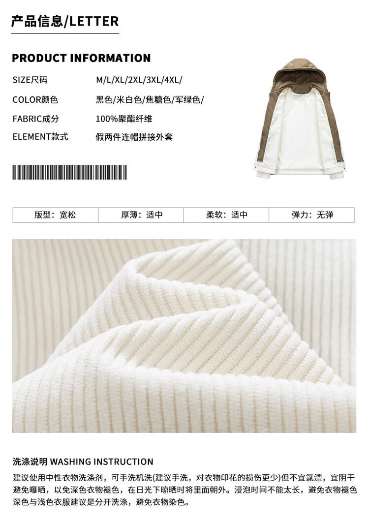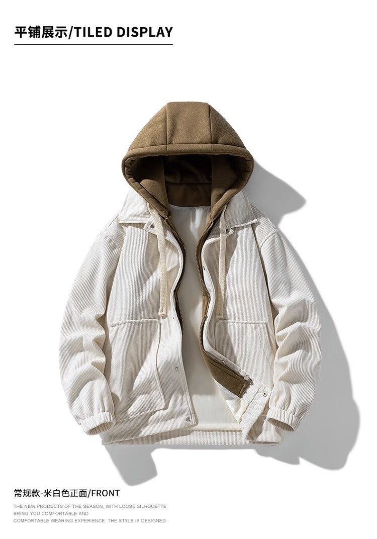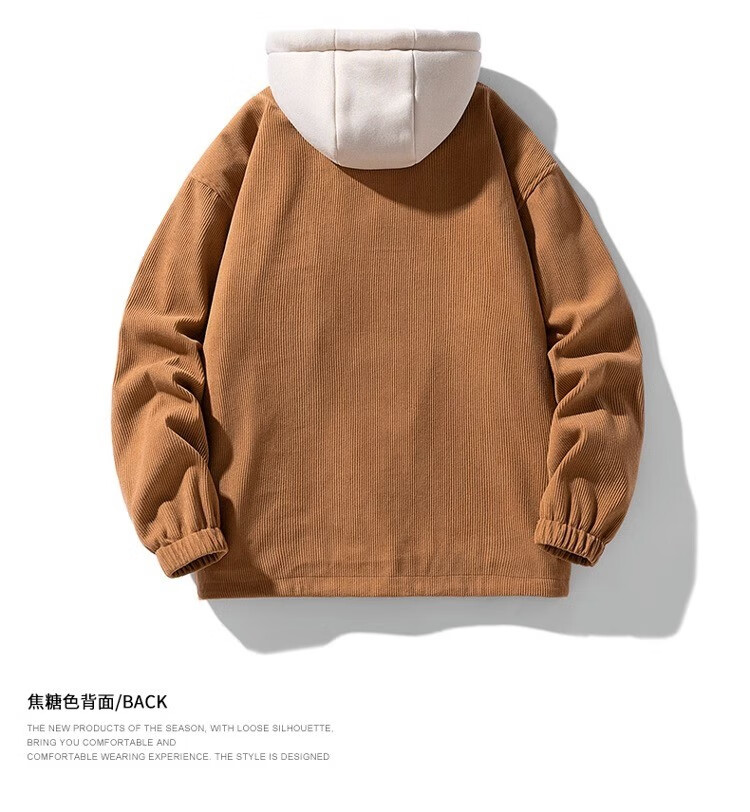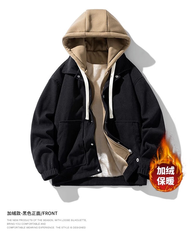 Jeanswest gefälschte zweiteilige Cordjacke für Herren im Herbst und Winter, neue trendige Marke, plus Samt, warmer Baumwollmantel, lockere Kapuzenjacke, Kleidung, Karamell plus Samt, Größe L