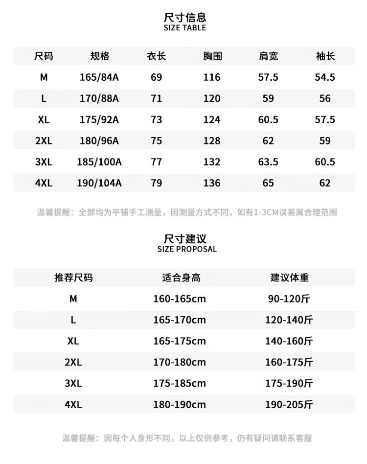 China (cm) 165 / 88-90 170 / 96-98 175 / 108-110 180 / 118-122 185 / 126-130