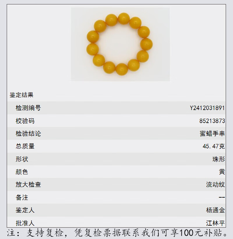 Amber style, one thing, one picture, one certificate, beeswax bracelet for men, natural amber full of honey, chicken fat yellow, no cracks, bracelet 45.47g, bead diameter 18.2mm