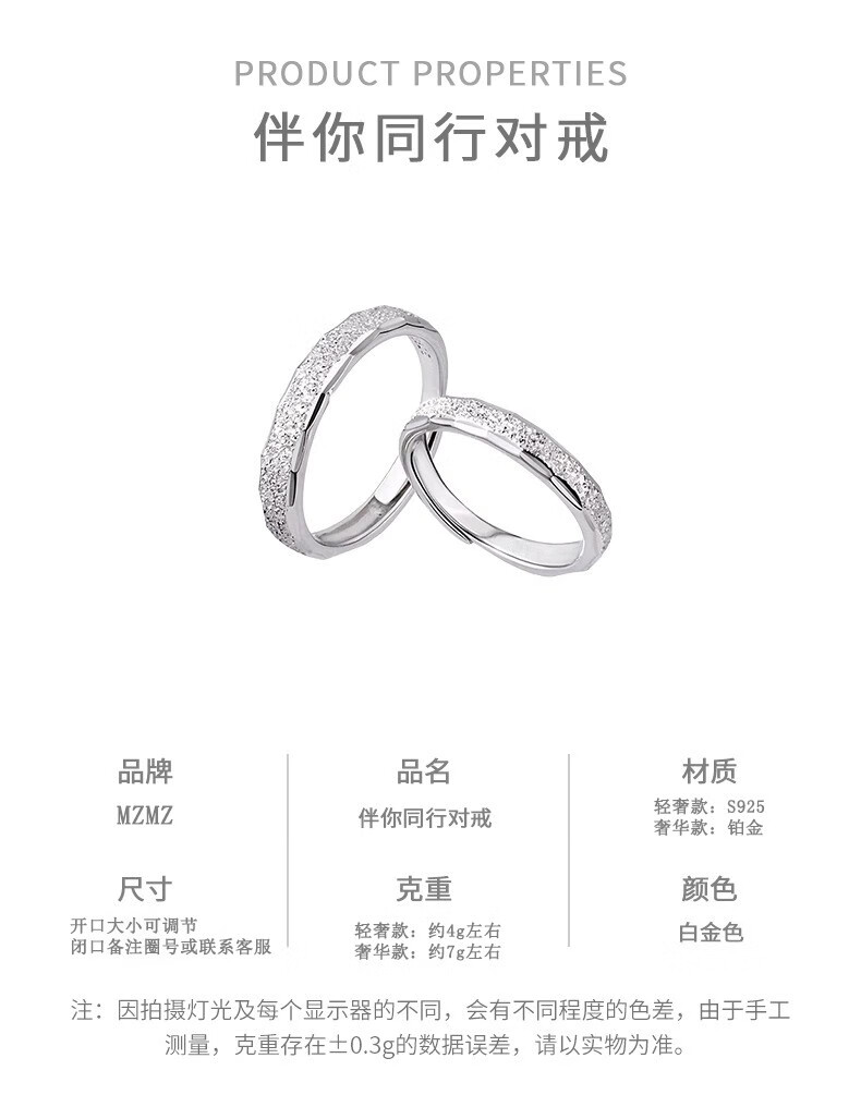 MZMZ Platinum Ring Accompanying You pt950 Platinum Couple Ring Engagement Proposal Birthday Anniversary Gift Luxury Style - Platinum Pairing Ring Accompanying You