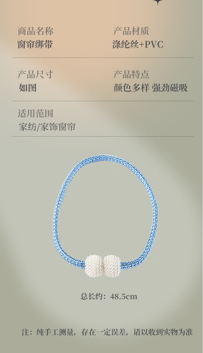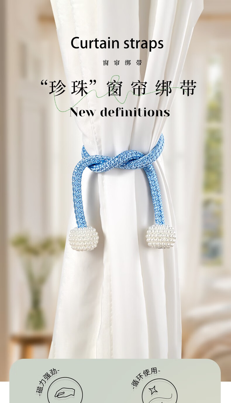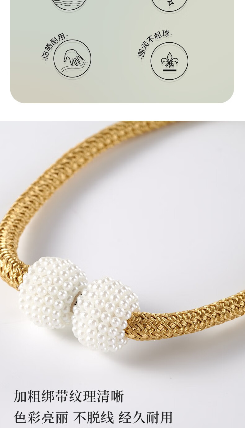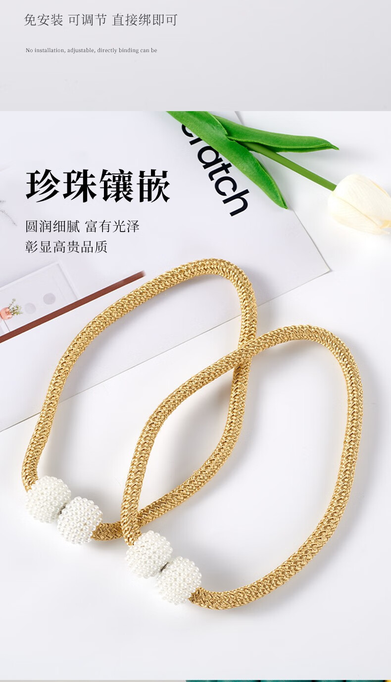 Curtain straps, one pair, ropes, curtain buckles, buckle straps, bed curtain storage ropes, magnetic pearls, no need to punch holes, curtain straps - Mijiu color, 1 pair, 2 pieces, no Specifications