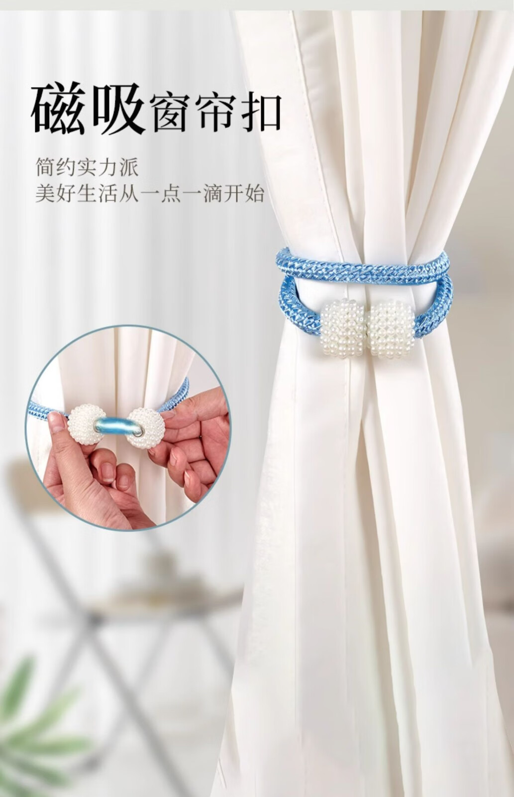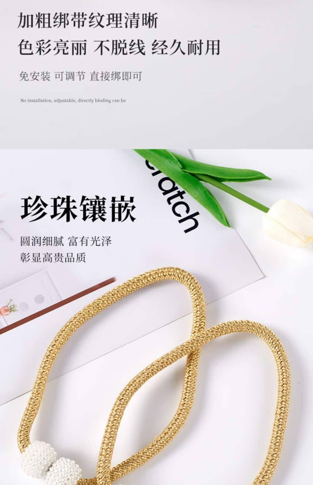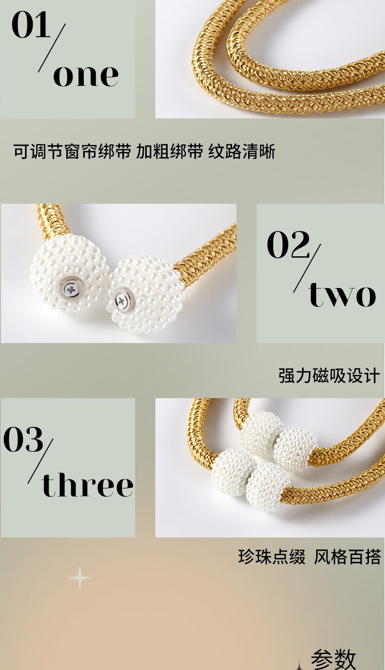 Curtain straps, one pair, ropes, curtain buckles, buckle straps, bed curtain storage ropes, magnetic pearls, no need to punch holes, curtain straps - Mijiu color, 1 pair, 2 pieces, no Specifications
