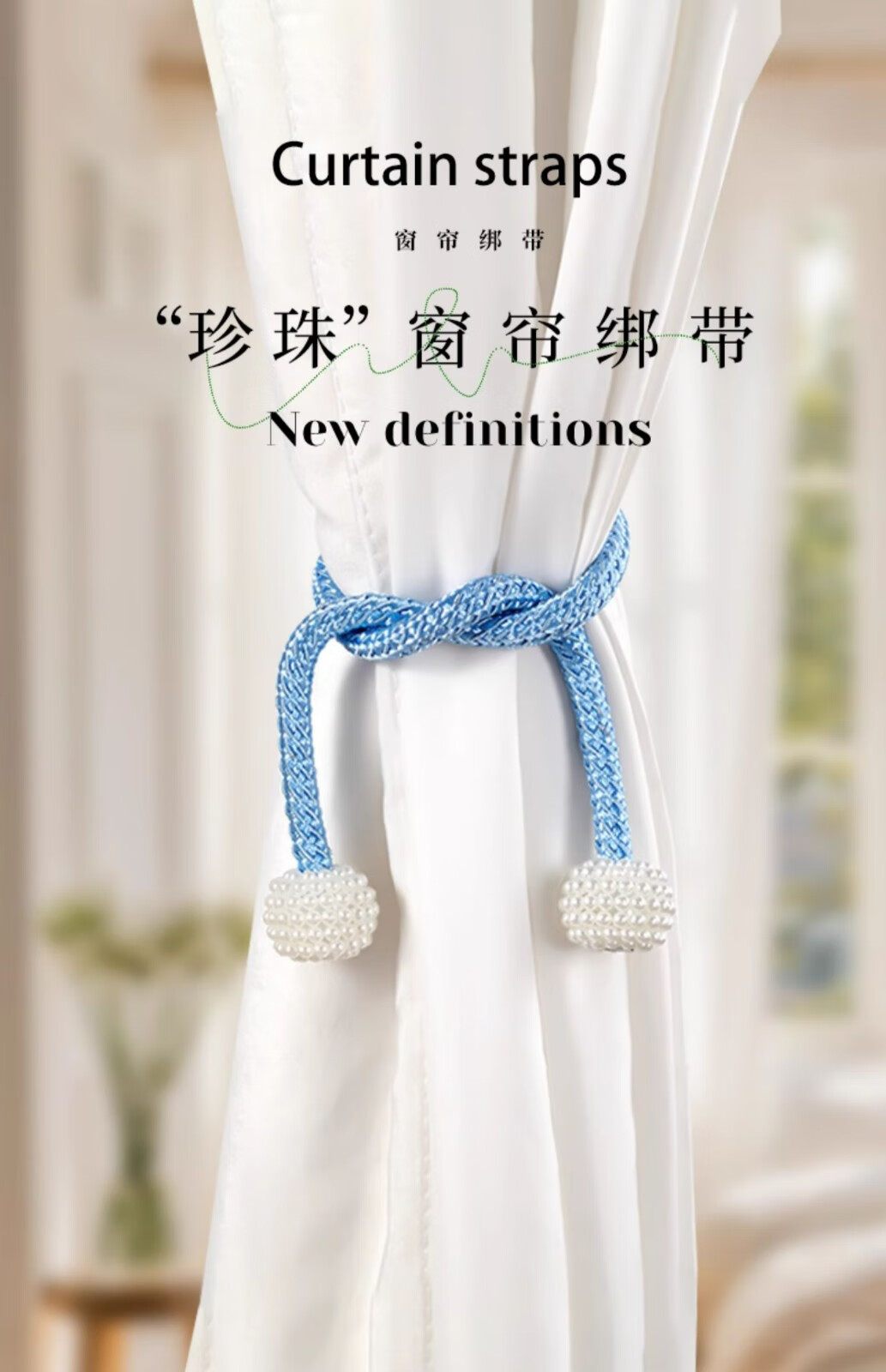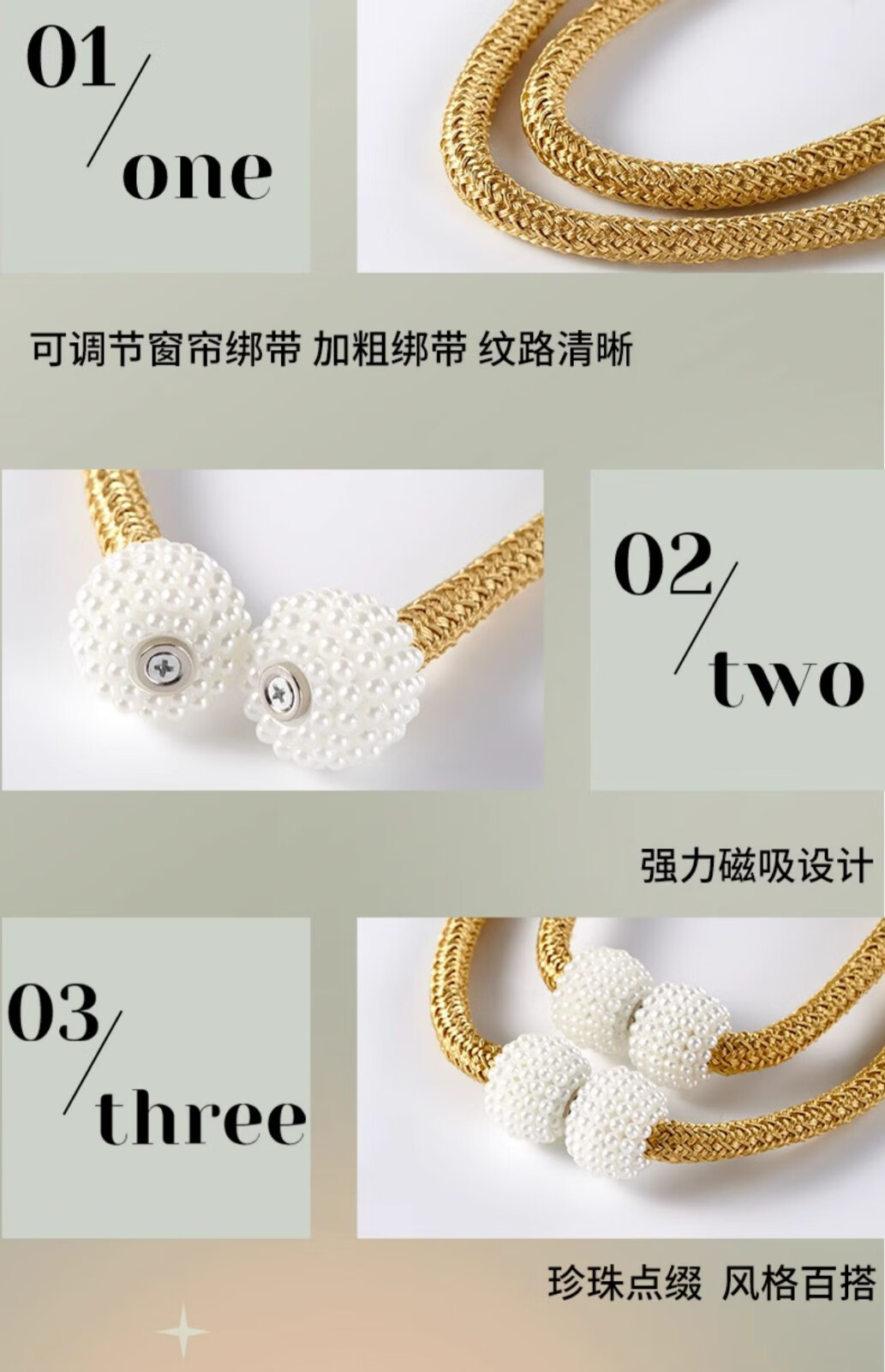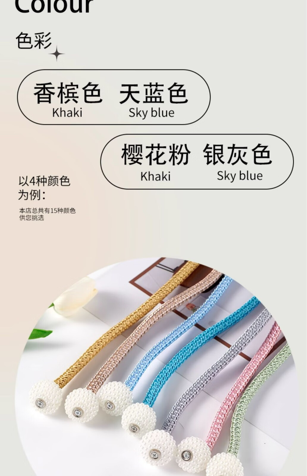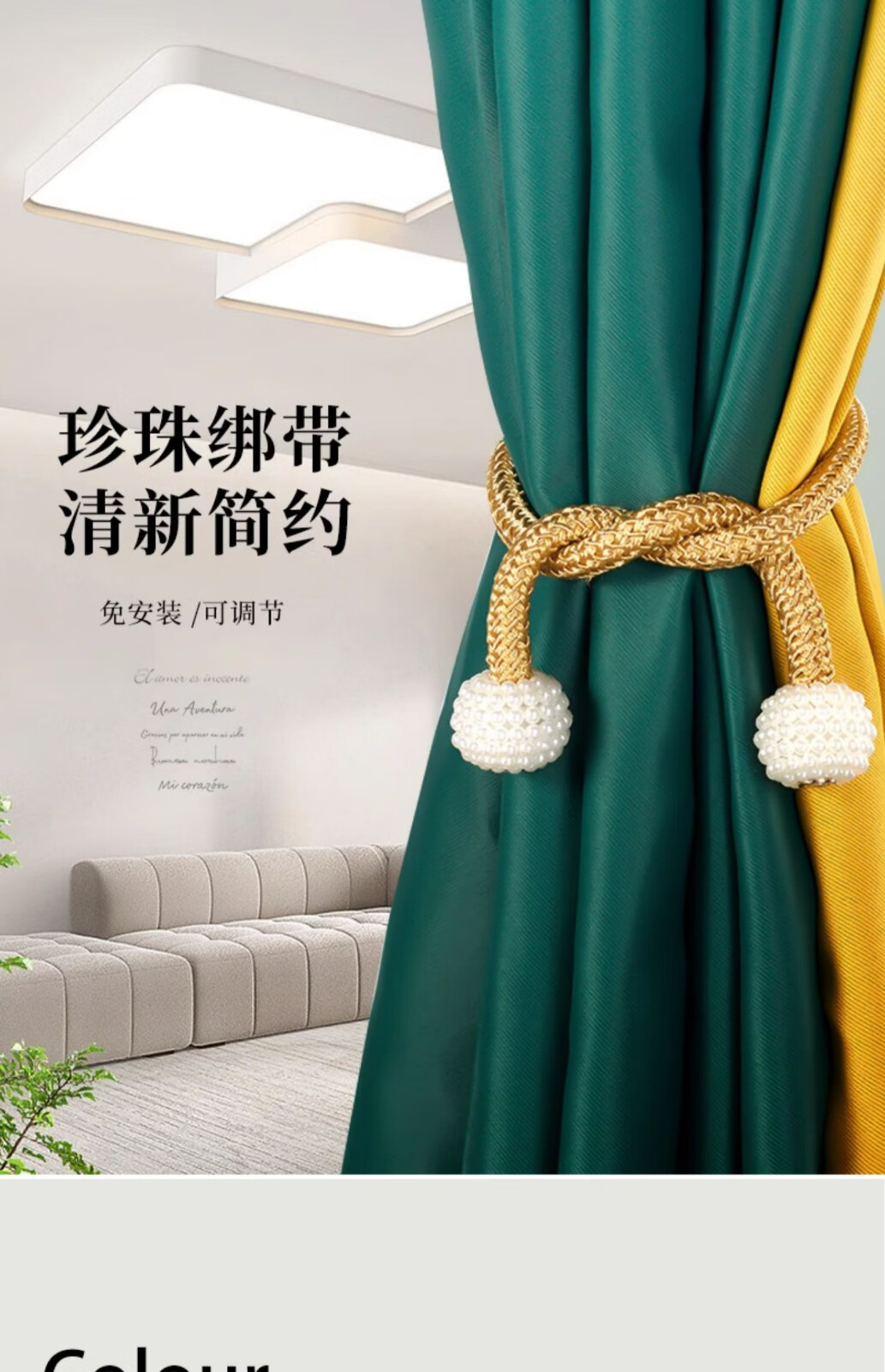 Curtain straps, one pair, ropes, curtain buckles, buckle straps, bed curtain storage ropes, magnetic pearls, no need to punch holes, curtain straps - Mijiu color, 1 pair, 2 pieces, no Specifications