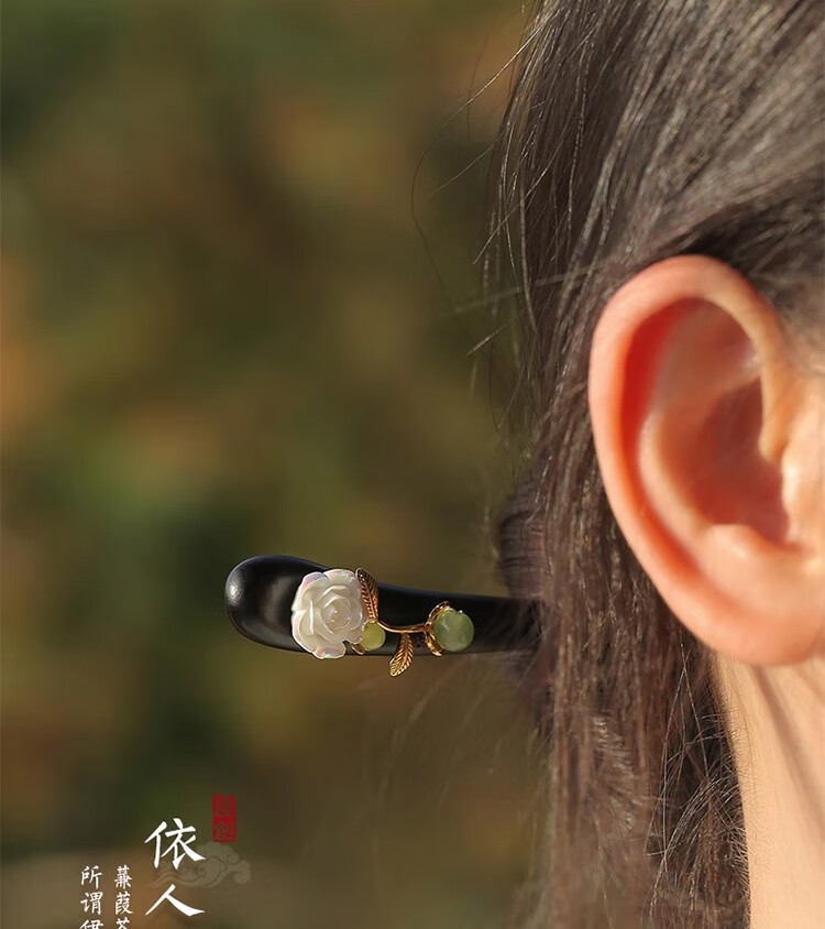 Two generations of happy hairpins, ancient style, new Chinese style rose step hairpins, high-end wooden hairpins, daily wooden hairpins for women, simple and modern
