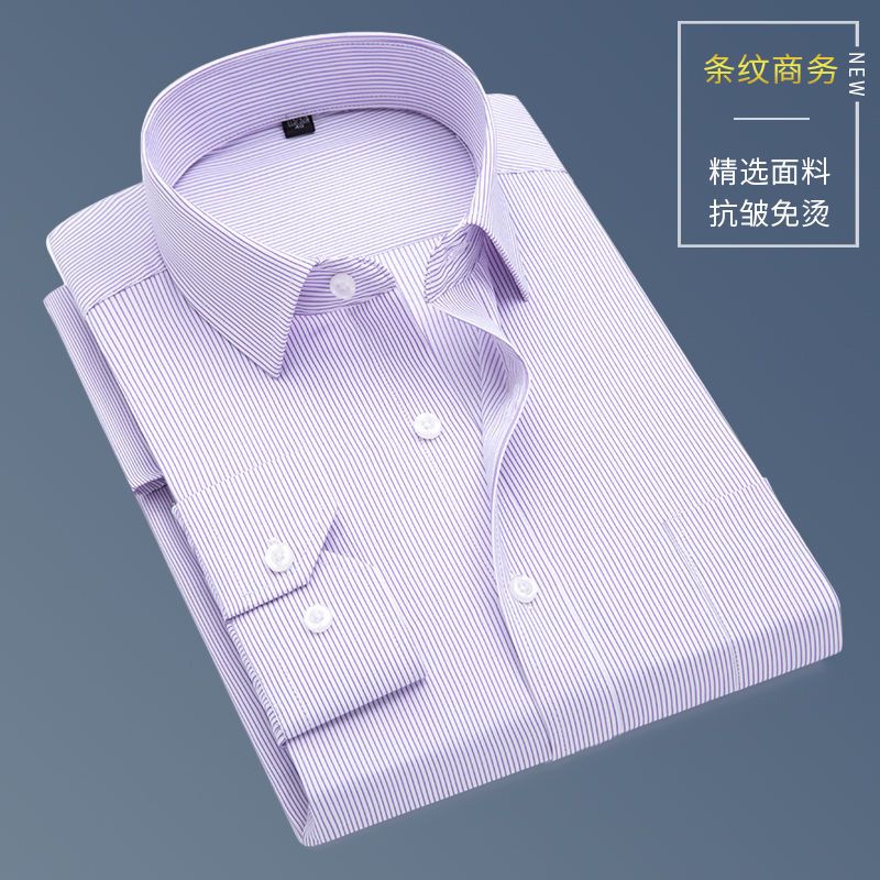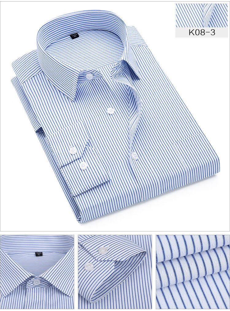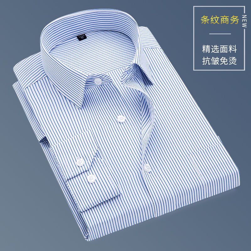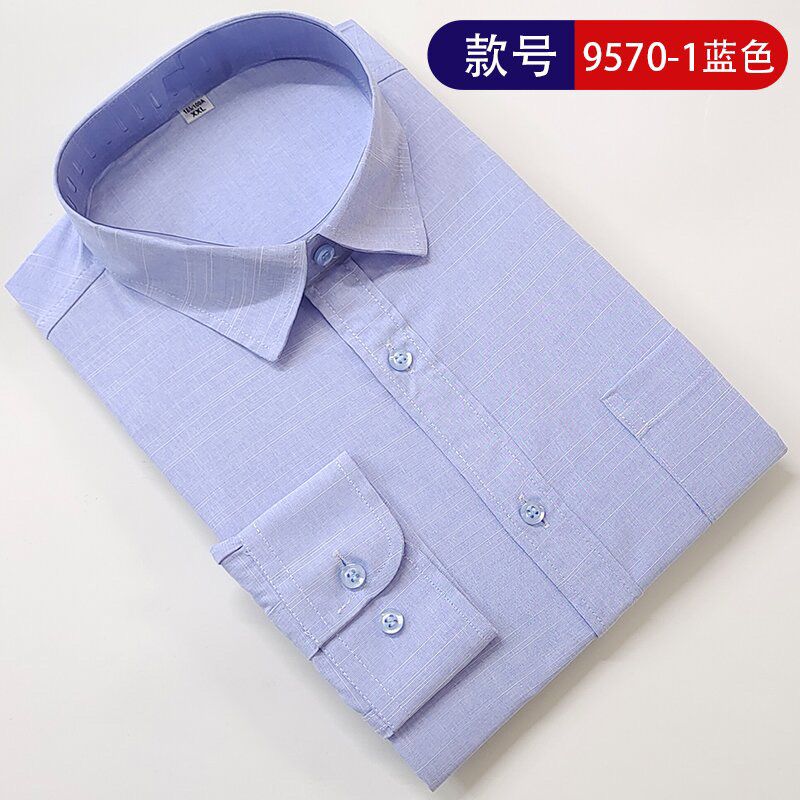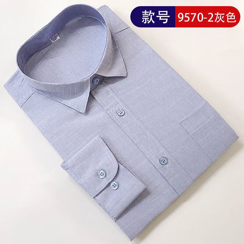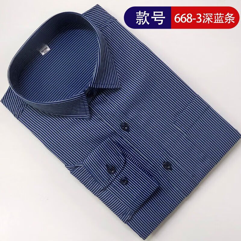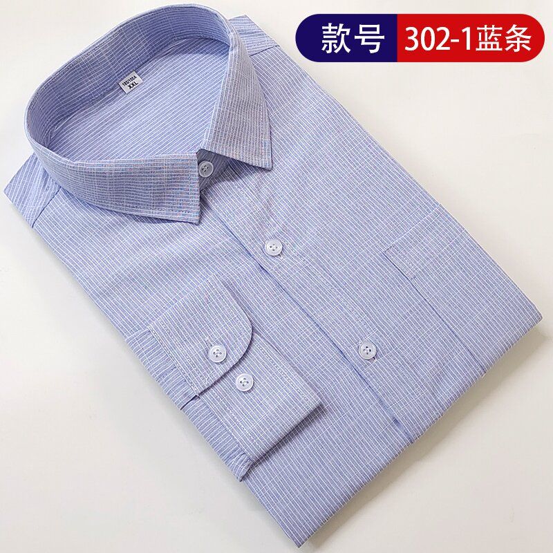 This international pure cotton middle-aged and elderly men's long-sleeved shirt striped dad style casual business non-iron loose shirt with pockets 6563 (668) blue strip 2XL-42 recommended 140-160Jin Jin is equal to 0.5 kg