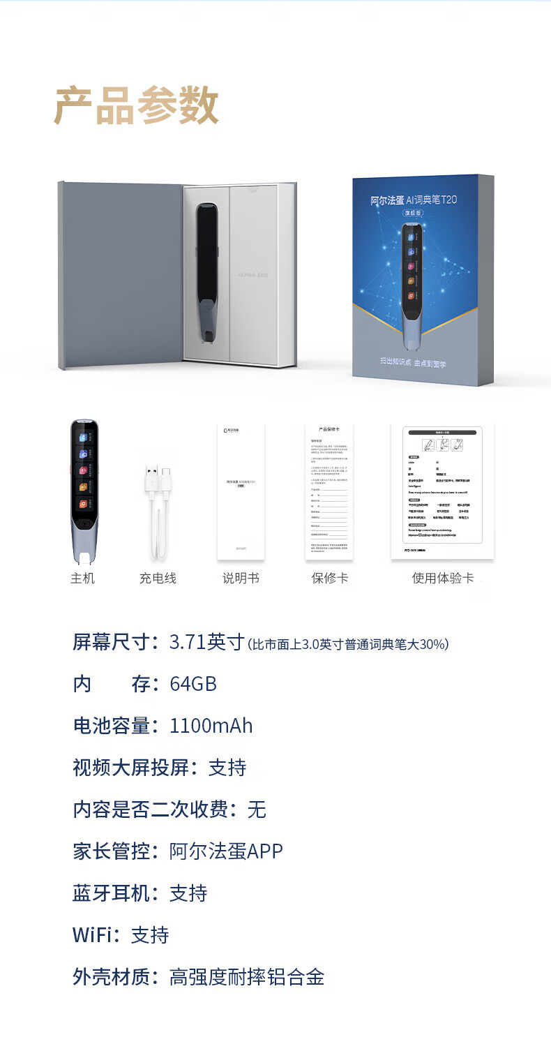 Alpha Egg Dictionary Pen T20/T10Pro Subsidy Instant Discount English Point Reading Pen Translation Pen Scanner Pen Electronic Dictionary Elementary School Junior High School High School Universal Scanning Learning Pen T20 Consultation Enjoy Subsidy Price 64GB