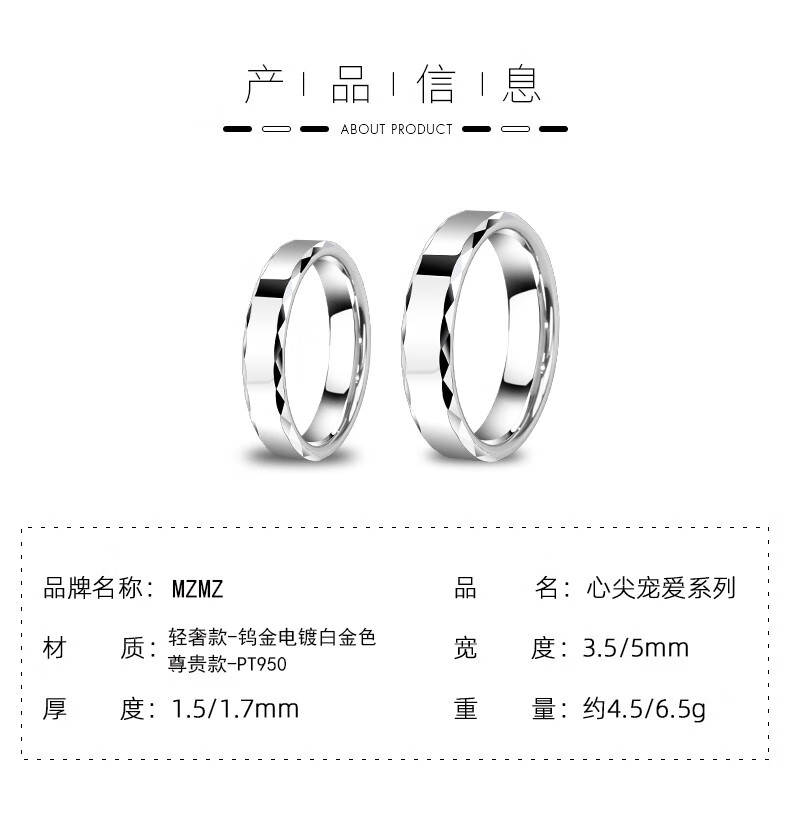 MZMZ platinum ring for men and women plain ring pt950 platinum fashion ring tail ring Valentine's Day birthday gift for girlfriend Light luxury men's ring width 5mm ring number remarks