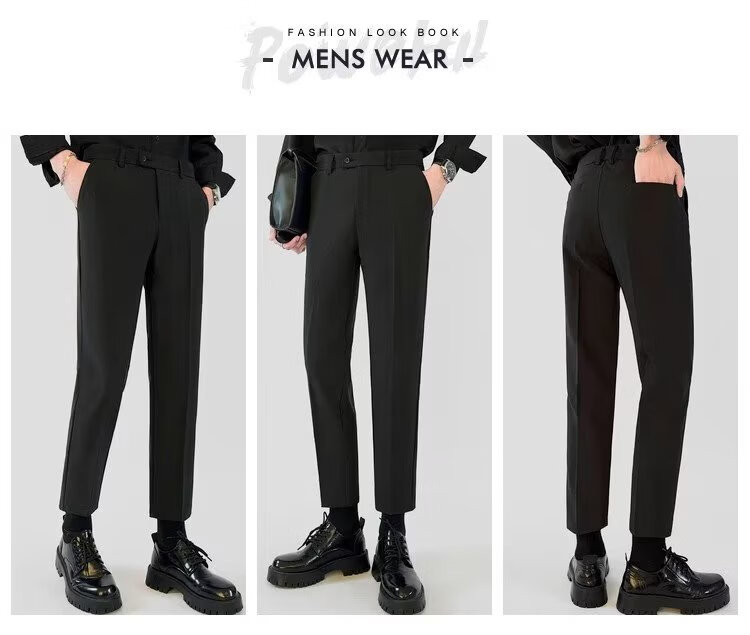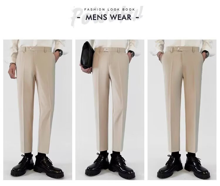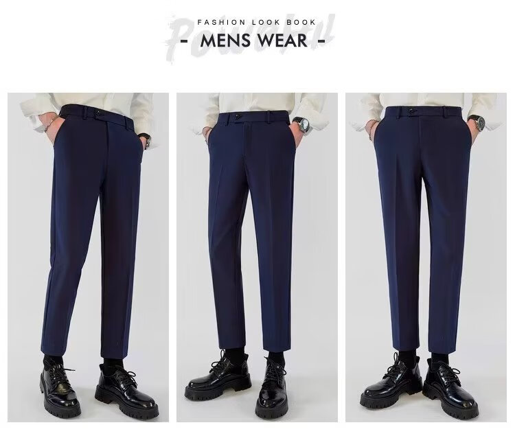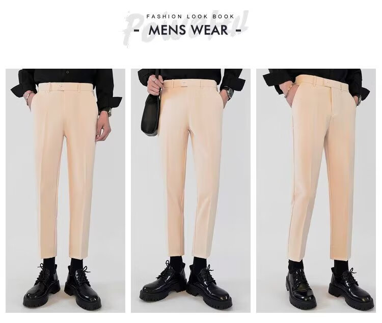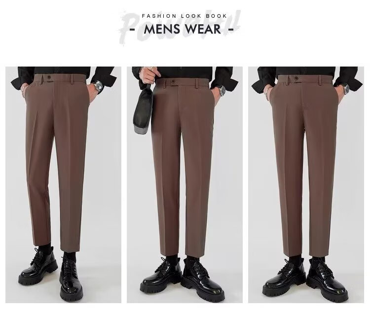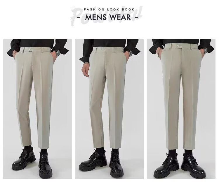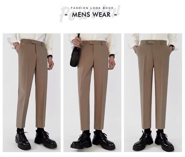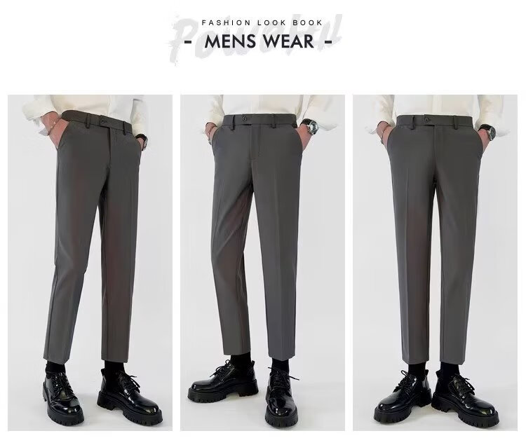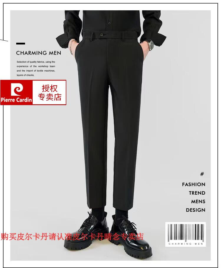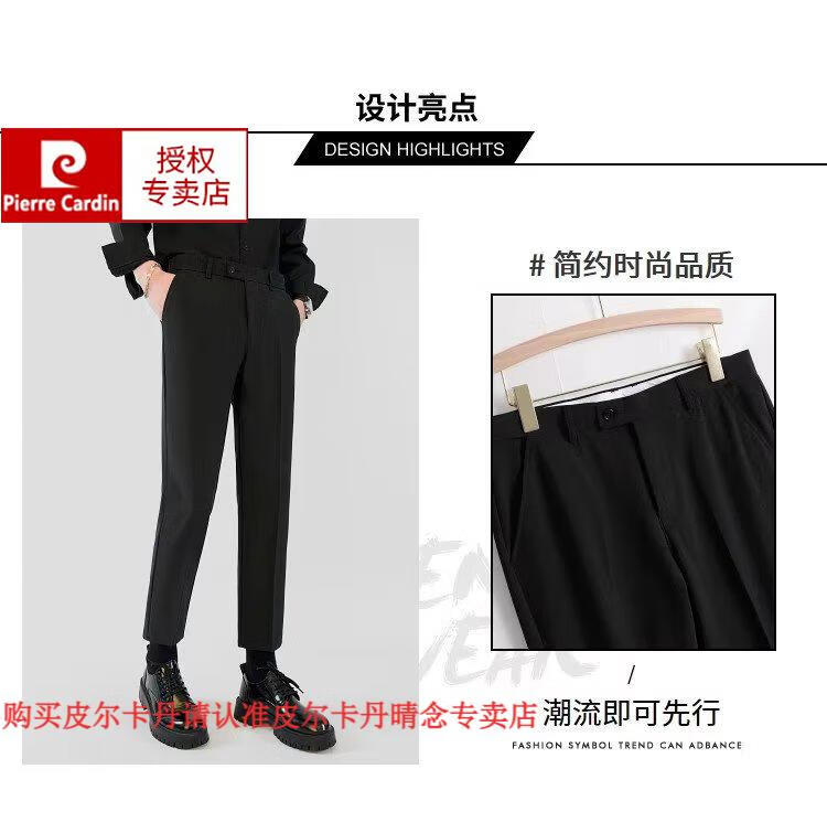 Pierre Cardin Korean Style Small Suit Pants Men's Nine-Point Slim Straight Thickened Casual Pants Men's Drapey Autumn and Winter Velvet Suit Pants Knitted Dark Gray (Style) Velvet 31
