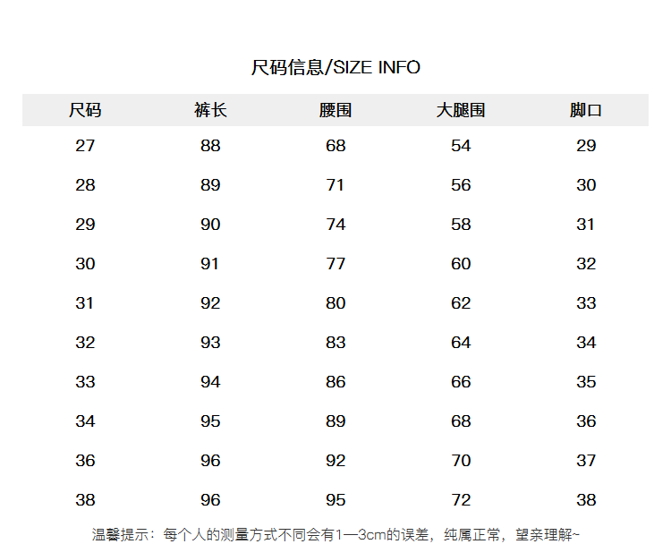 USA(inch) 28-30 30-32 32-34 34-38 38-42