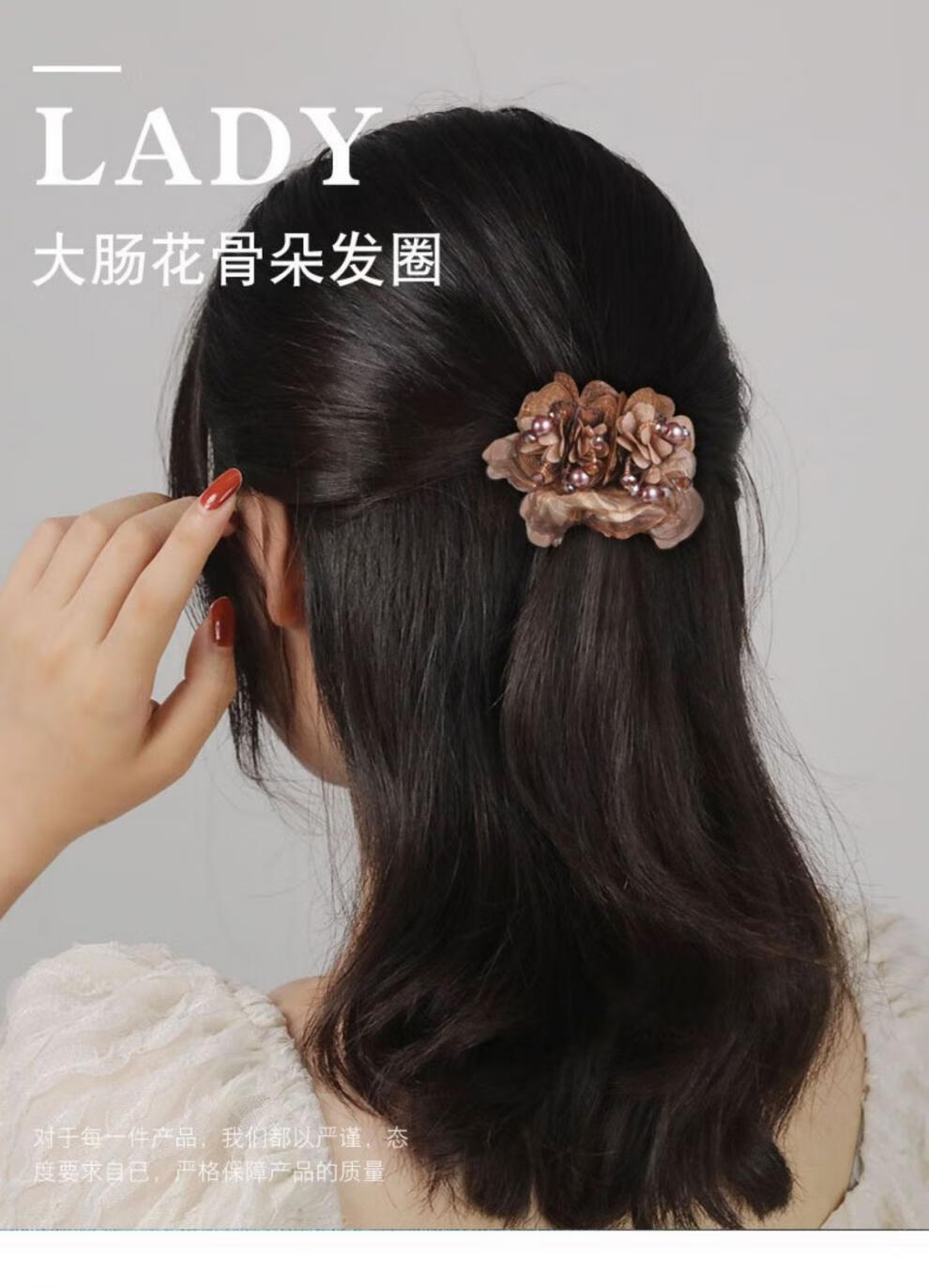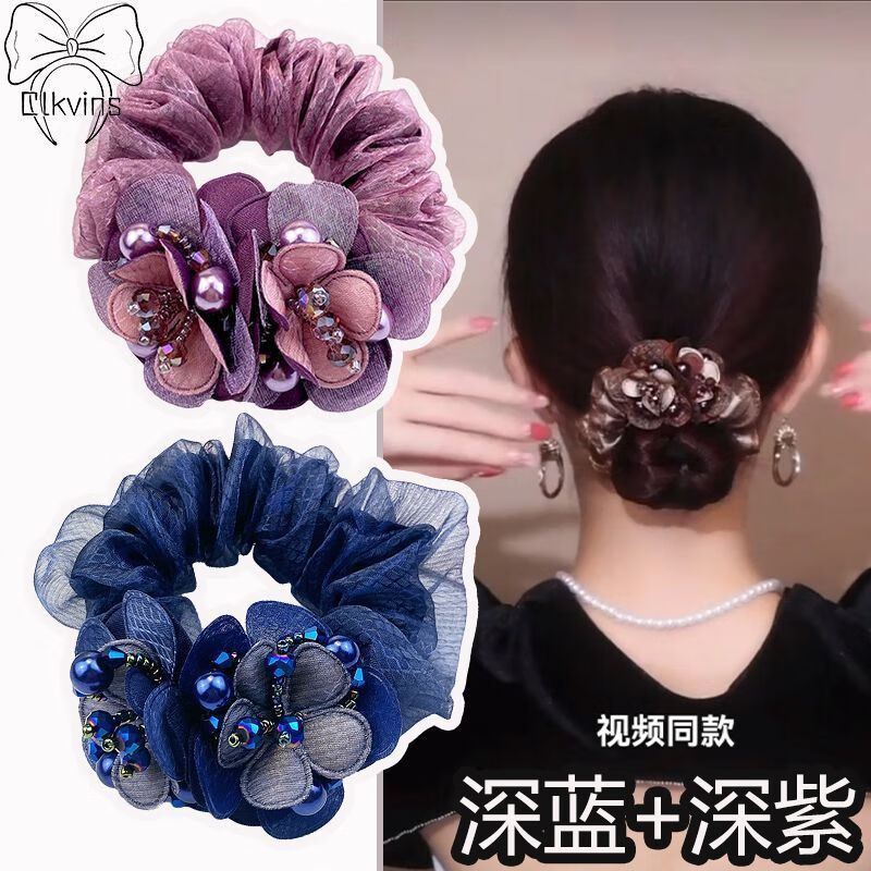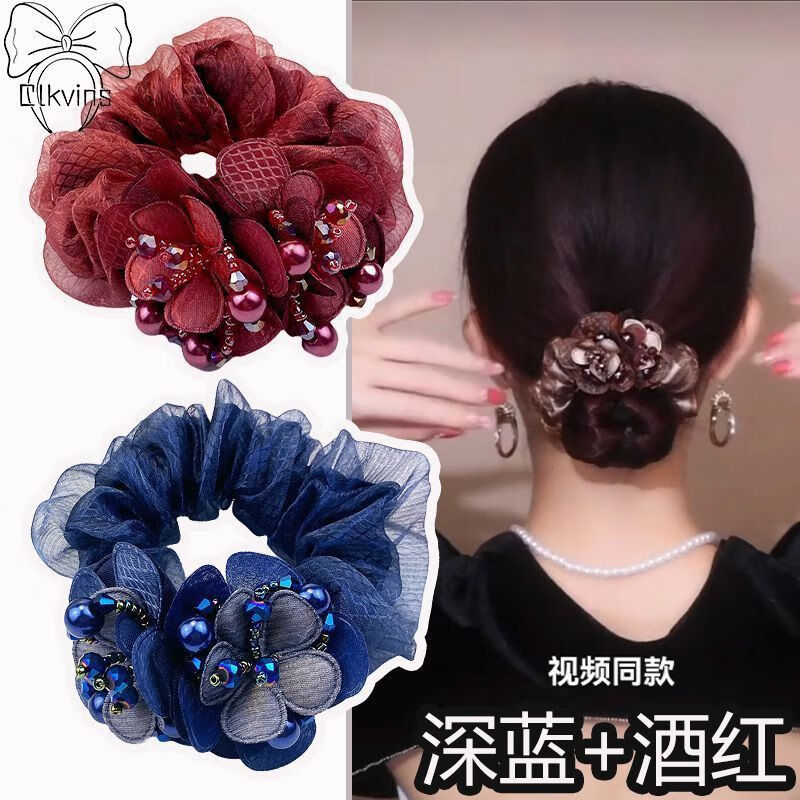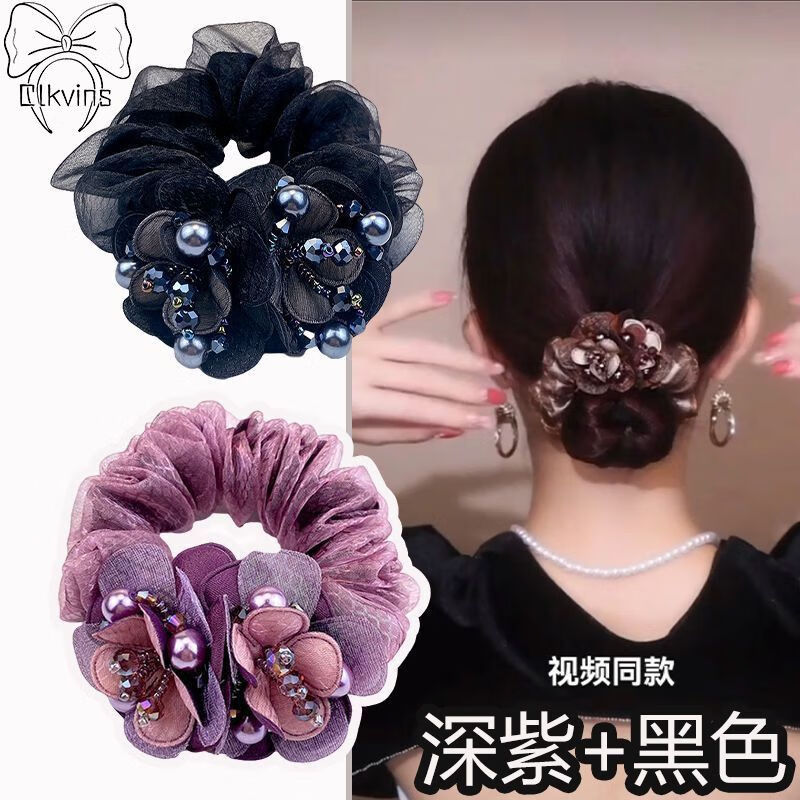 Dragon Girl Hair Ball Hair Ball Mom Hair Tie Temperament Hair Tie 2025 Internet Celebrity Hair Accessory Rubber Band for Women 2-piece Set Dark Coffee + Black