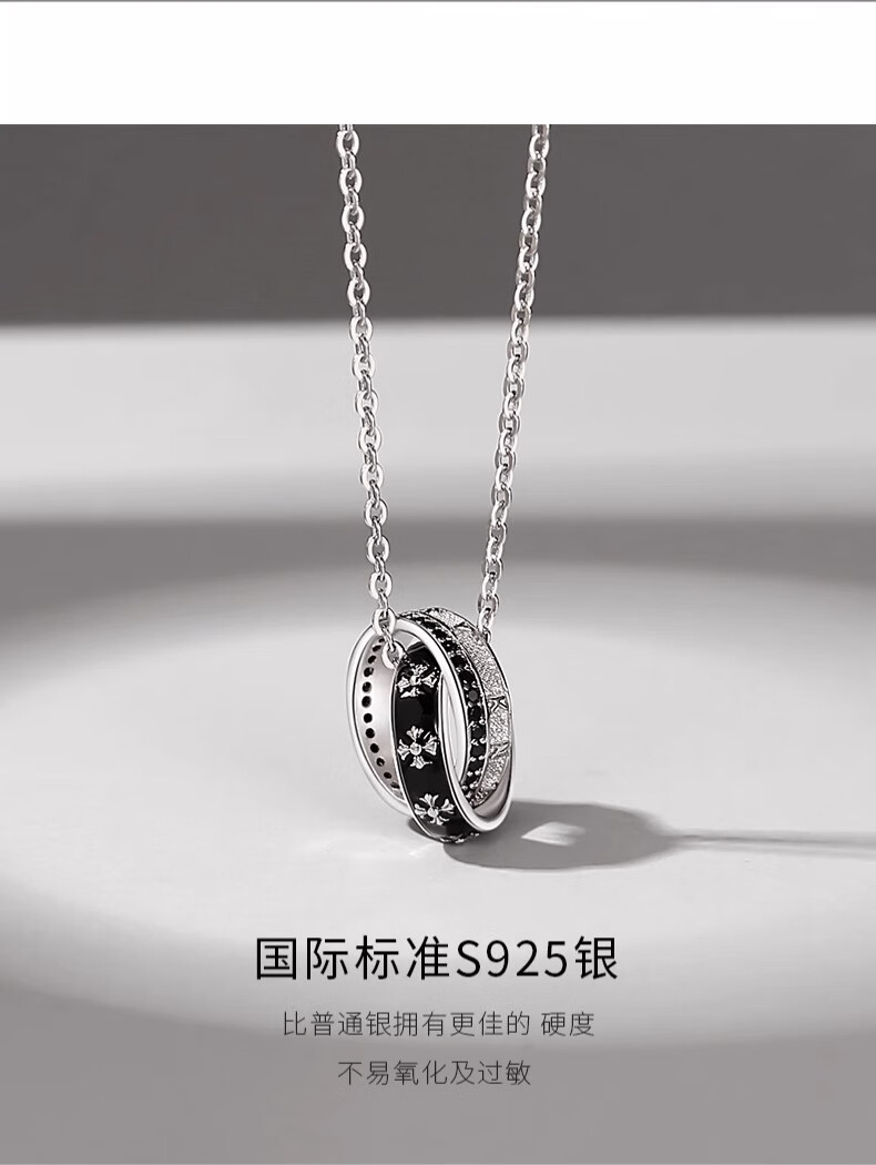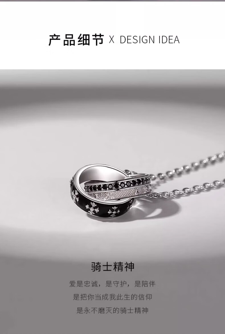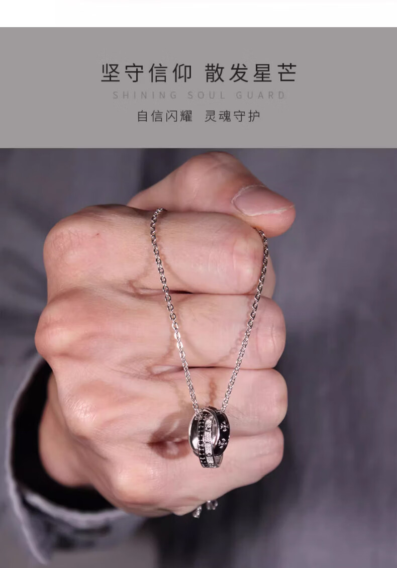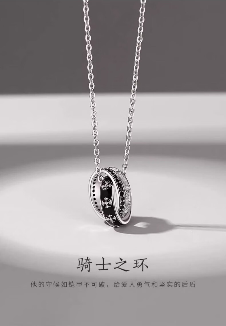 CHINA GOLD Knight's Ring Necklace Sterling Silver Men's Trendy Design New Valentine's Day Birthday Gift for Boyfriend and Husband Select Knight's Ring Necklace-s925 Brand Gift Box