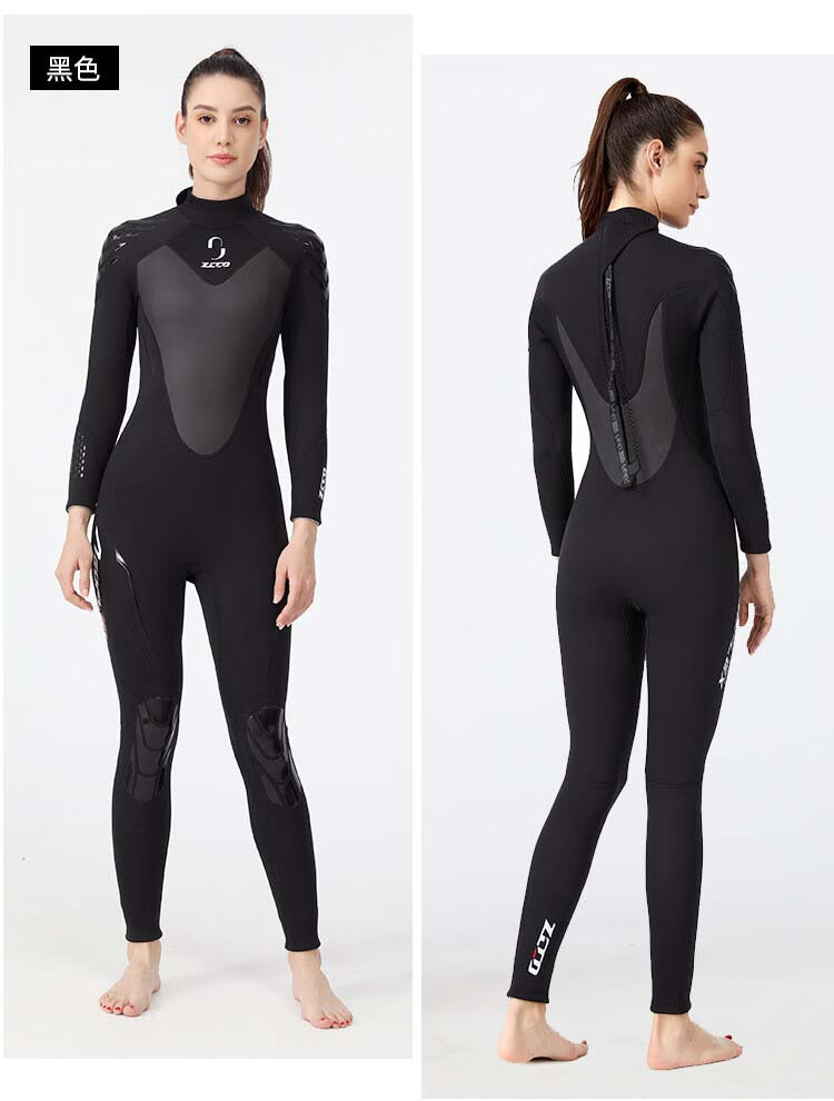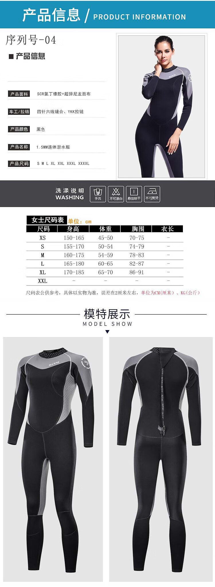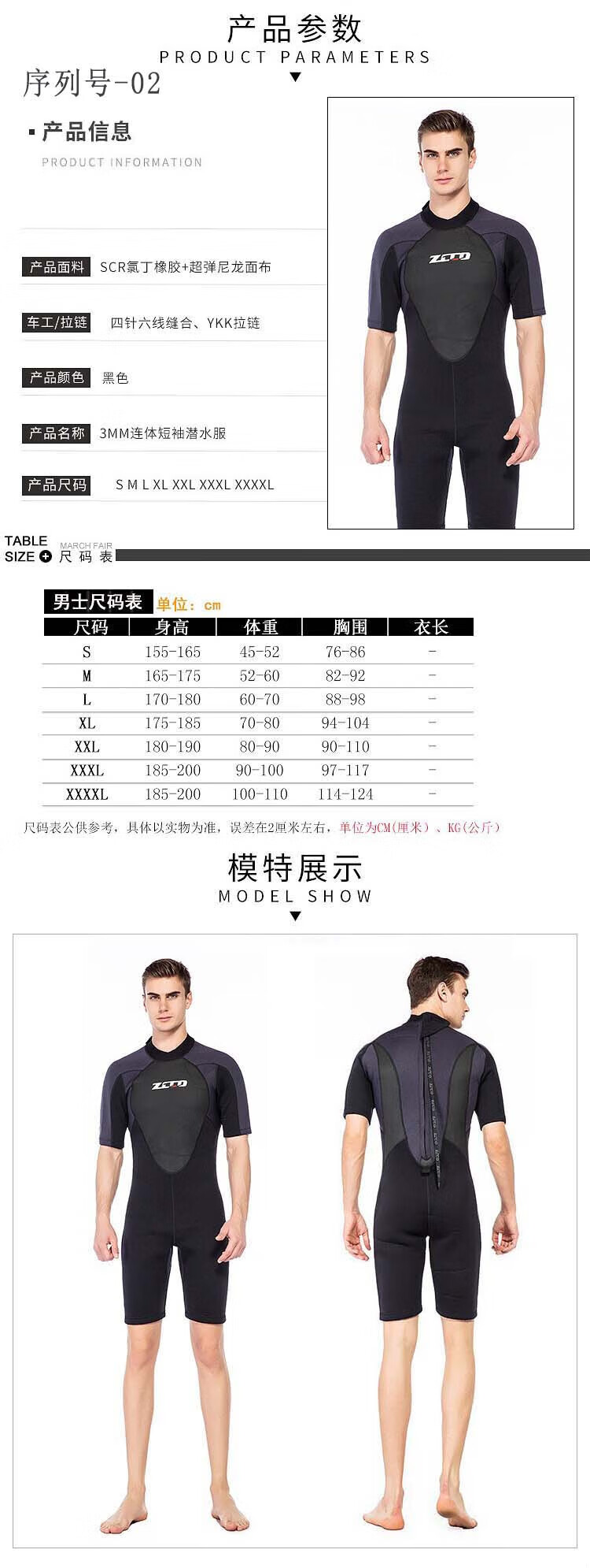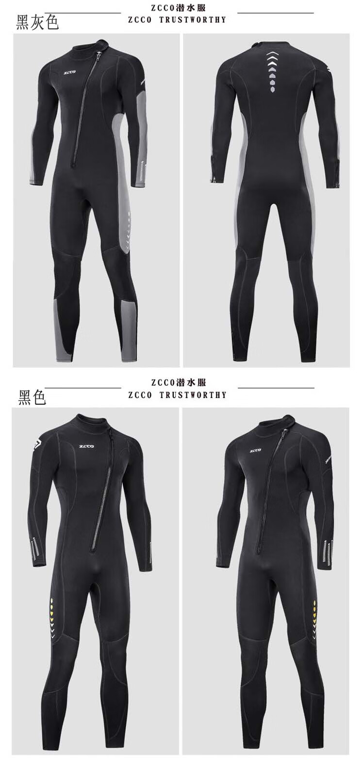 Chuangjingyixuan High-end light luxury 1.5/3mm one-piece wetsuit for men, warm swimsuit for women, long-sleeved cold-proof snorkeling wetsuit 1 Men's short 1.5mm black gray/back zipper S