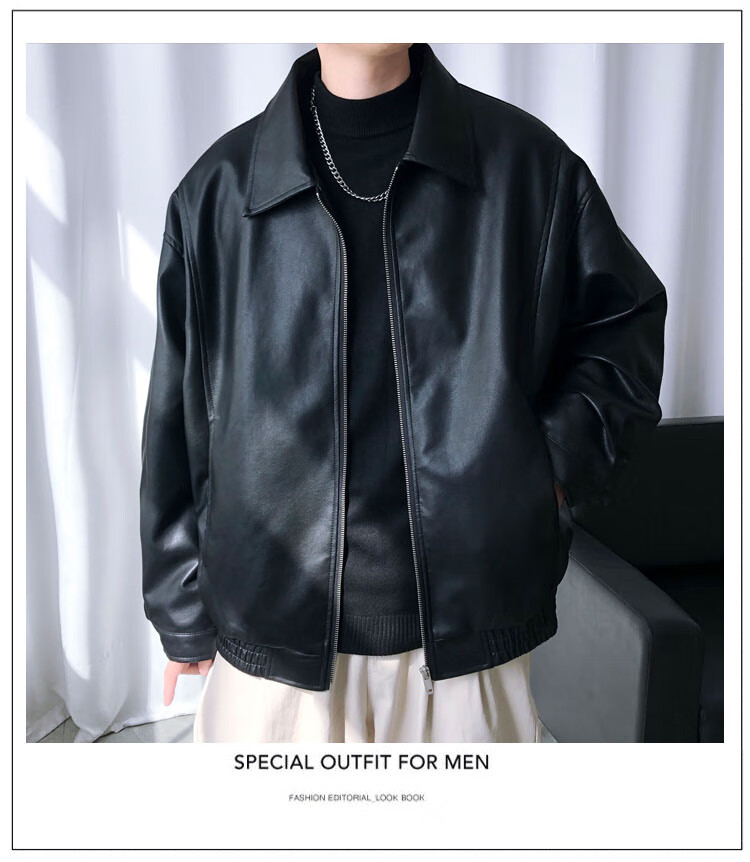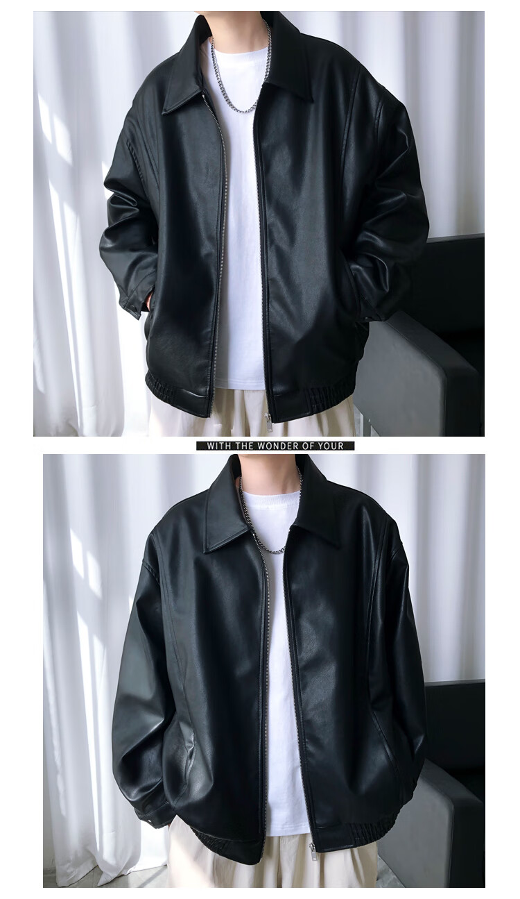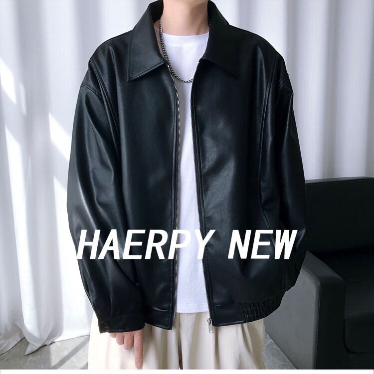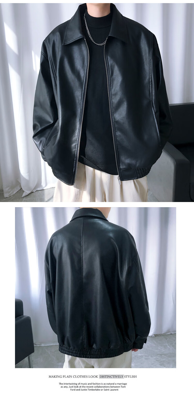 Yuhun American Retro Leather Jacket Coat Men's Loose PU Leather Jacket Boys Jacket Spring and Autumn Hong Kong Style Trendy Handsome Motorcycle Jacket Black Velvet L Loose Version 125-140Jin Jin is equal to 0.5 kg