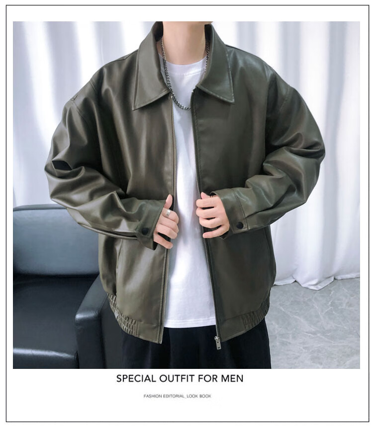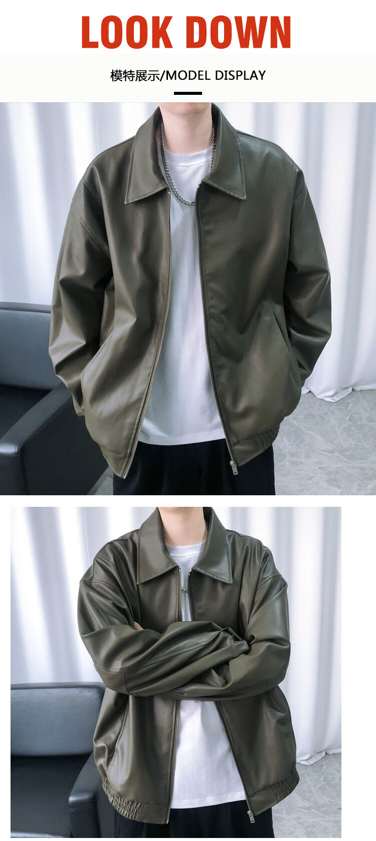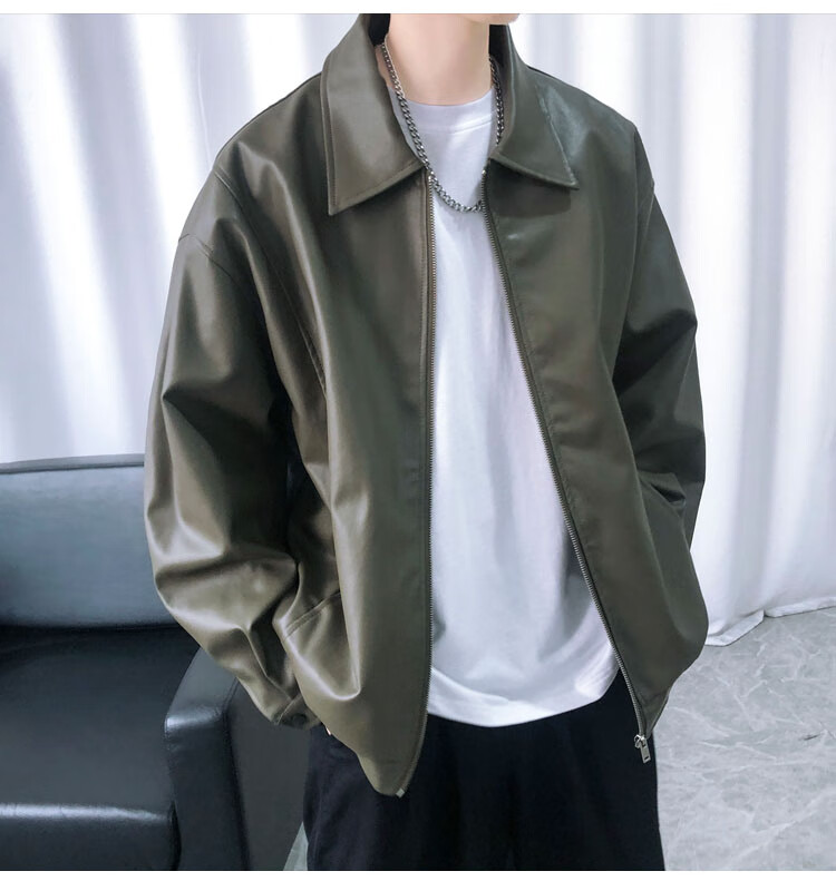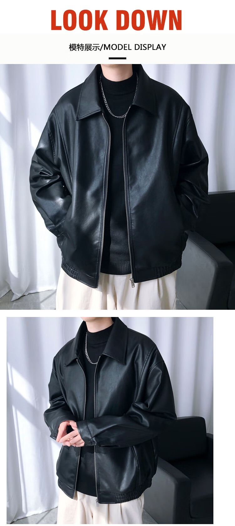 Yuhun American Retro Leather Jacket Coat Men's Loose PU Leather Jacket Boys Jacket Spring and Autumn Hong Kong Style Trendy Handsome Motorcycle Jacket Black Velvet L Loose Version 125-140Jin Jin is equal to 0.5 kg