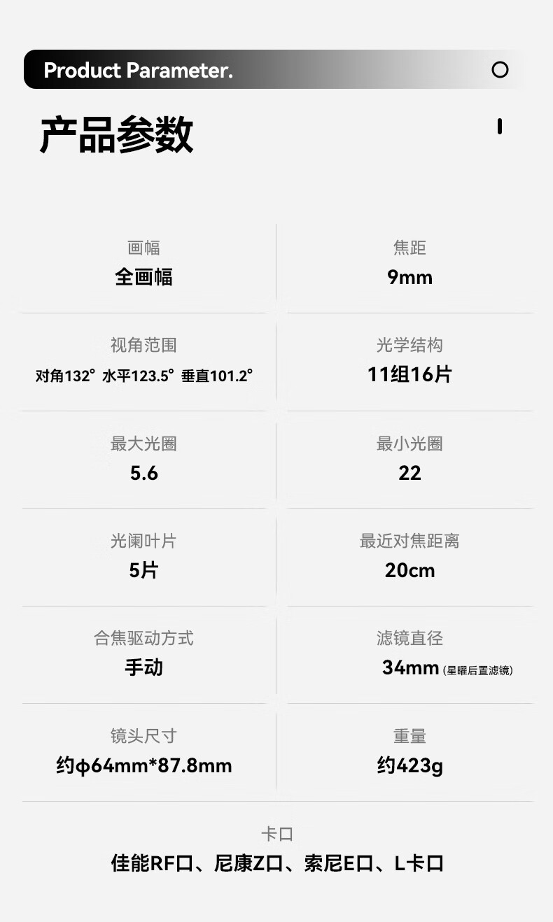 Xingyao Optical Xingyao 9mm F5.6 full-frame ultra-wide-angle lens scenery building interior space Xingyao 956 is suitable for Sony E Nikon Z Canon RF port official standard lens + rear ND1000 Sony E mount