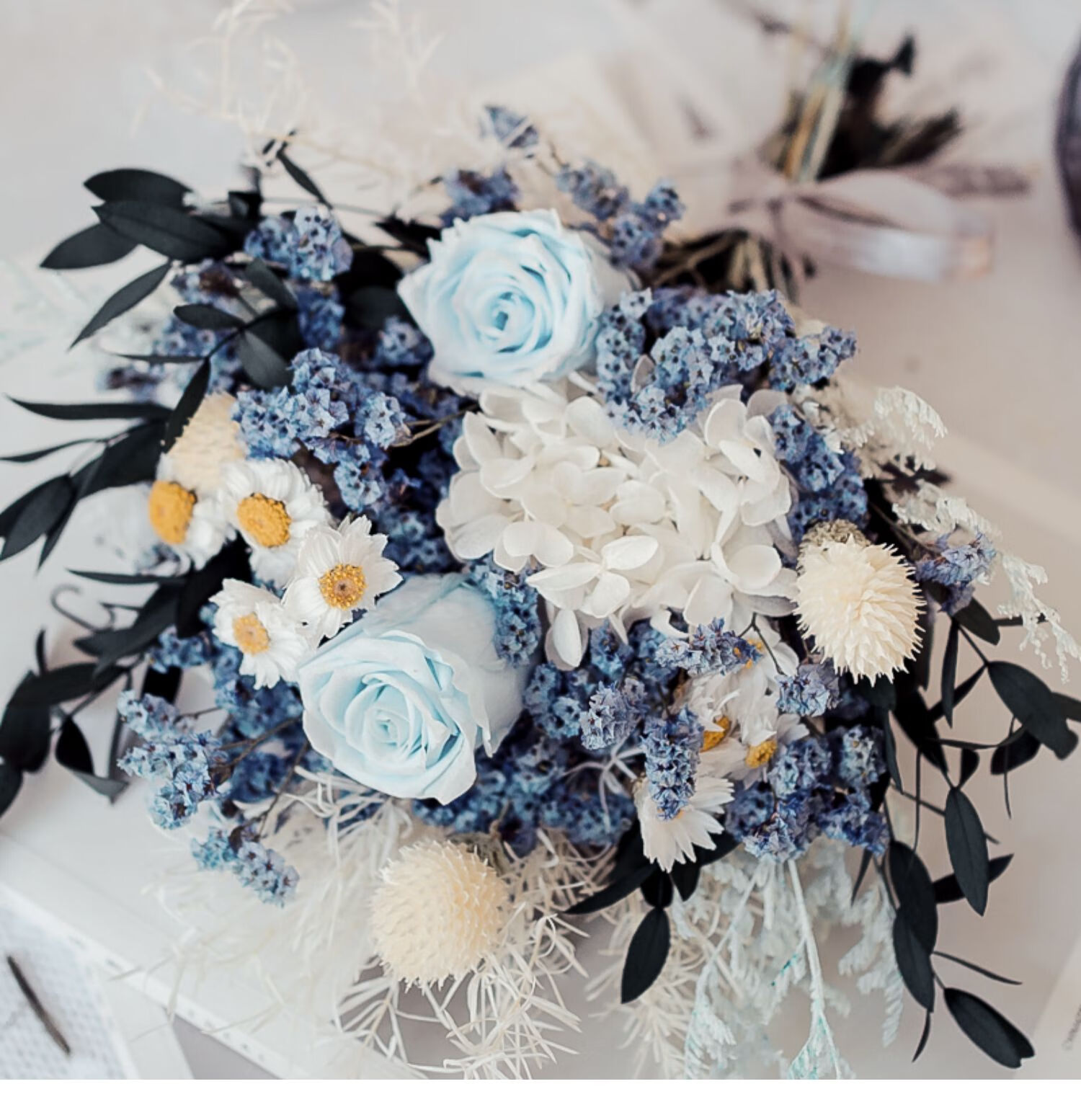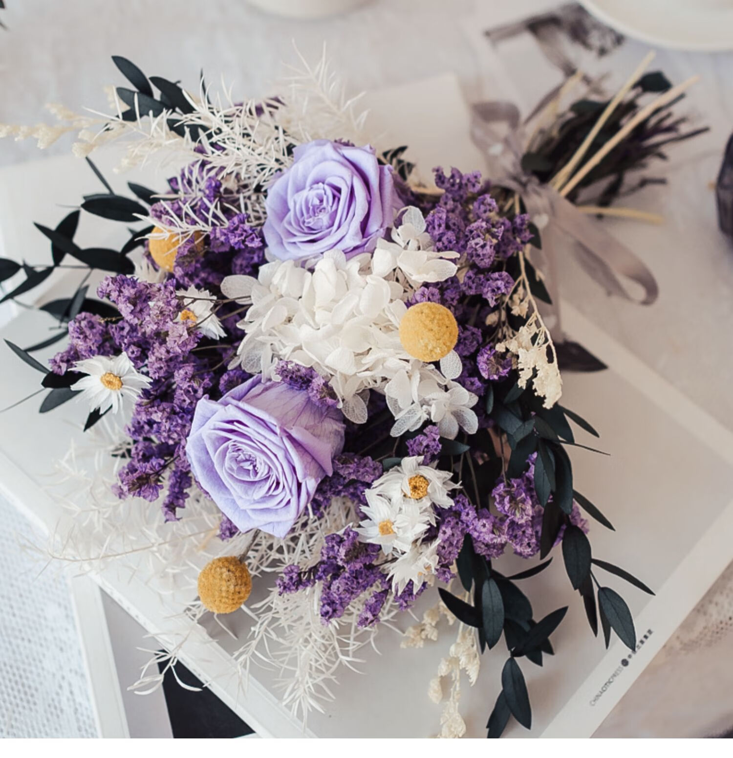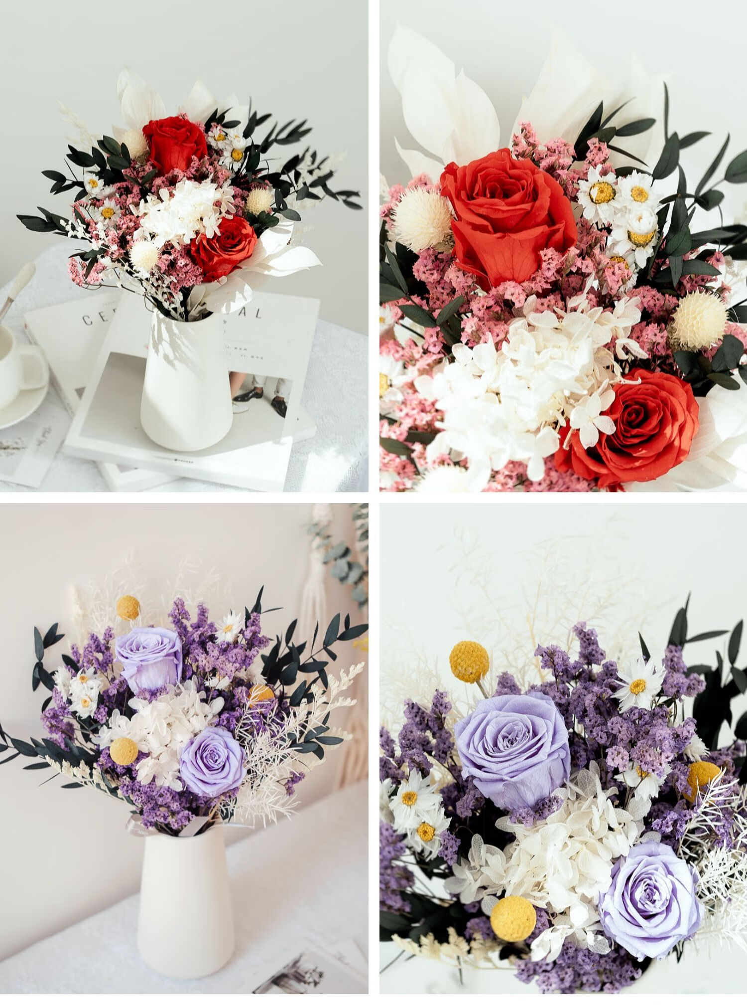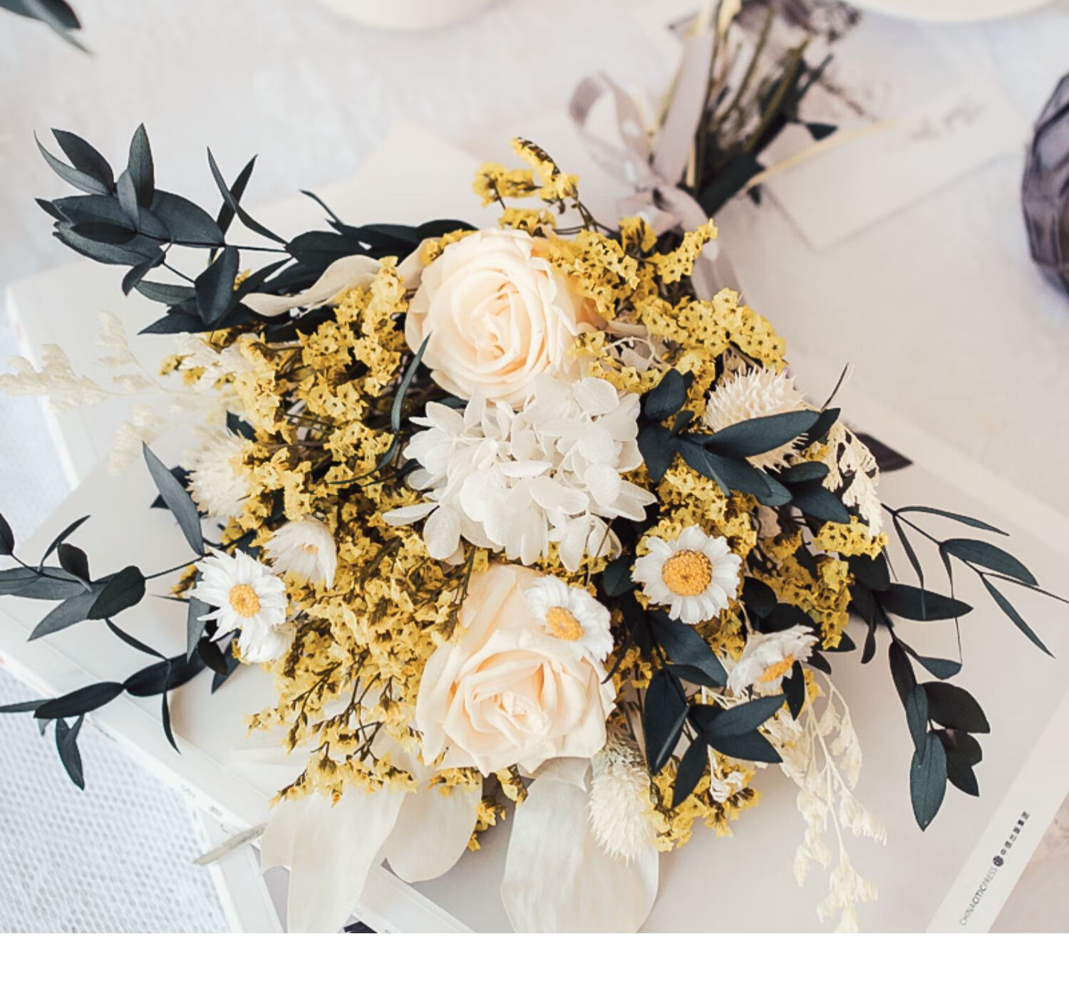 Everlasting rose eucalyptus dried flower bouquet internet celebrity ornaments real flower gypsophila hydrangea crystal grass home decoration pink rose crystal bouquet round white bottle dry branches