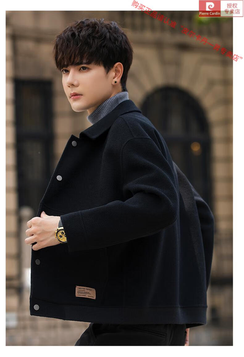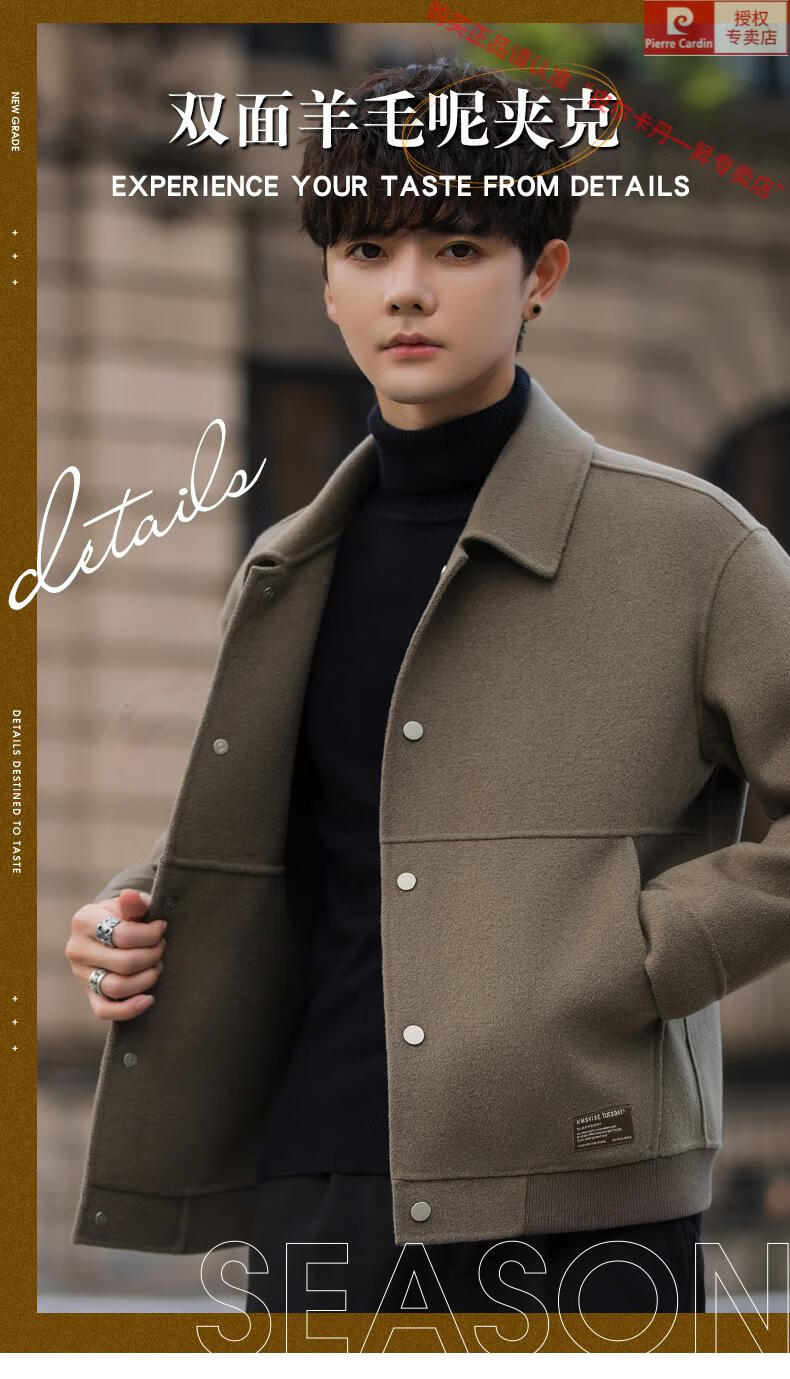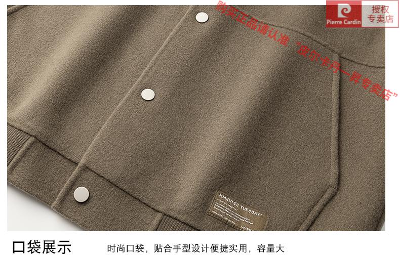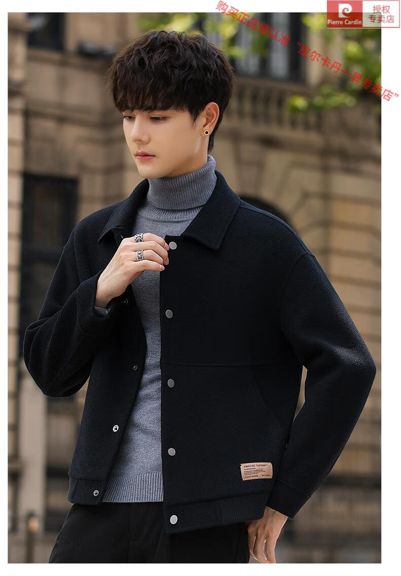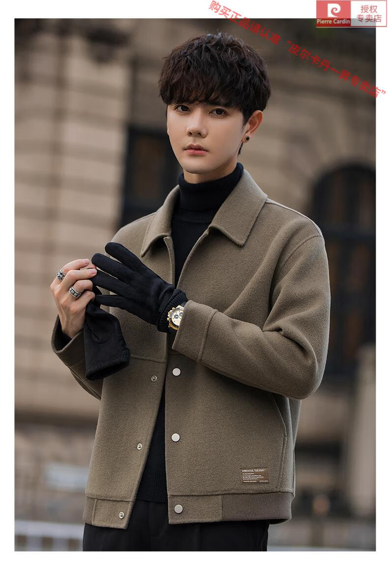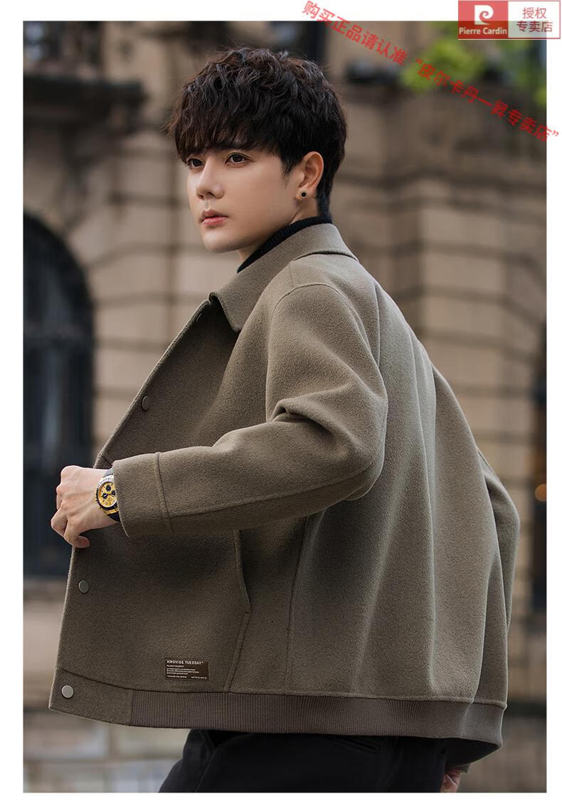 Pierre Cardin Wool Jacket Men's Woolen Coat Short Korean Style Spring and Autumn 2025 New Double-sided Nylon Jacket Men's Gray Green S Weight 110Jin Jin is equal to 0.5 kg or less