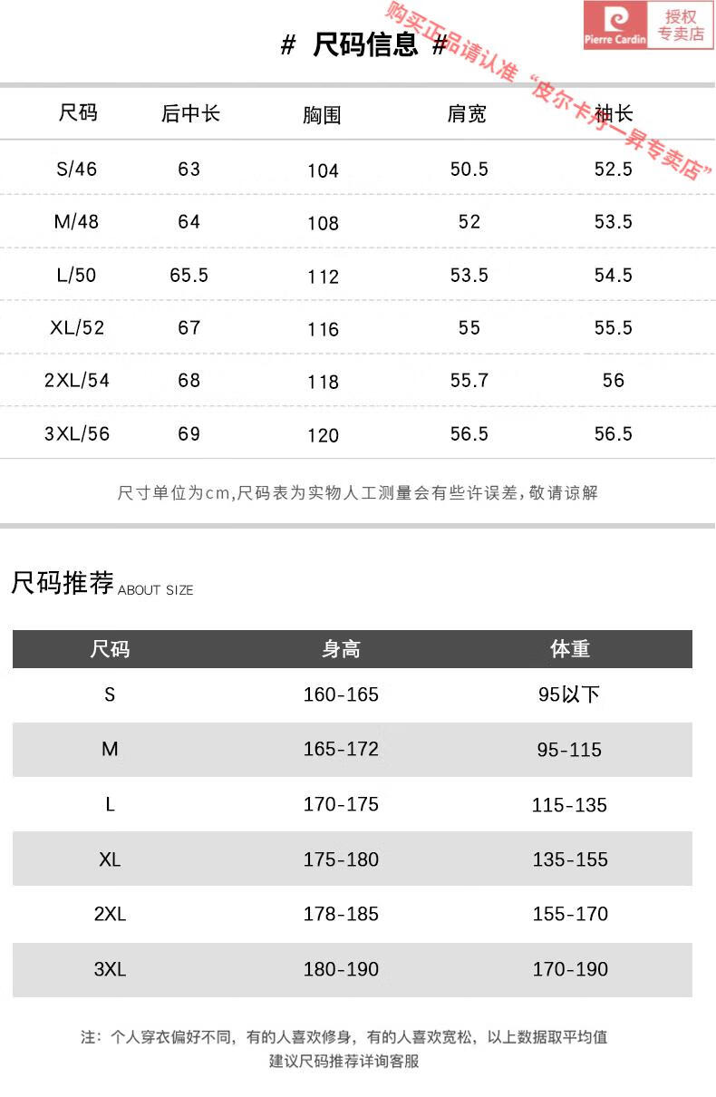 China (cm) 165 / 88-90 170 / 96-98 175 / 108-110 180 / 118-122 185 / 126-130