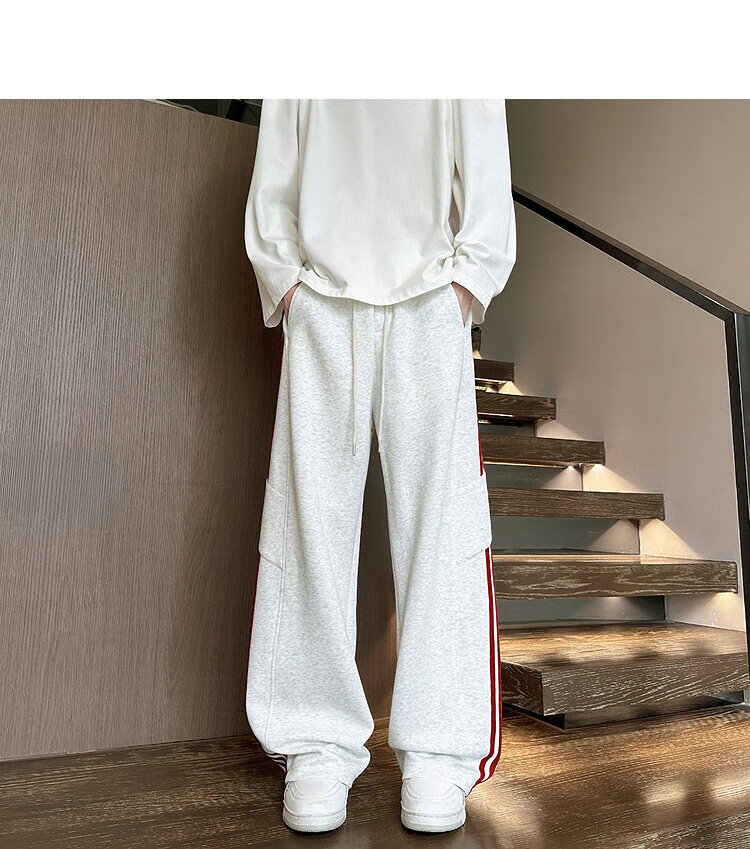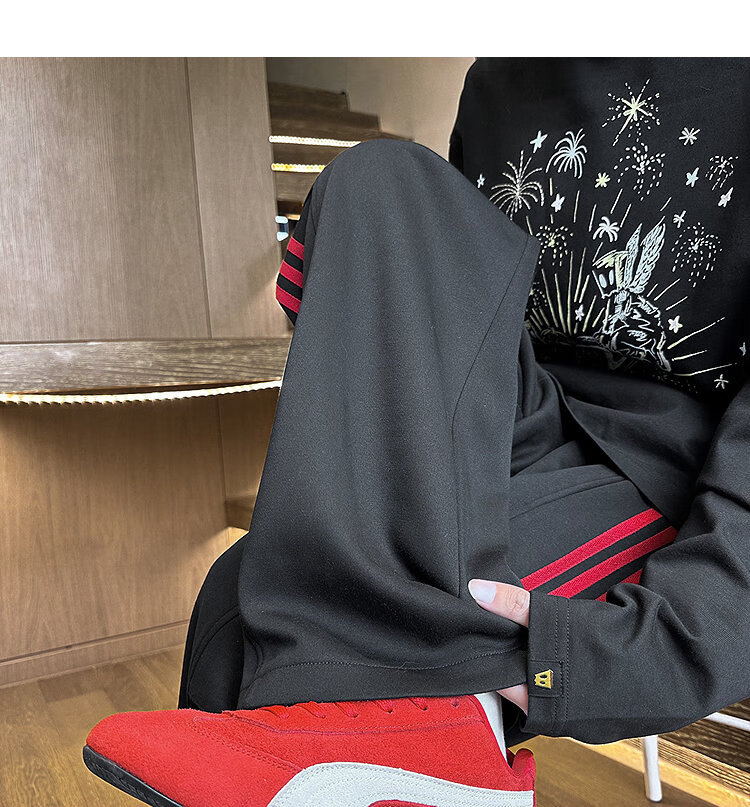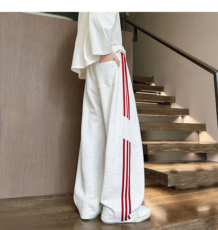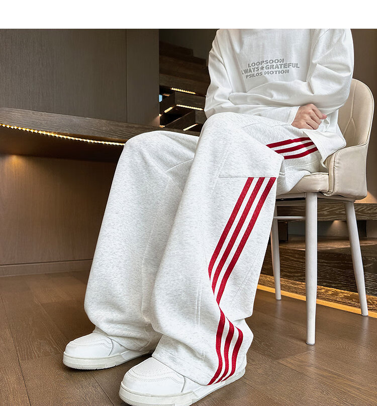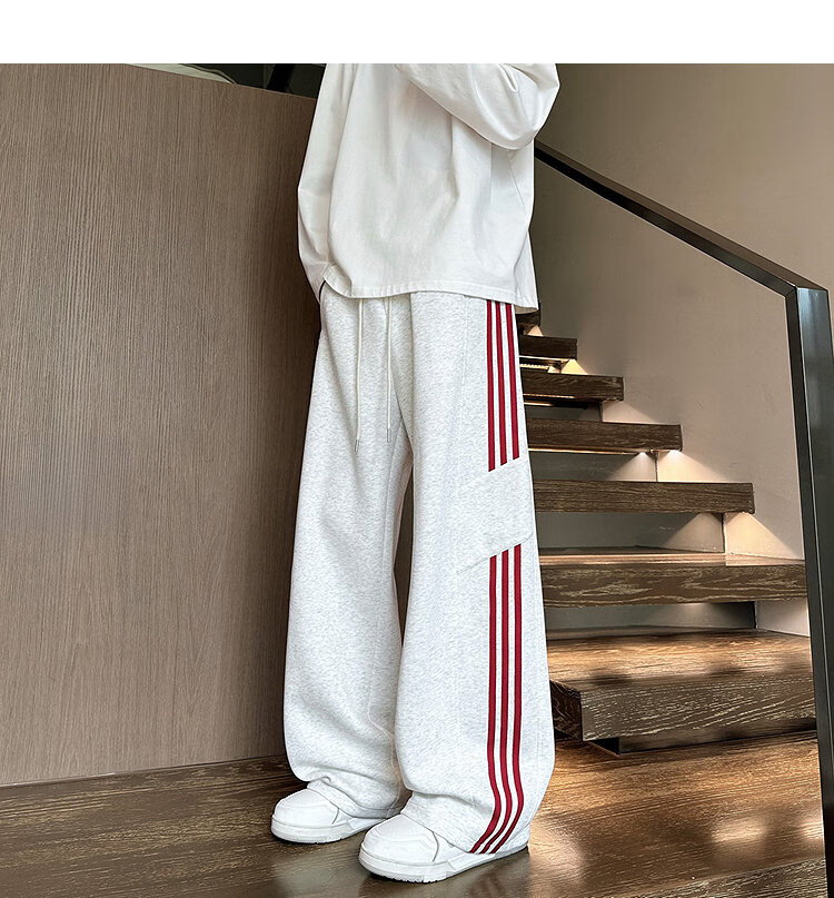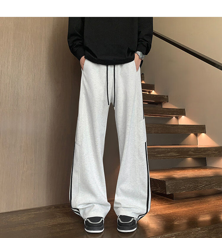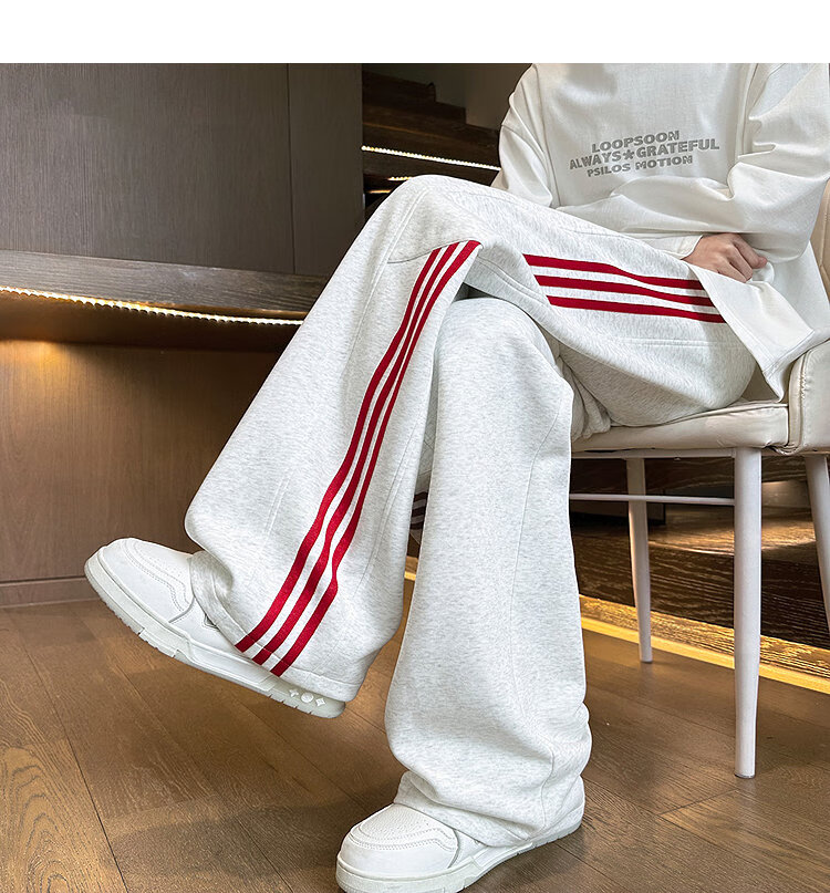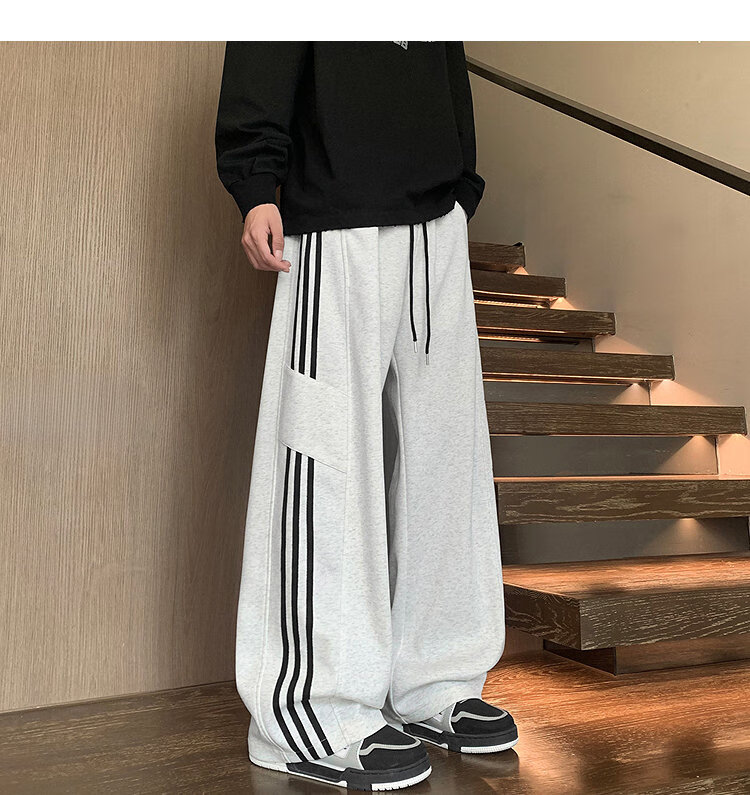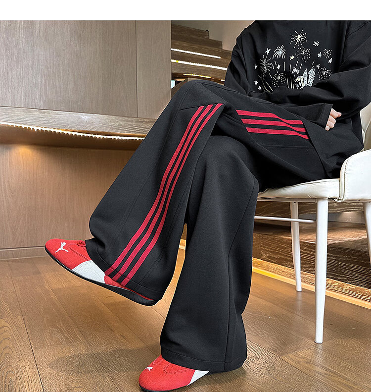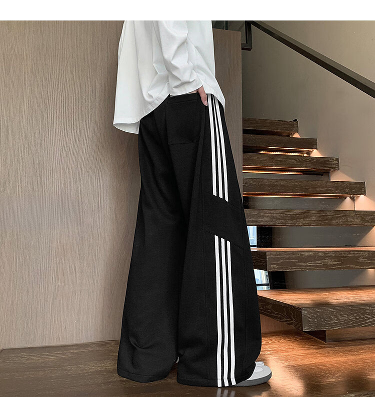 Du Xiaoxian American heavyweight three-stripe casual pants men's autumn new floor-length wide-leg pants loose straight sports pants black XL recommended 120-140Jin Jin equals 0.5 kg