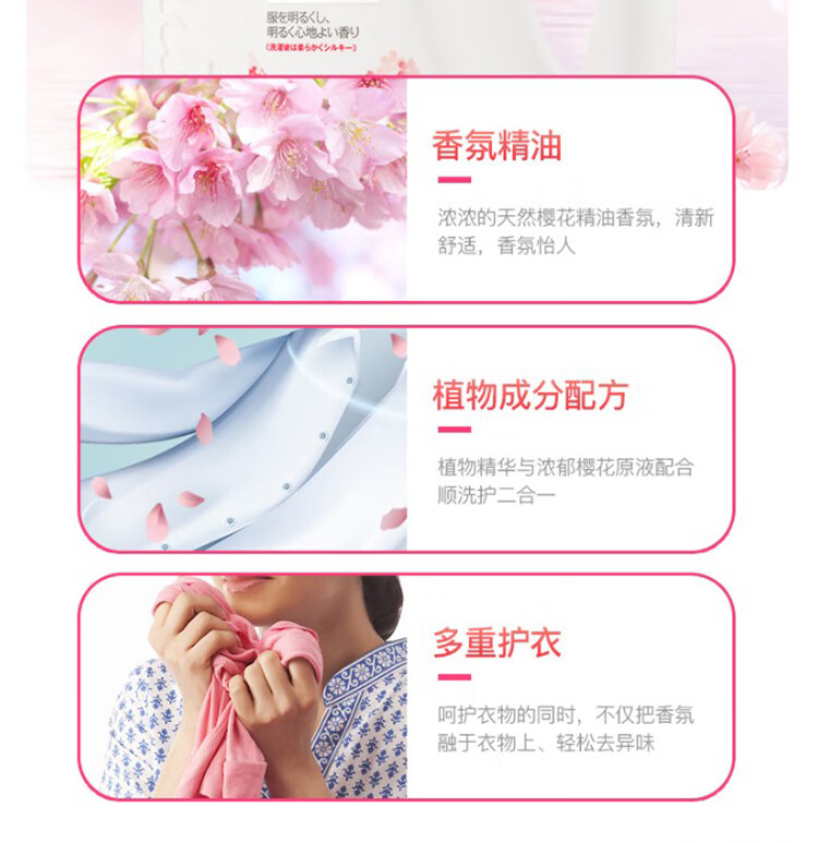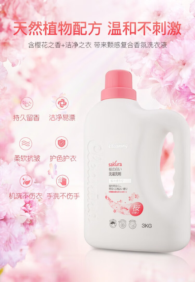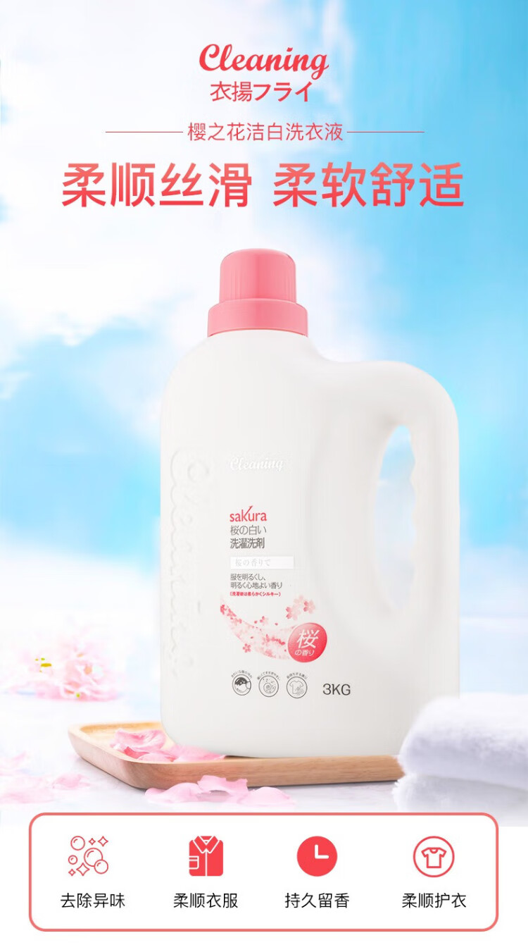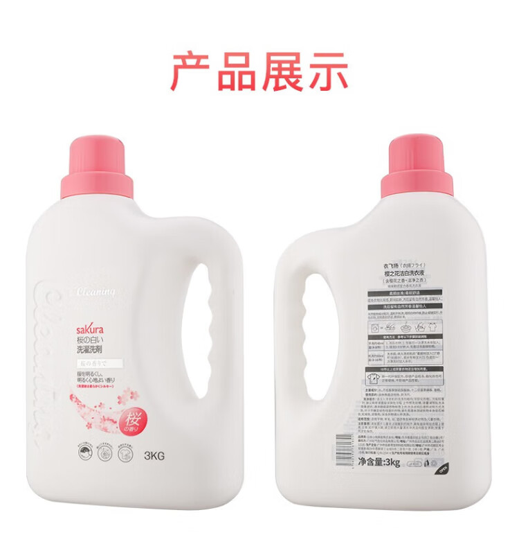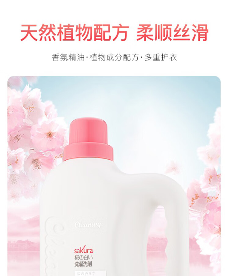 Yi Feiyang Japan's Kobayashi fragrance laundry detergent imported formula Sakura fragrance lasting fragrance supple and mite-removing plant silk wool Sakura laundry detergent 3kg + pure laundry detergent 3kg