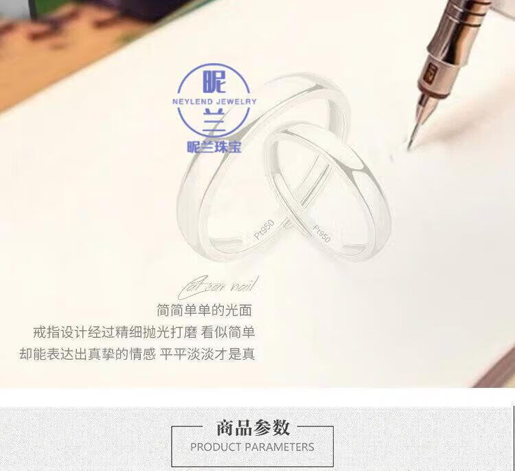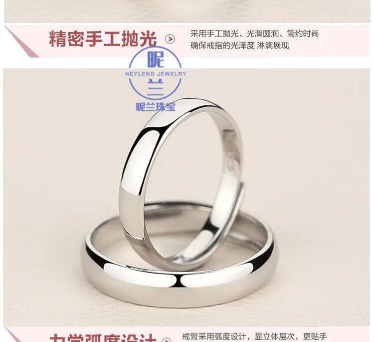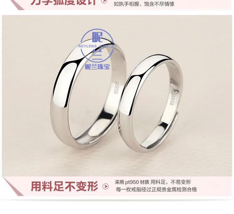 Nilan platinum ring men's Pt950 couple ring for women platinum simple style opening adjustable glossy Pt950 platinum glossy men's ring